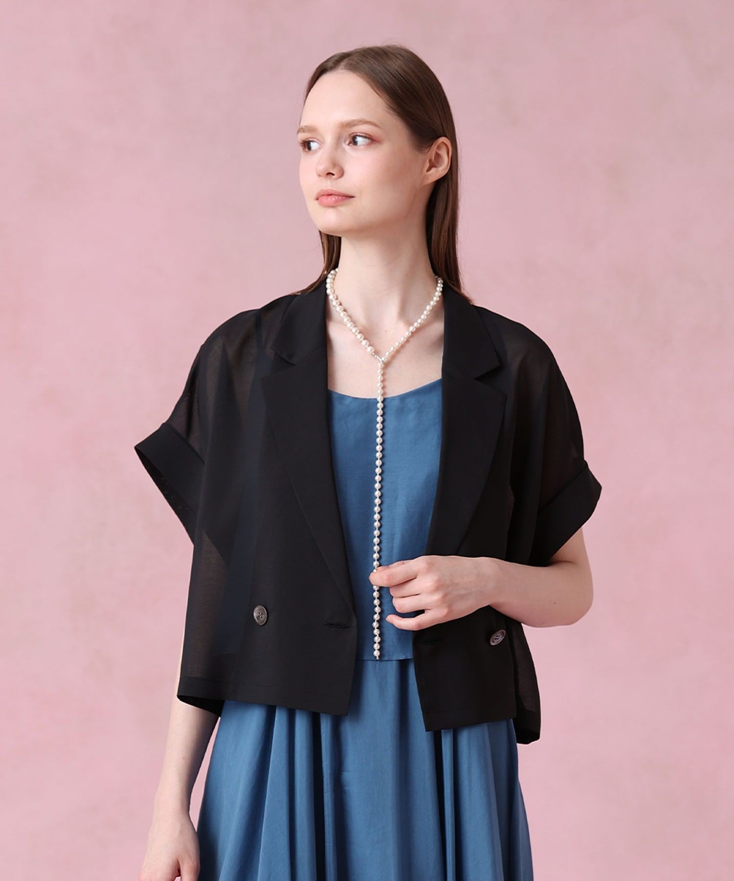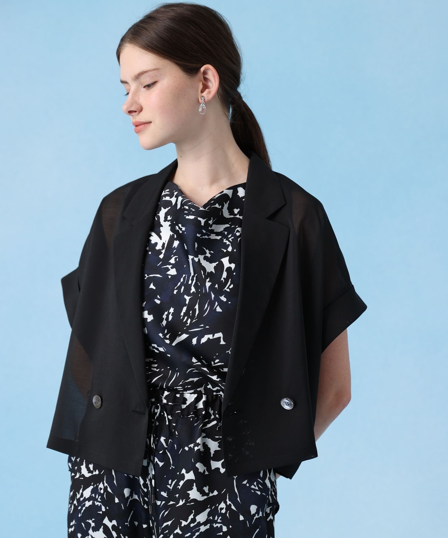 ANAYI シアーオーガンフレンチスリーブ ジャケット アナイ ジャケット・アウター テーラードジャケット・ブレザー ブラック【送料無料】