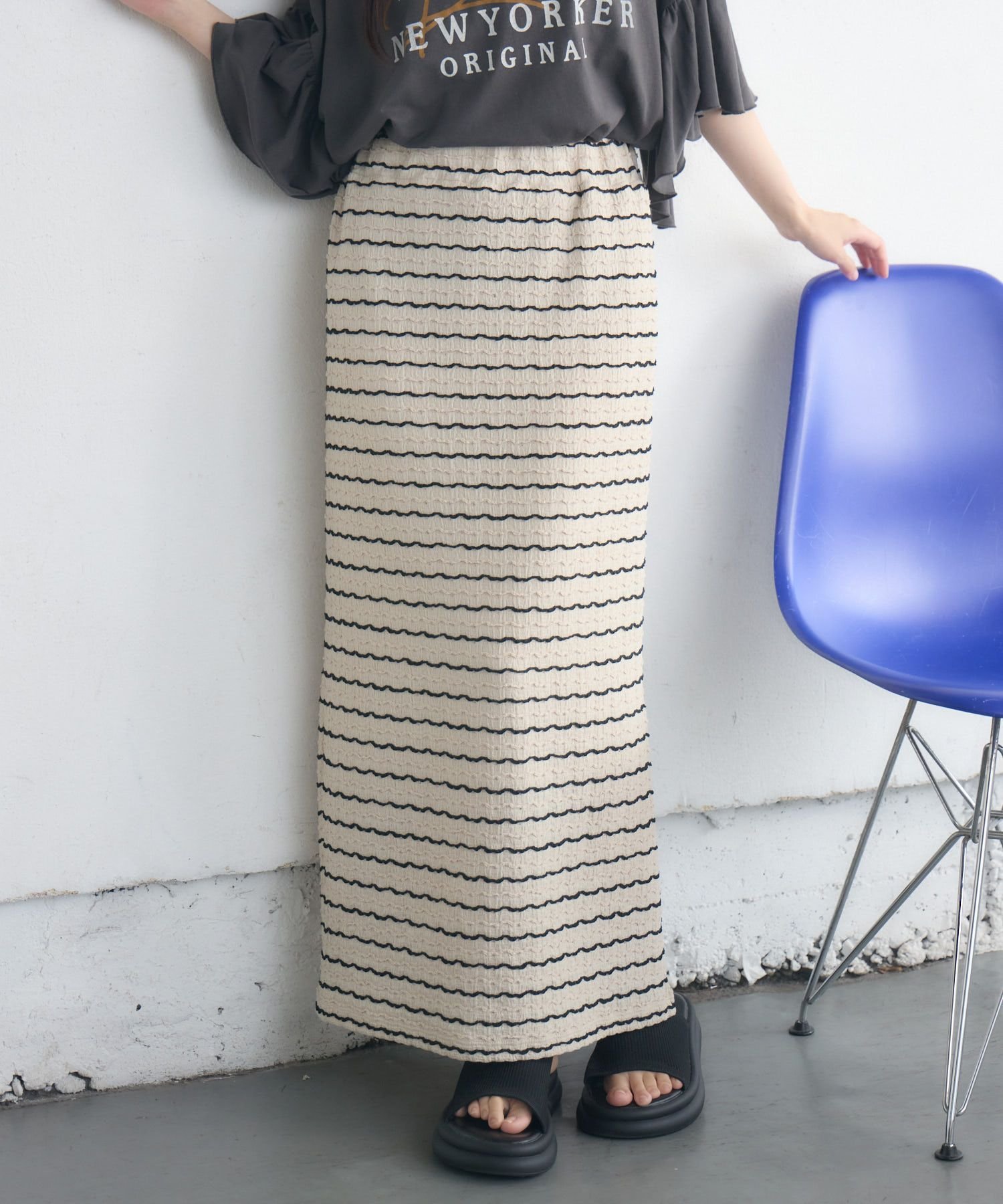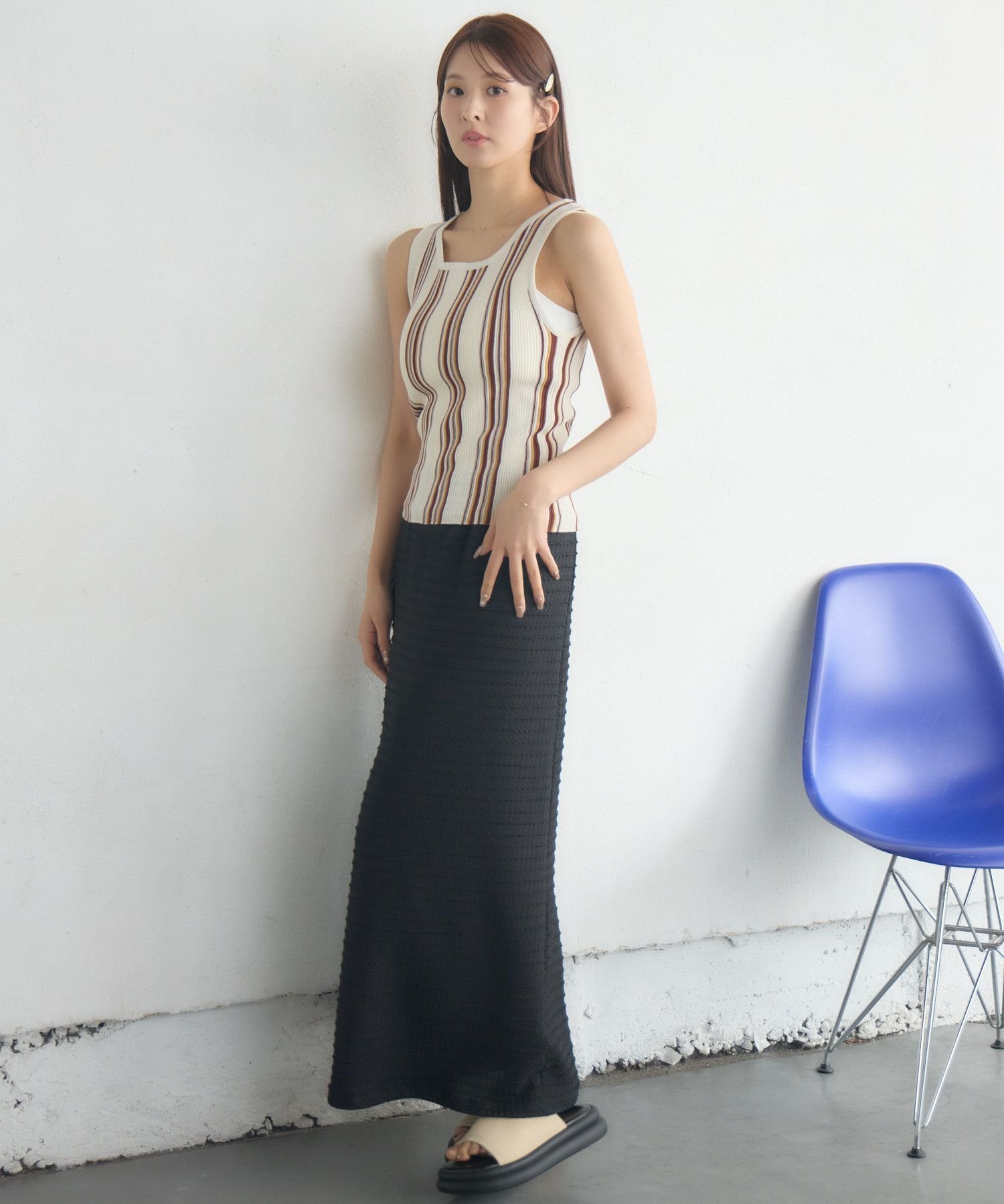 RETRO GIRL アソートボーダーナローSK レトロガール スカート ロング・マキシスカート ベージュ ブラウン ブラック