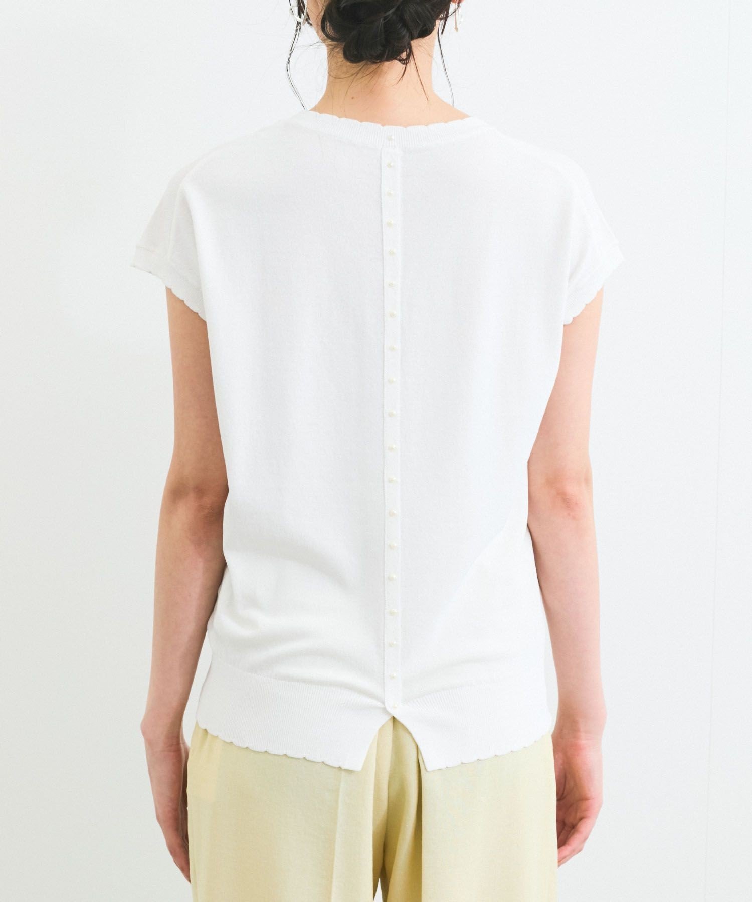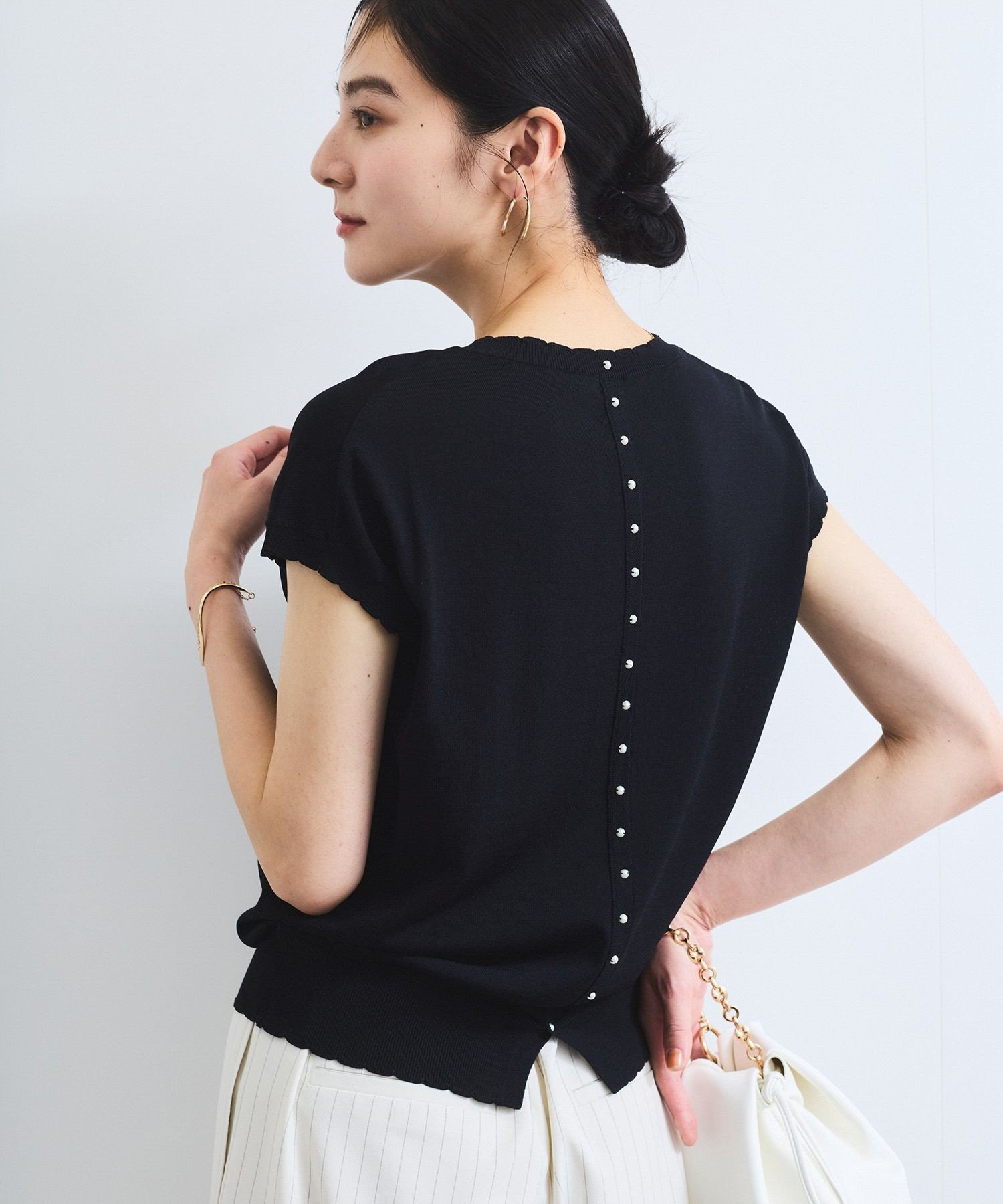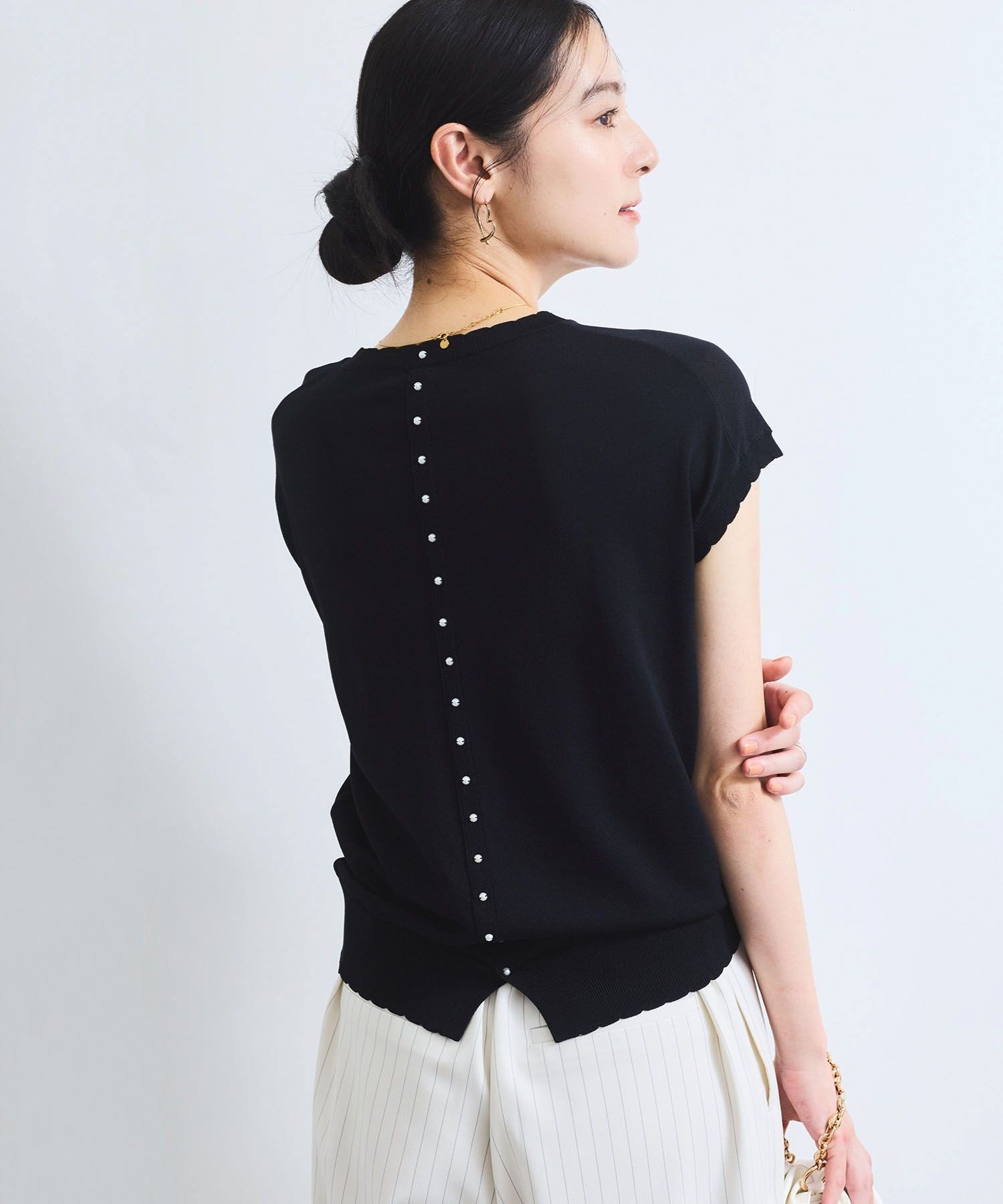 VIS 【WEB限定】パールフリルリブサマー半袖ニット ビス トップス ニット ブラック ホワイト【送料無料】