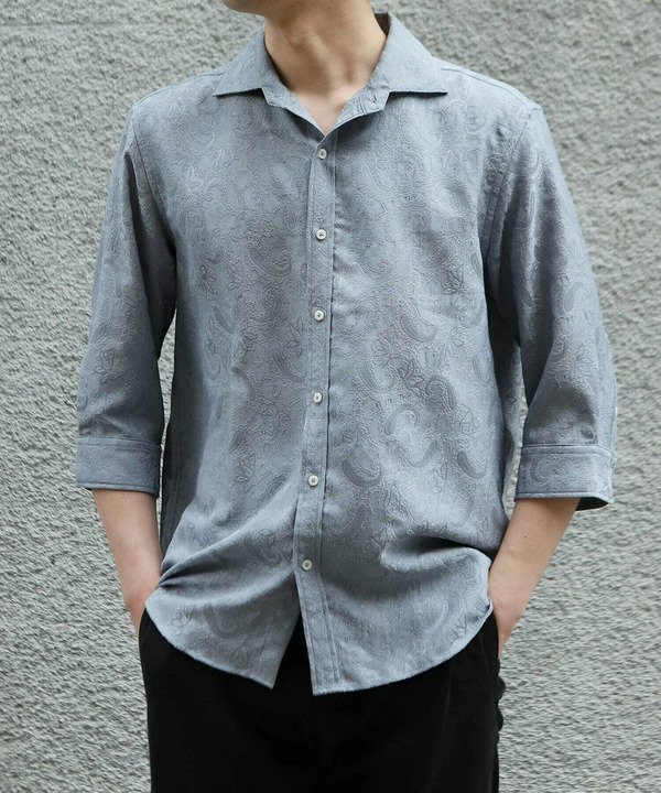 MEN'S BIGI ペイズリージャガード七分袖シャツ メンズ ビギ トップス シャツ・ブラウス ネイビー ワインレッド ブルー【送料無料】