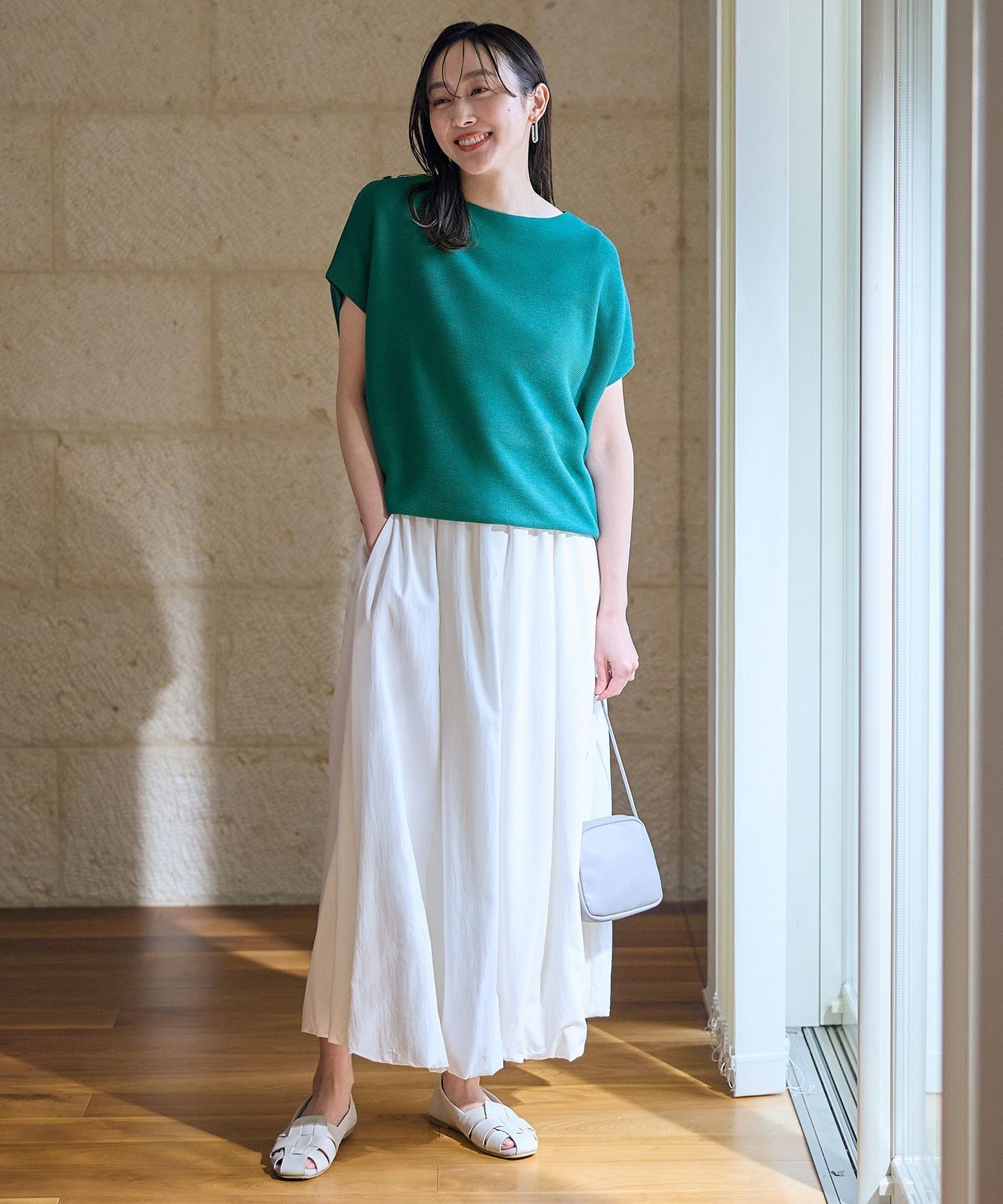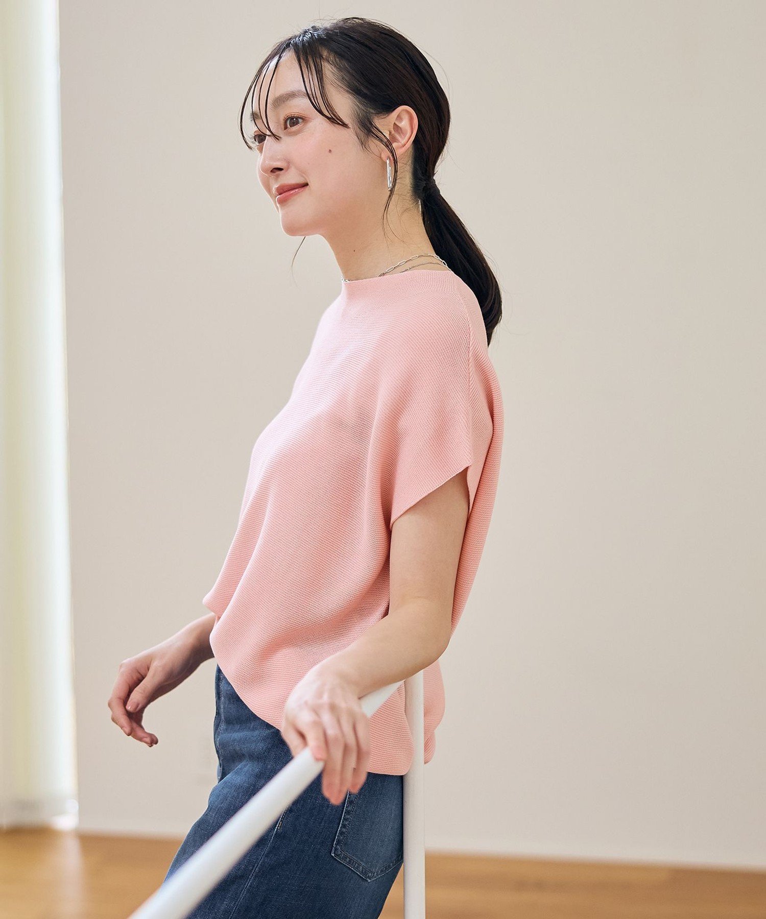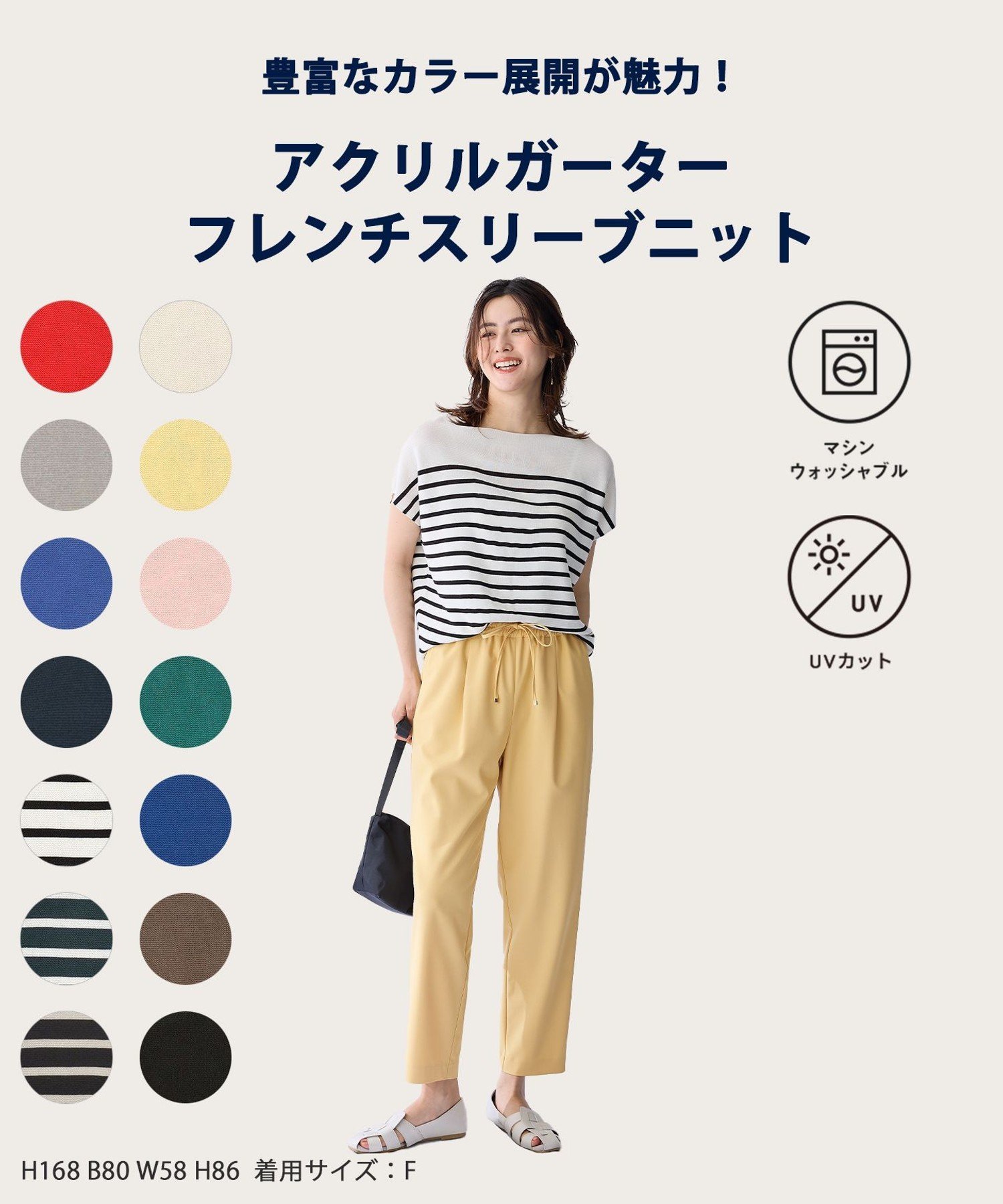 any FAM 【新色追加/14色展開/洗濯機可/UVカット】アクリルガーターフレンチスリーブニット エニィファム トップス ニット ブラック ピンク イエロー グリーン ベージュ ホワイト【送料無料】