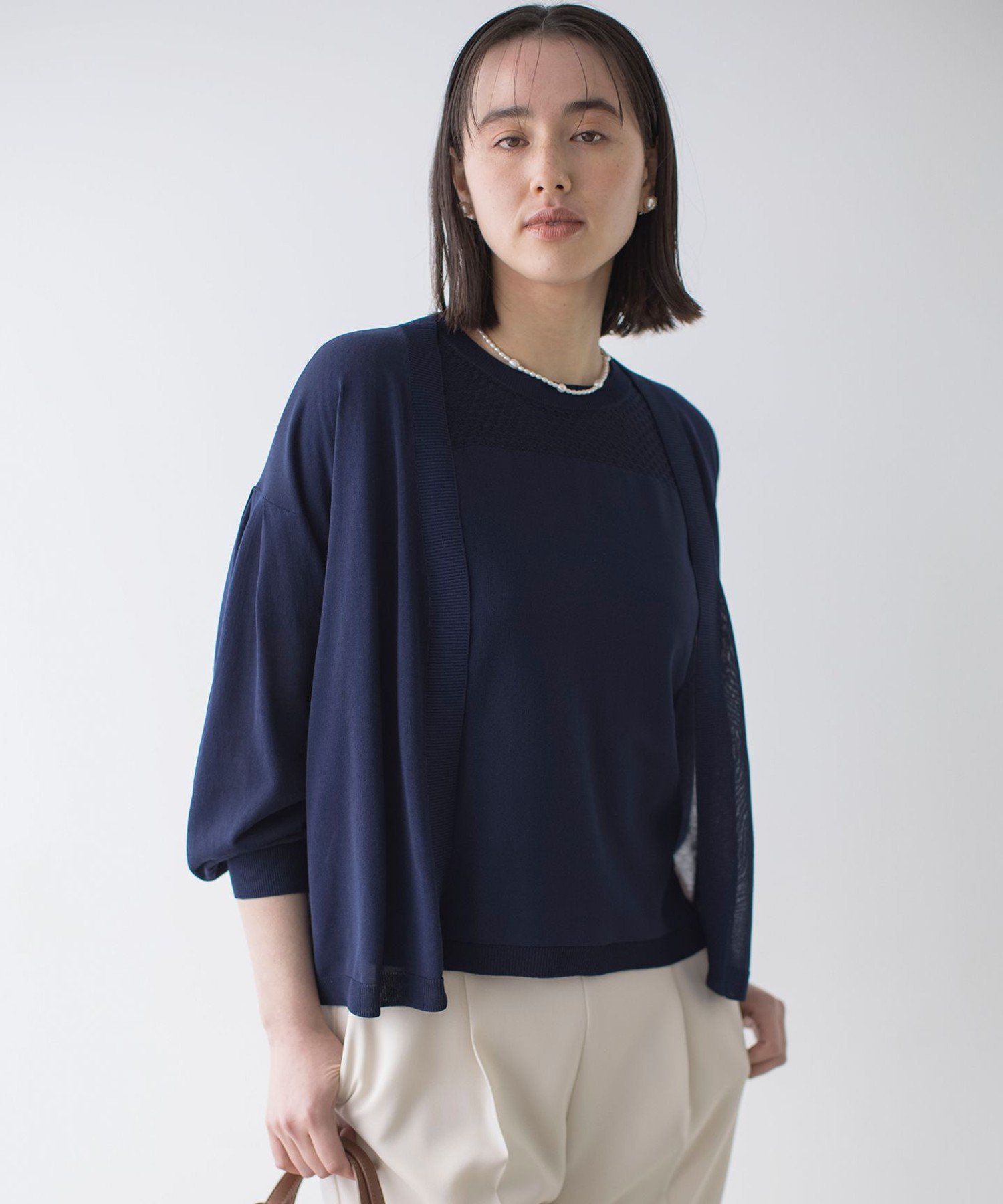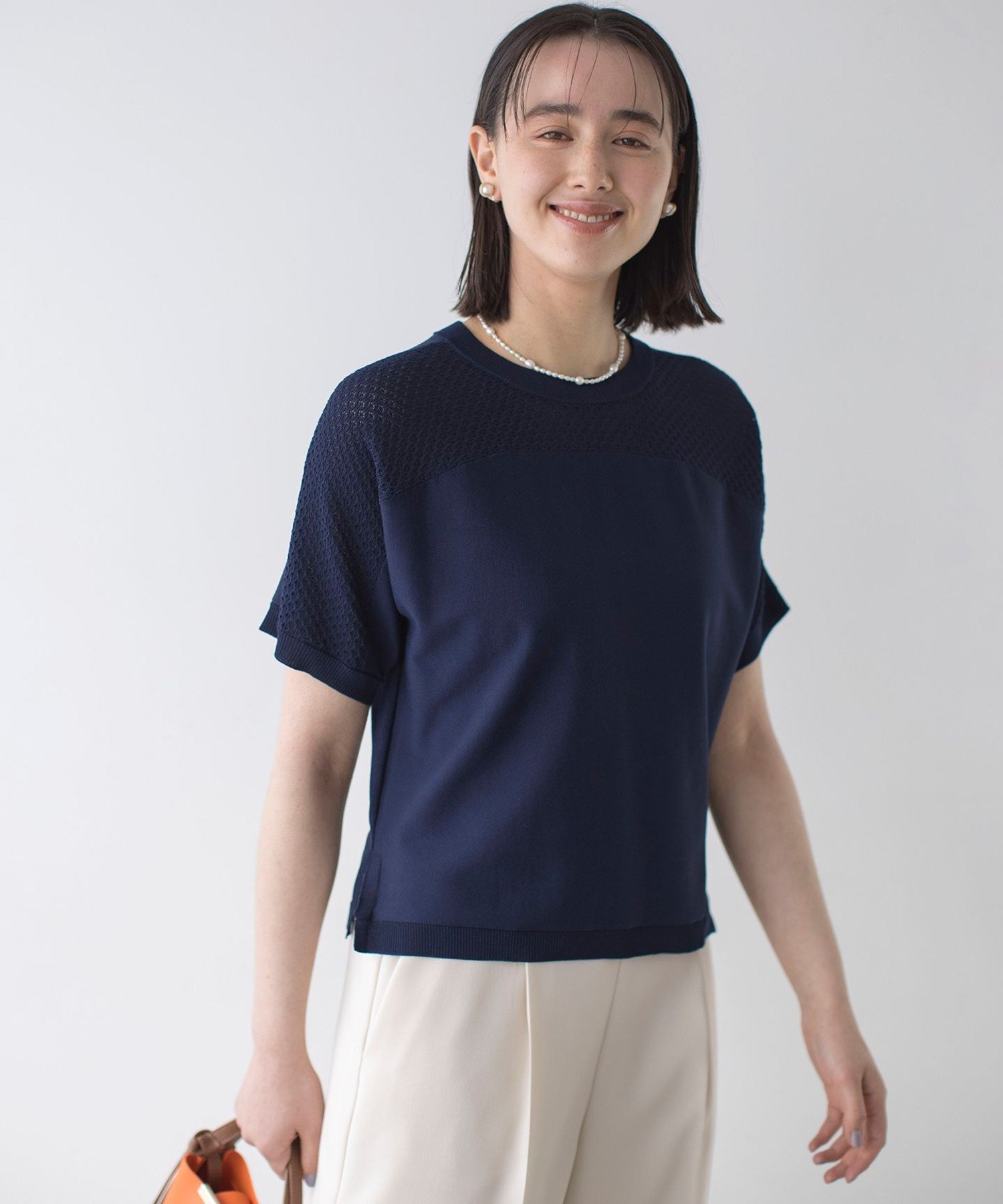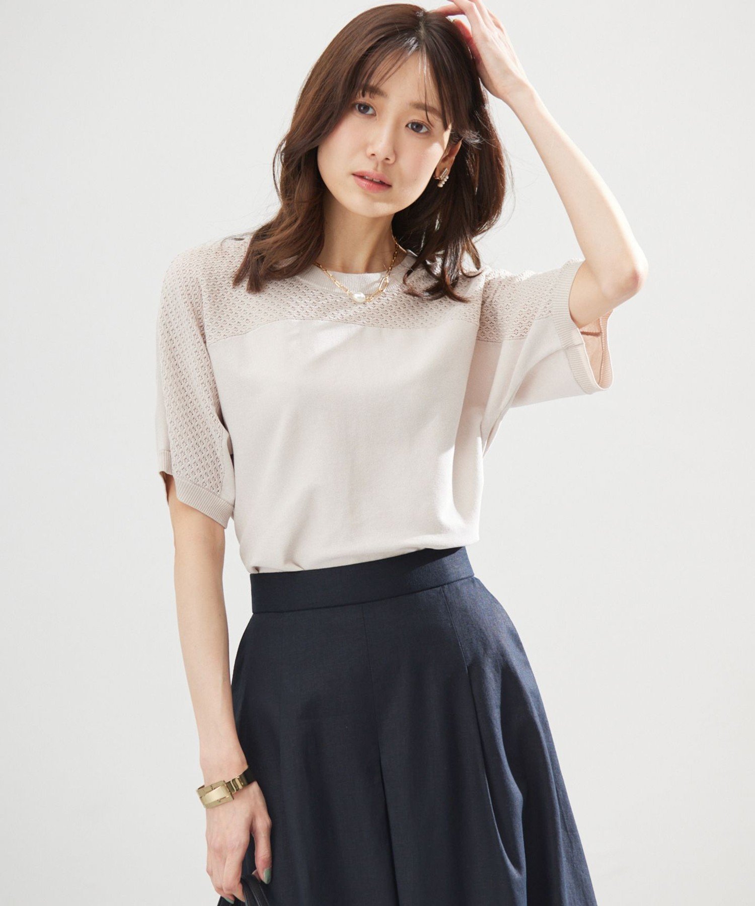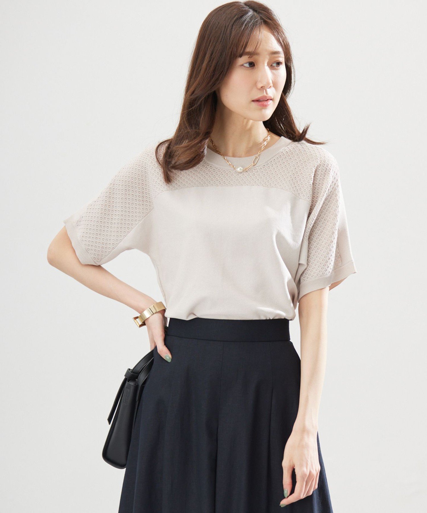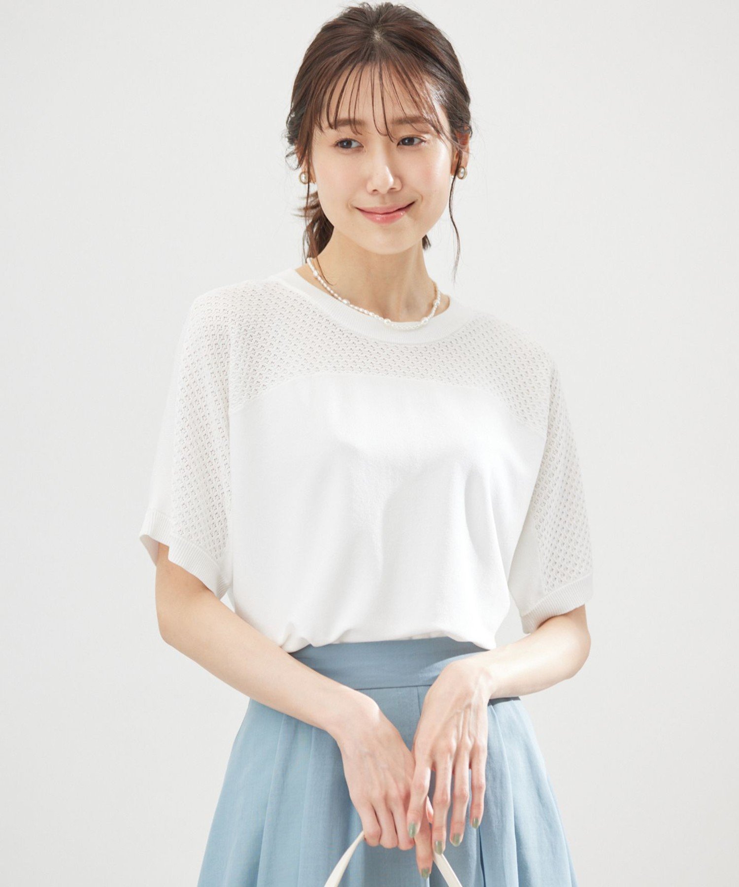 組曲 【WEB限定】メッシュ切り替えドルマン ニット クミキョク トップス ニット ホワイト ベージュ ネイビー【送料無料】