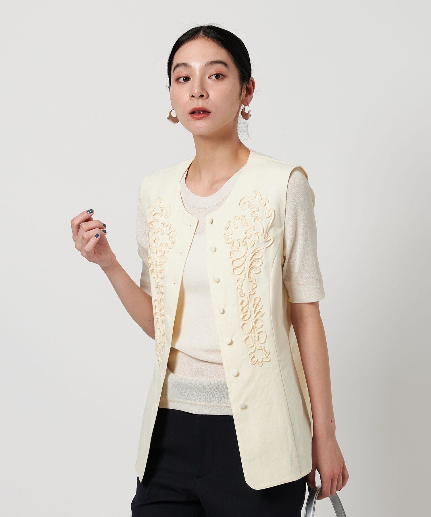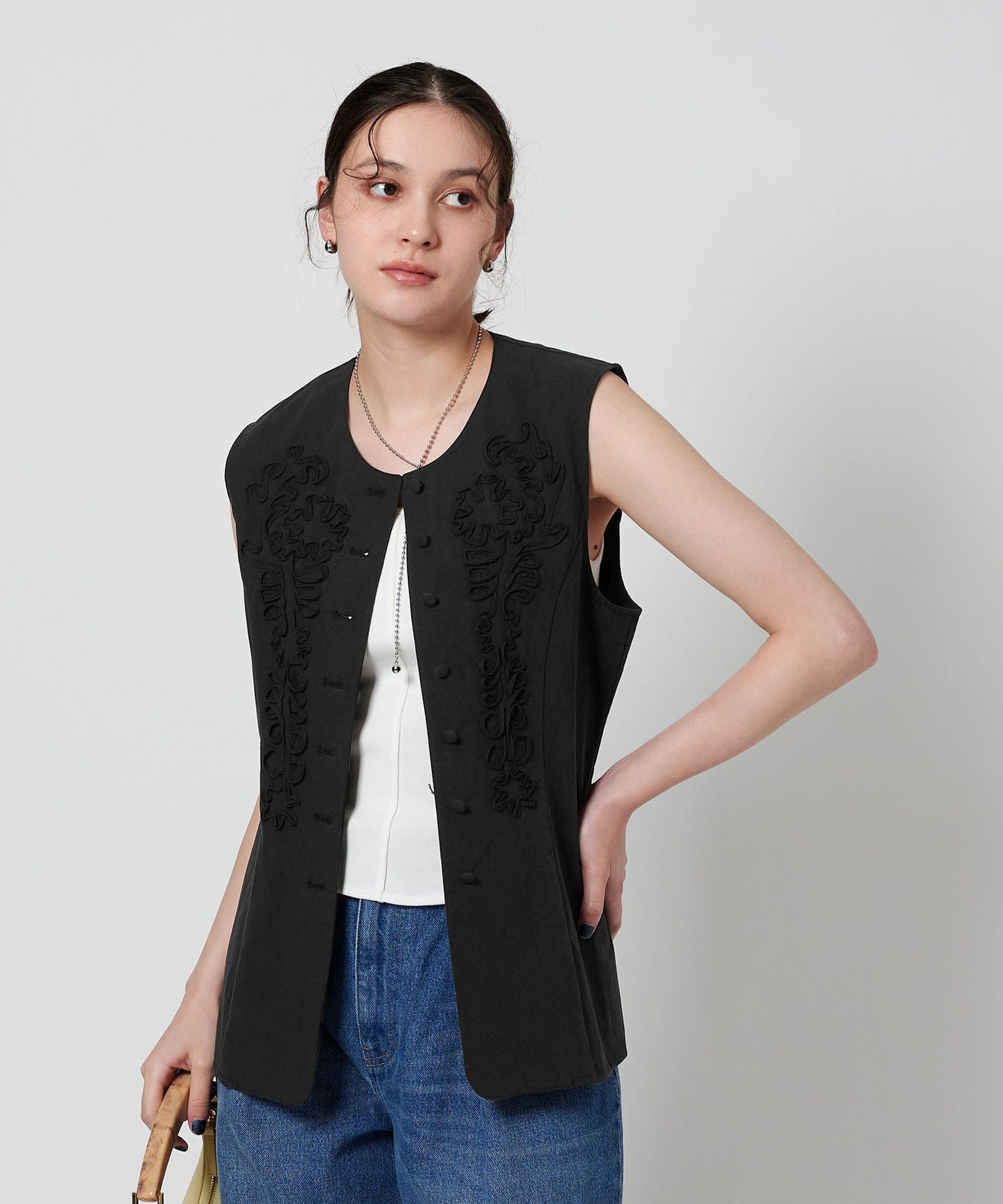 BEAUTY&YOUTH UNITED ARROWS コットンテープ エンブロイダリー ベスト ビューティー&ユース ユナイテッドアローズ トップス ベスト・ジレ レッド ブラック ホワイト【送料無料】