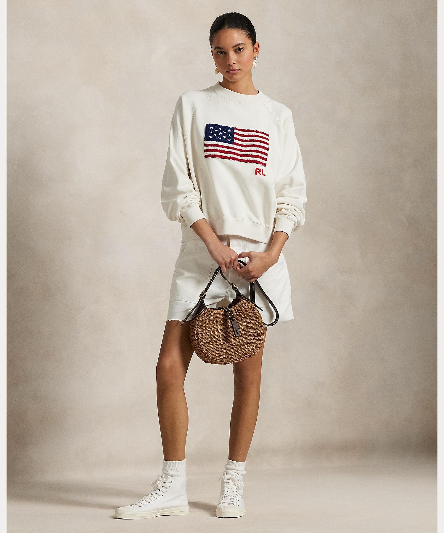 POLO RALPH LAUREN ロゴ フラッグ フレンチ テリー クルーネック ラルフローレン トップス スウェット・トレーナー ホワイト【送料無料】