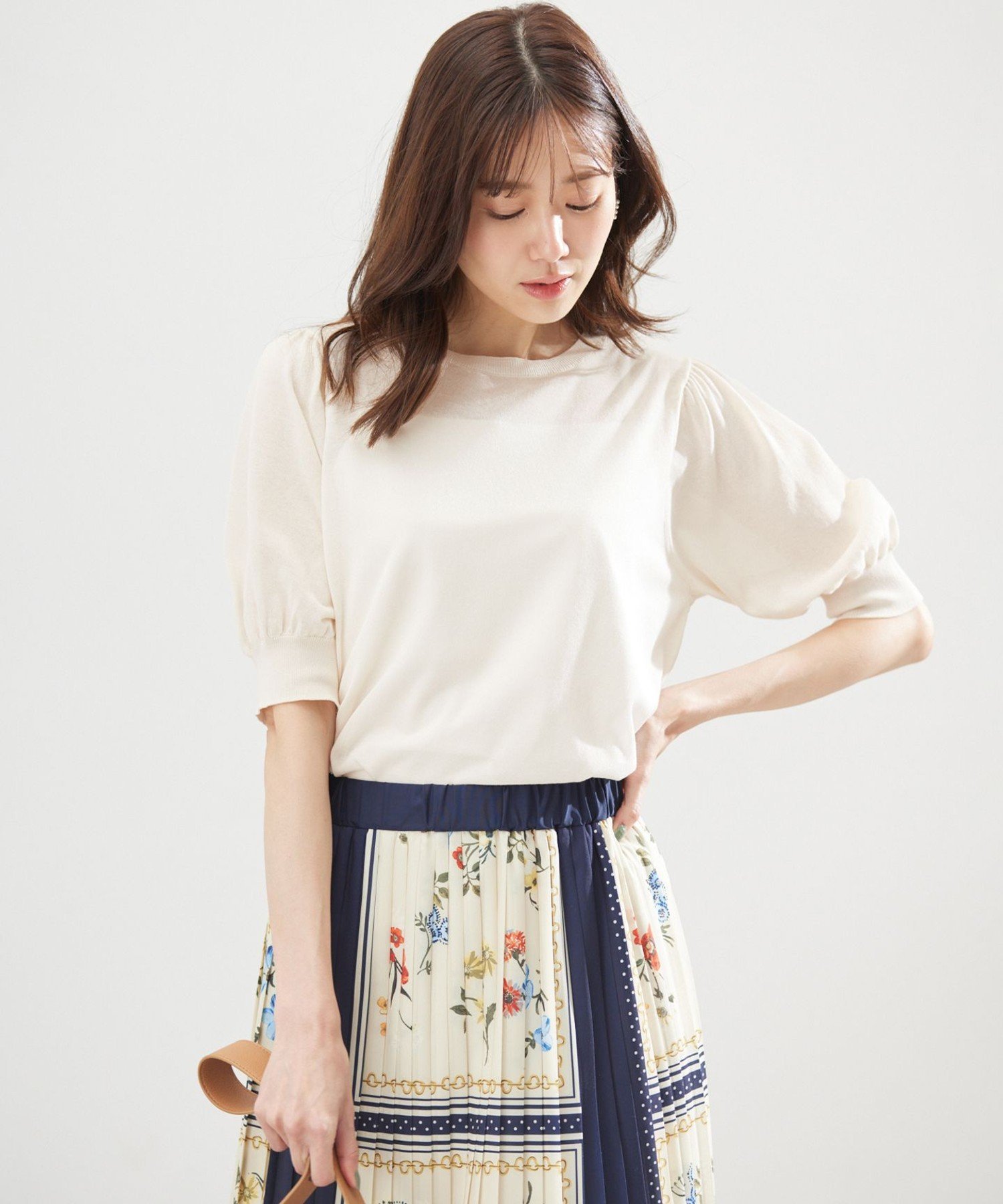 組曲 シアーパフ袖 ニット クミキョク トップス ニット ブラック ホワイト ベージュ【送料無料】