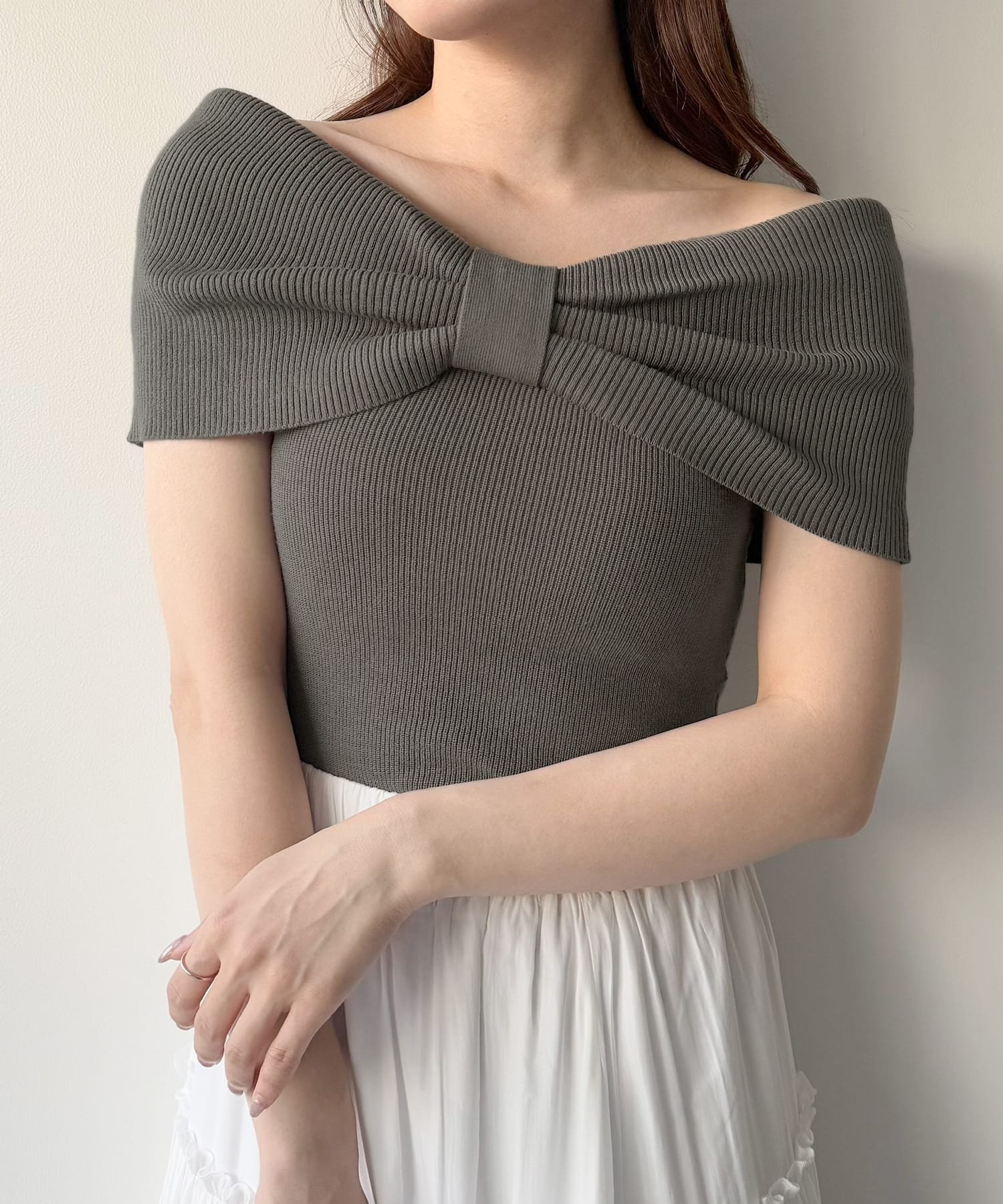 【SALE/28%OFF】JUNOAH mipiarl リボンオフショルニット ジュノア トップス ニット グレー ブラック ホワイト【送料無料】