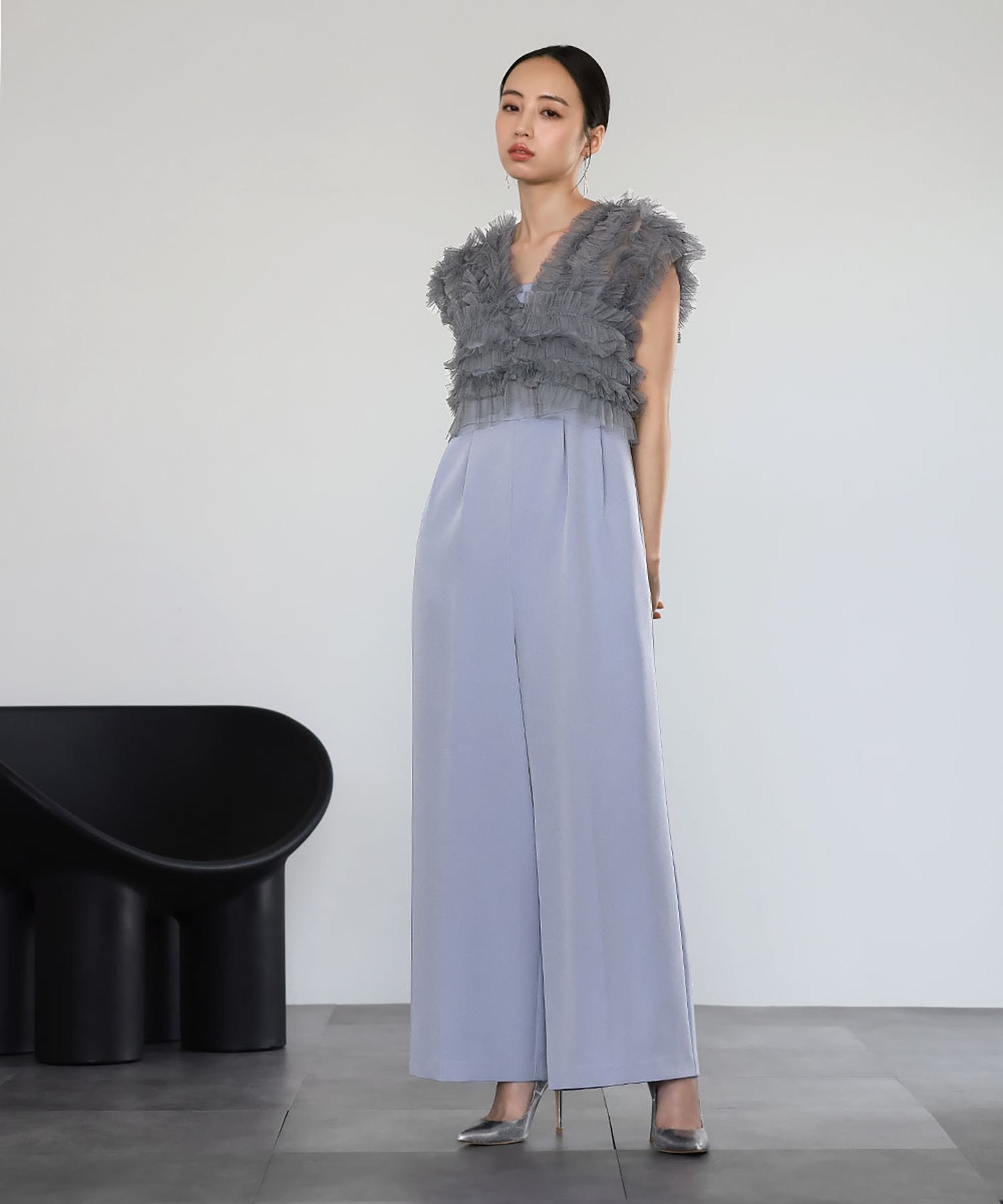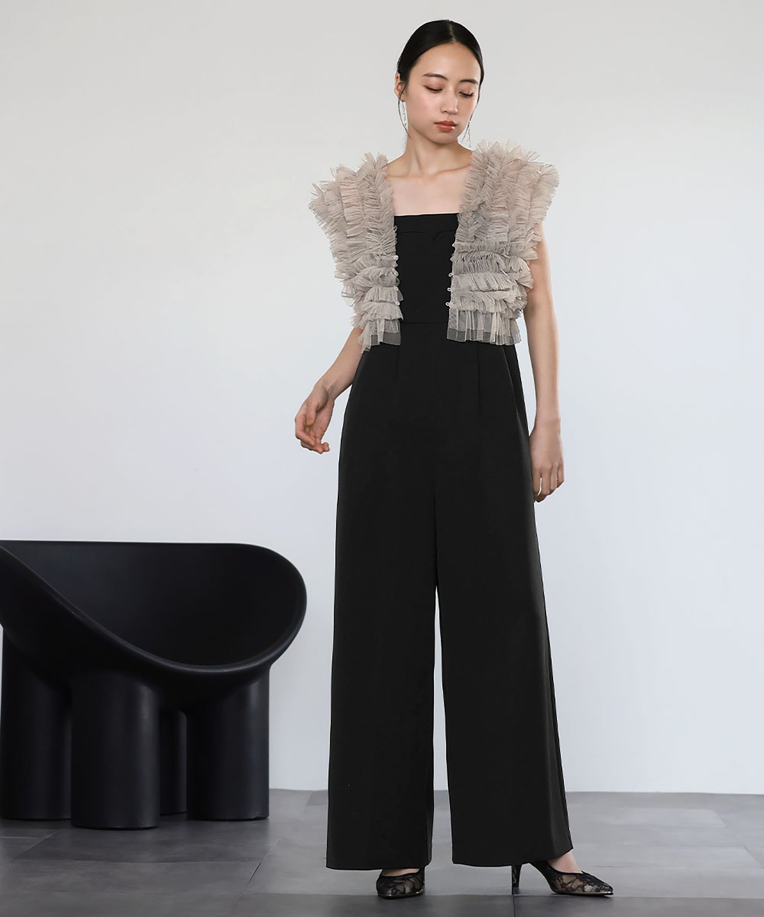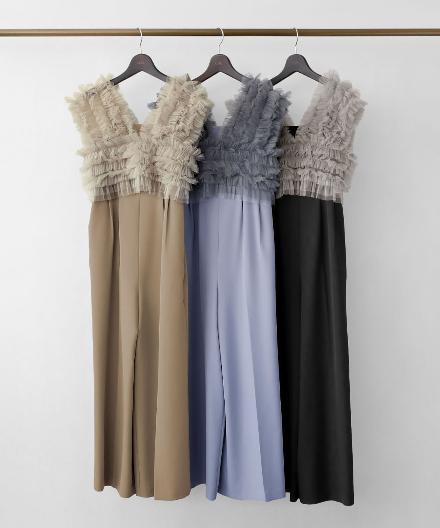 GIRL チュールトップス オールインワン セット 結婚式 パンツドレス パーティードレス ガール ワンピース・ドレス ドレス ブラック ブルー【送料無料】