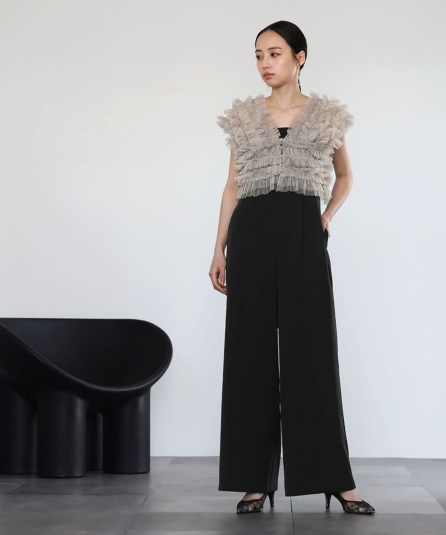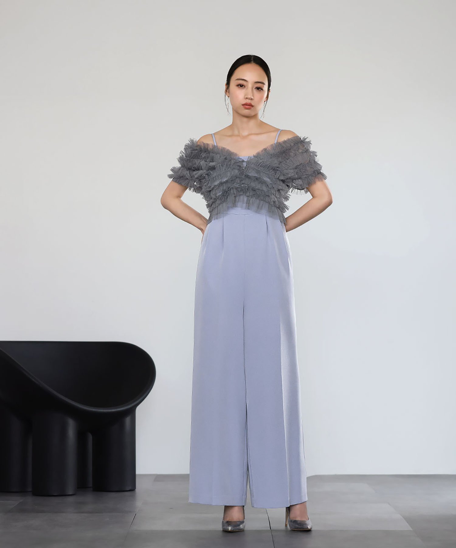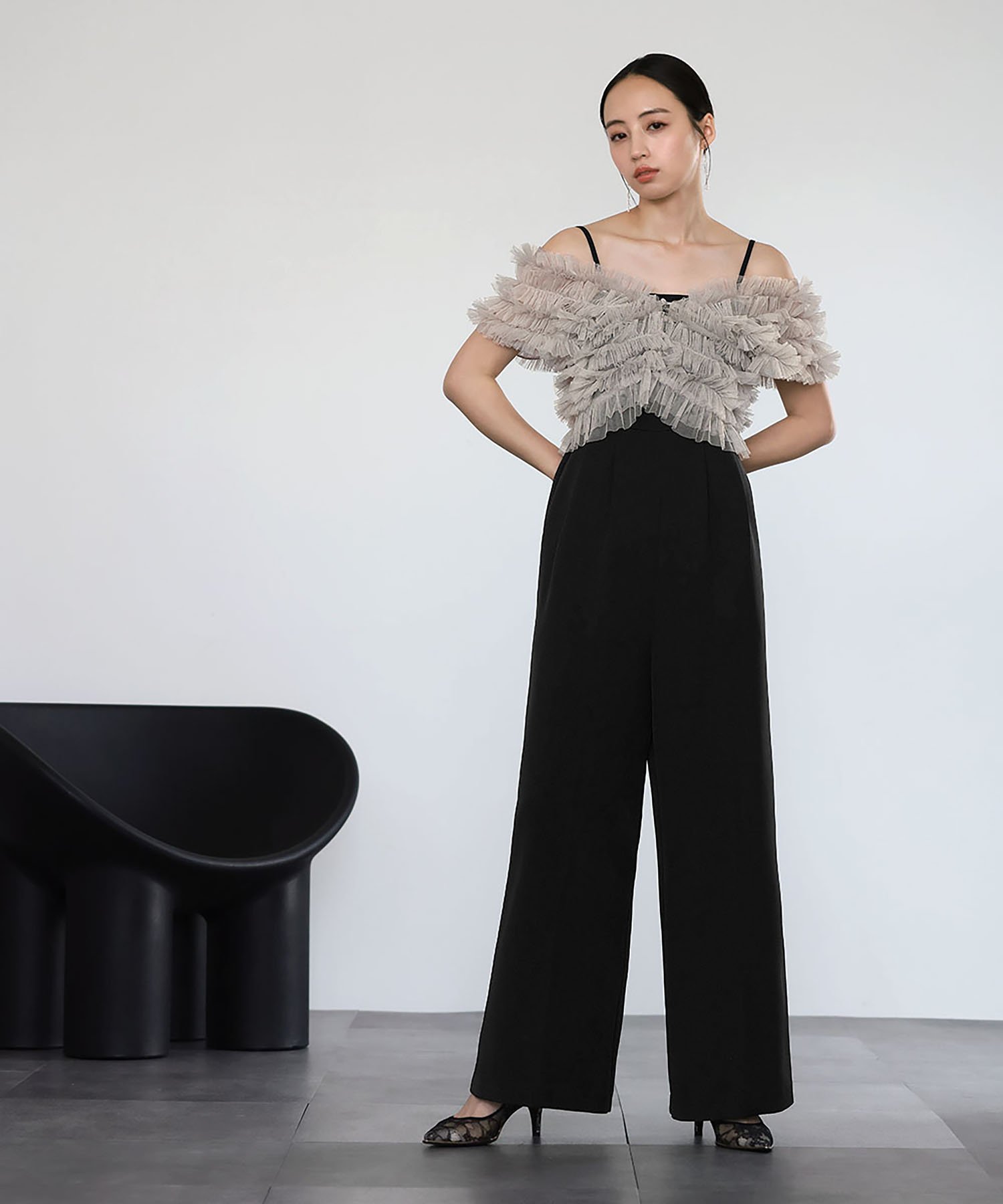 GIRL チュールトップス オールインワン セット 結婚式 パンツドレス パーティードレス ガール ワンピース・ドレス ドレス ブラック ブルー【送料無料】