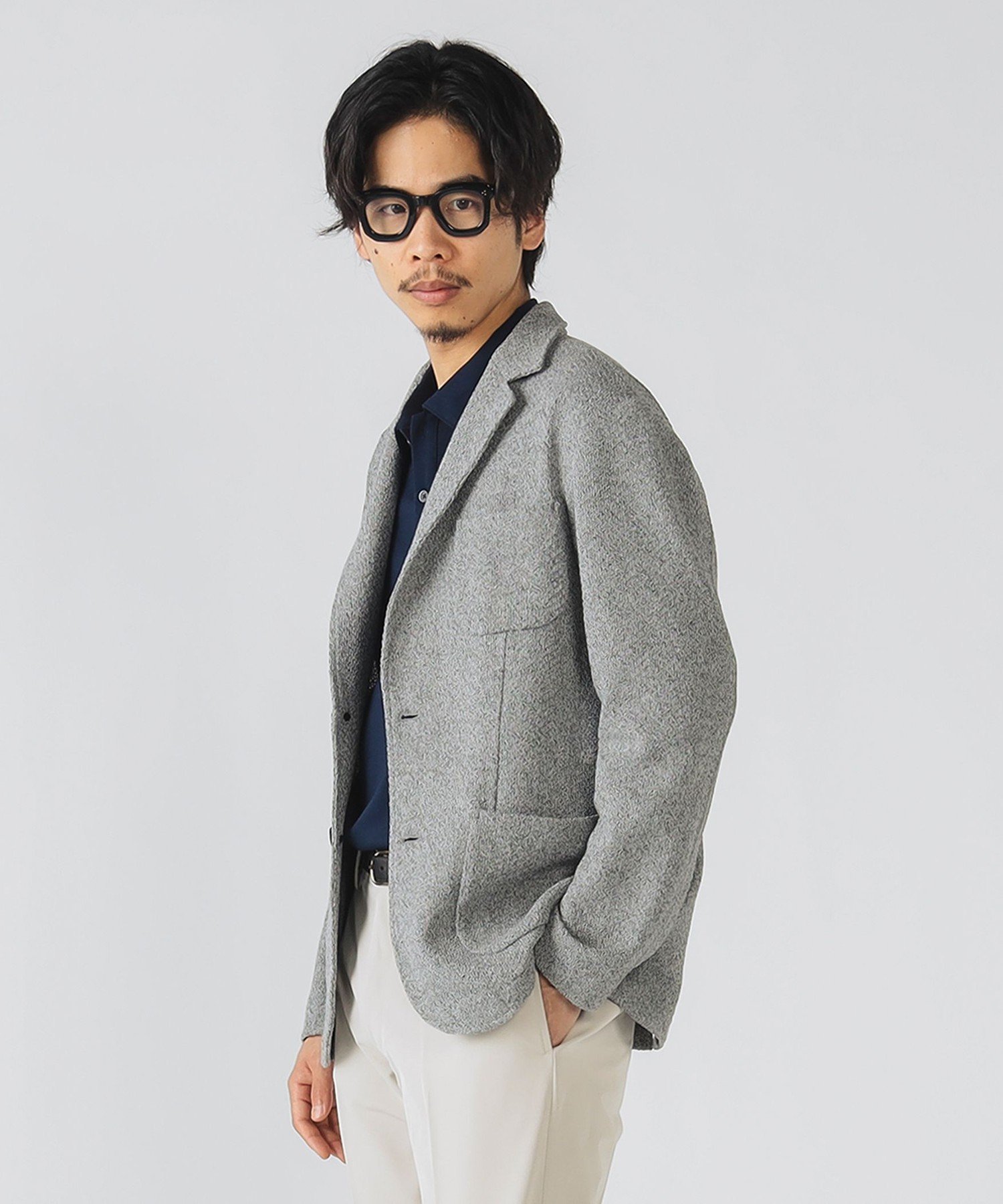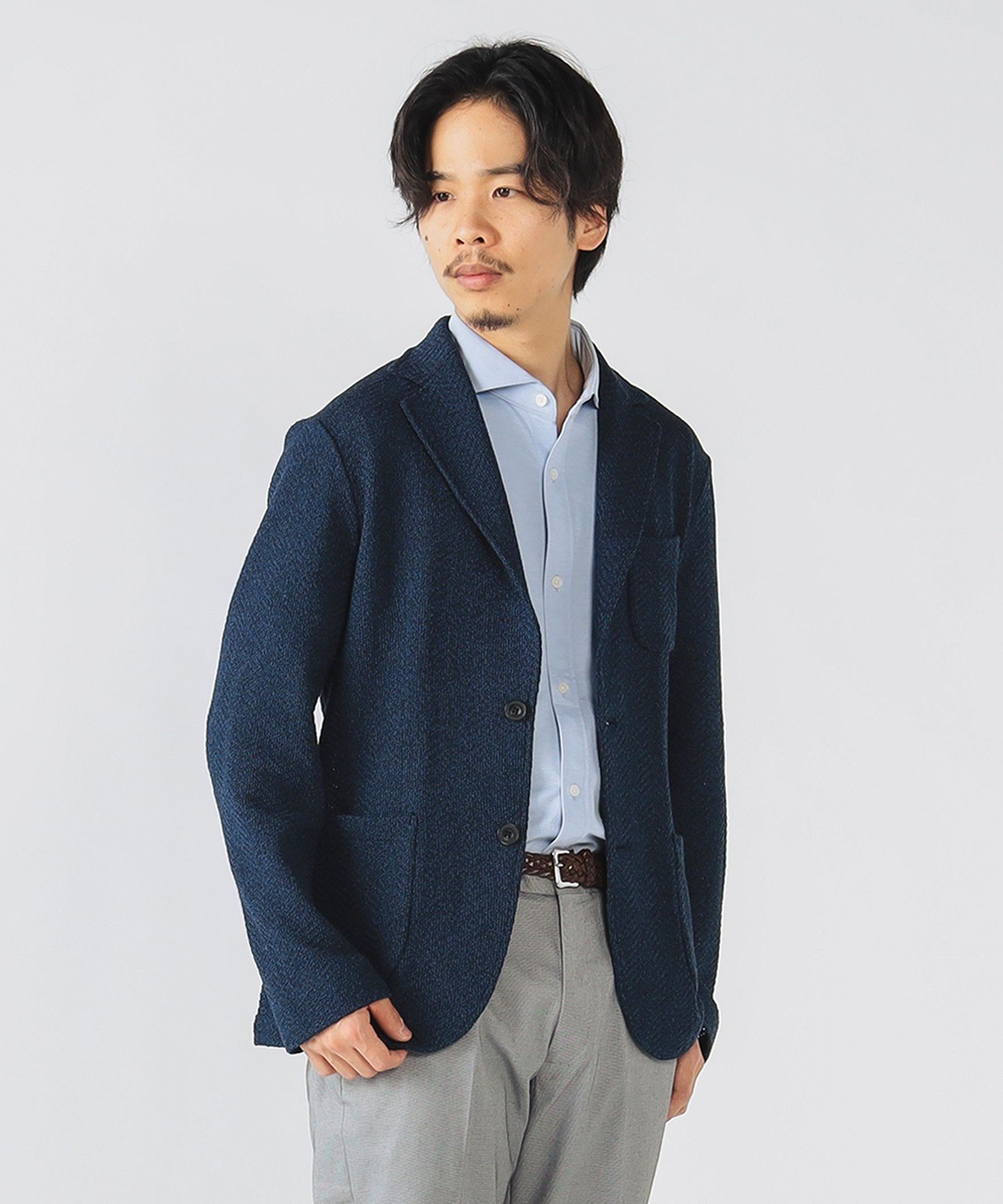 BEAMS HEART MEN ヘリンボーンニットジャケット(S~XL) ビームス ハート トップス ニット ネイビー グレー【送料無料】