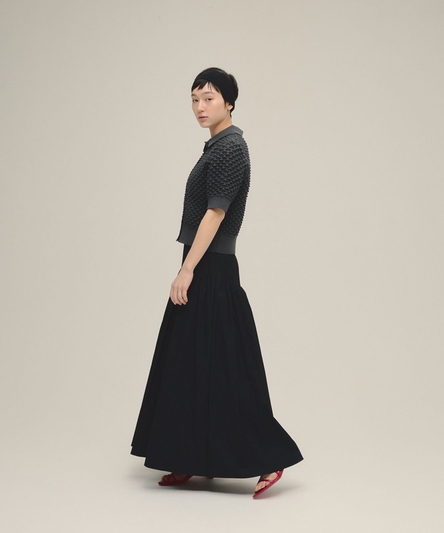 eL Volume Flare Skirt ジーナシス スカート ロング・マキシスカート レッド ブラック ホワイト【送料無料】
