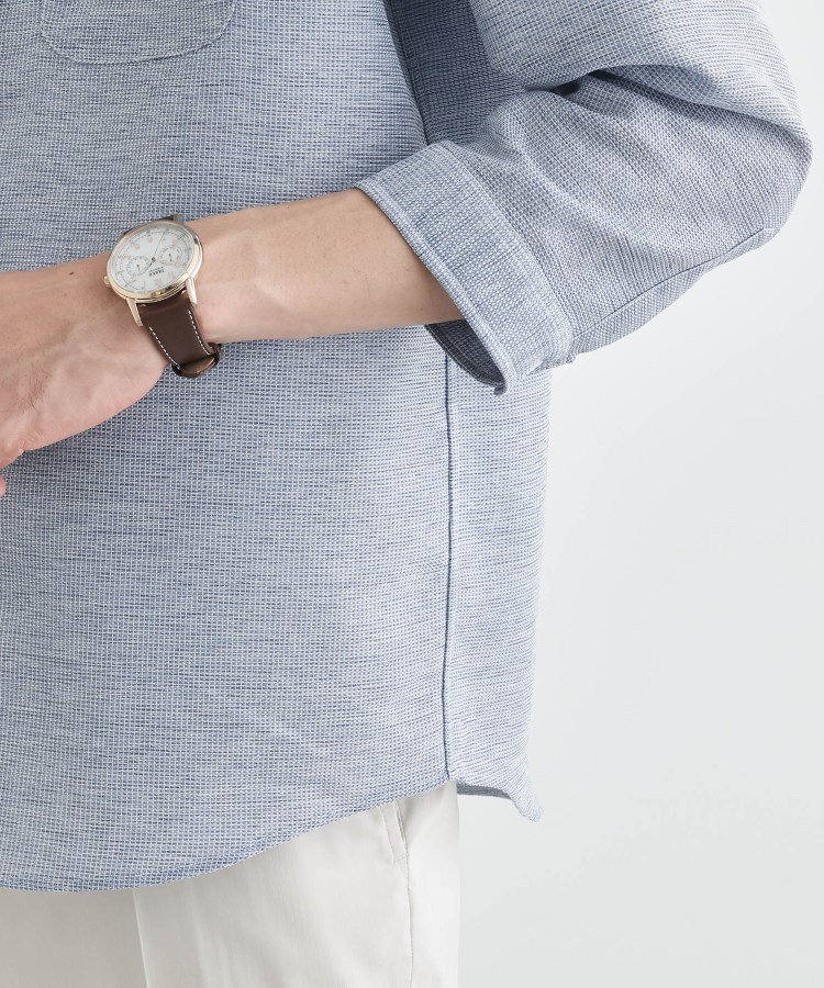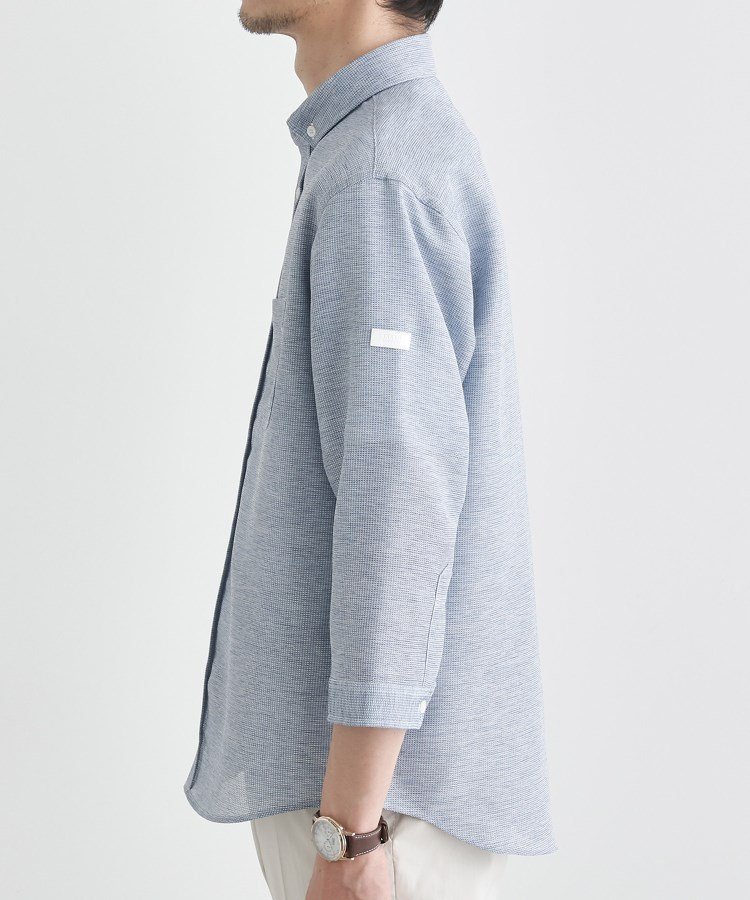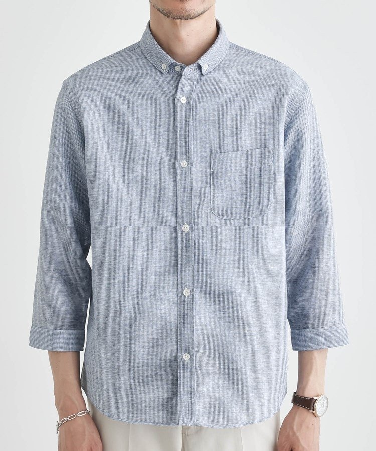 TAKEO KIKUCHI 【Sサイズ~】カラミ織り 7分袖シャツ タケオキクチ トップス シャツ・ブラウス ネイビー ブルー グレー【送料無料】