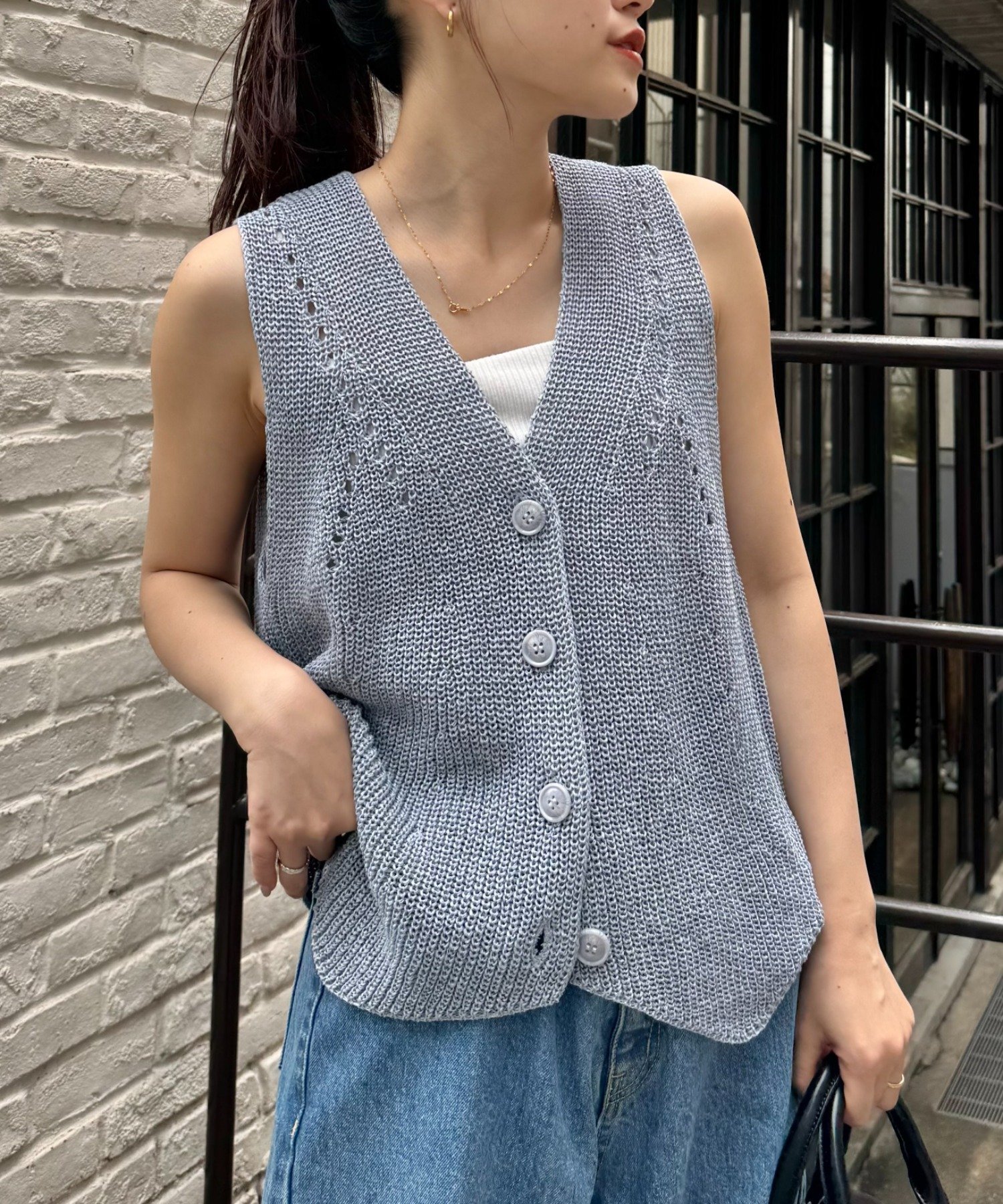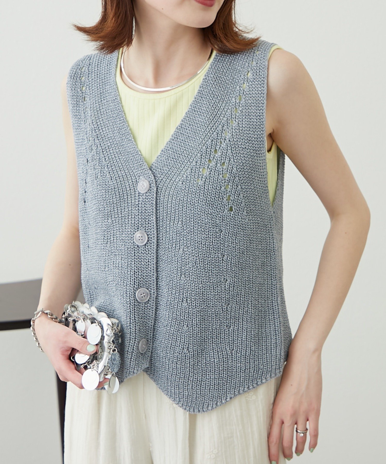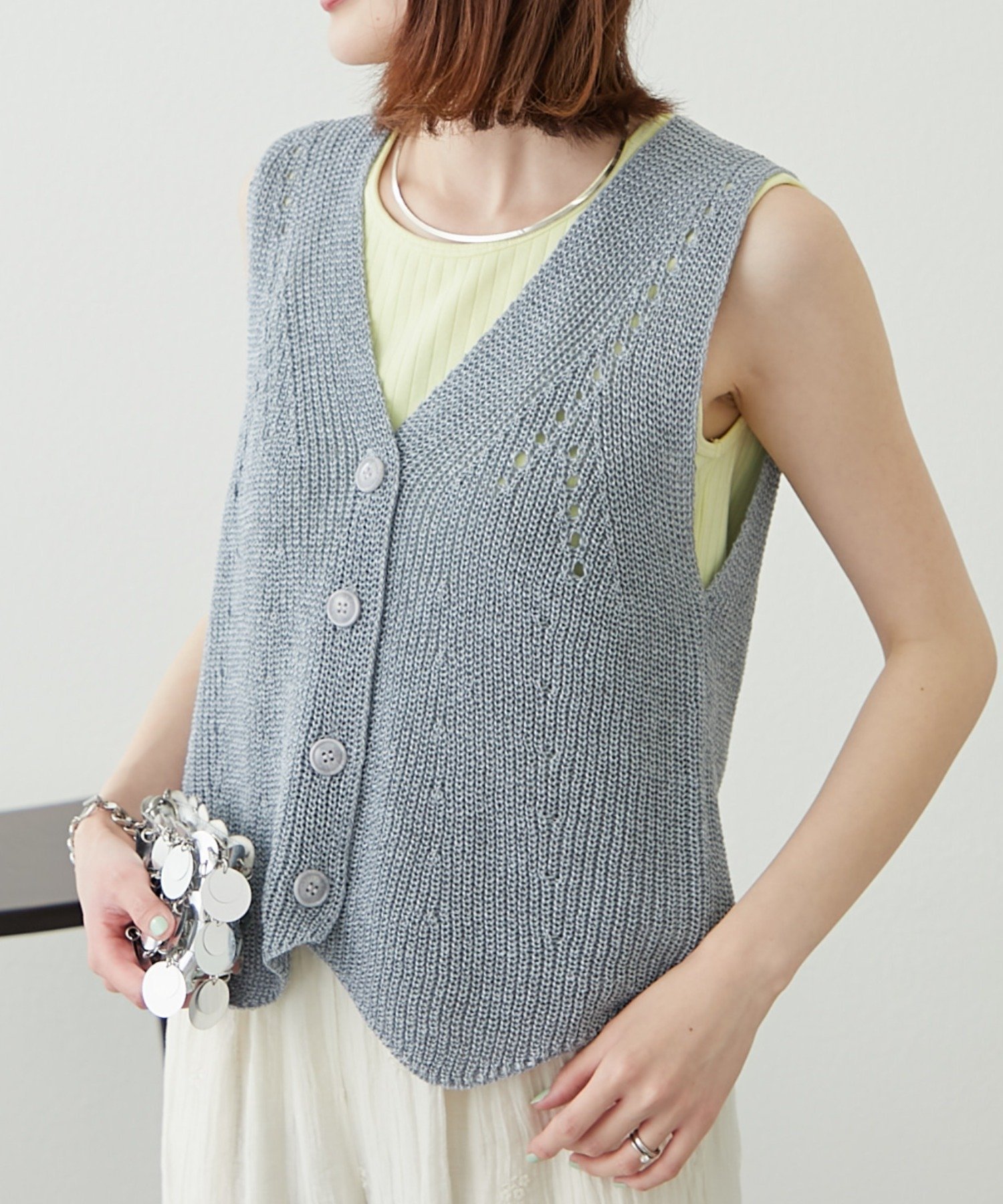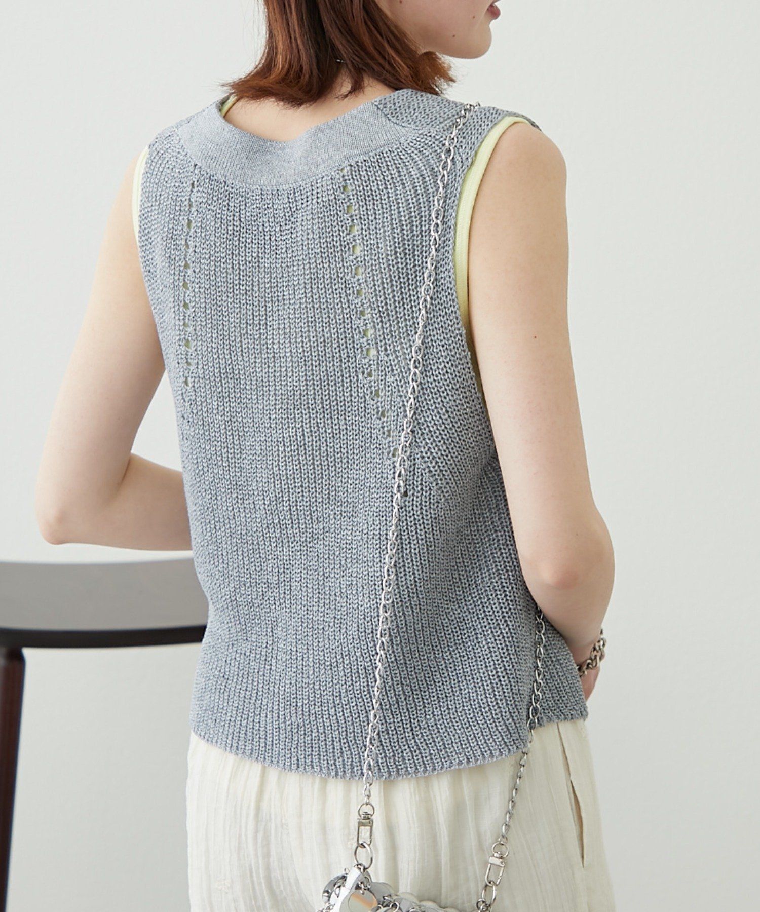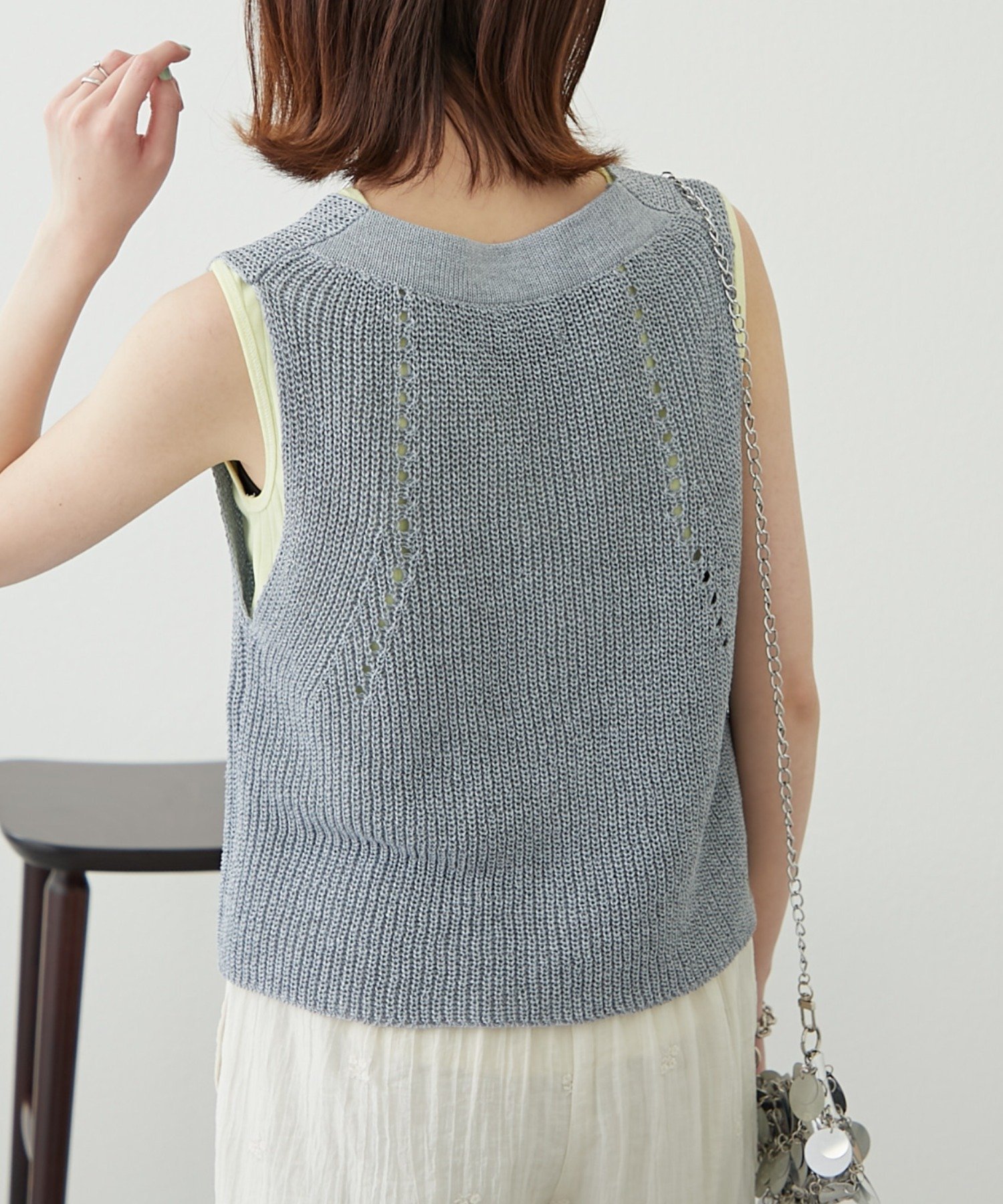 CIAOPANIC TYPY 【willow】和紙ライクニットベスト チャオパニックティピー トップス ニット ブラウン グレー【送料無料】
