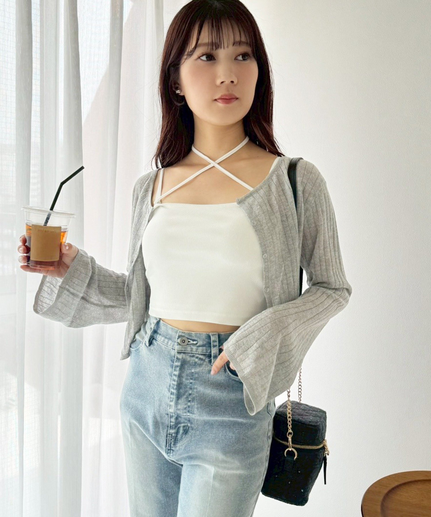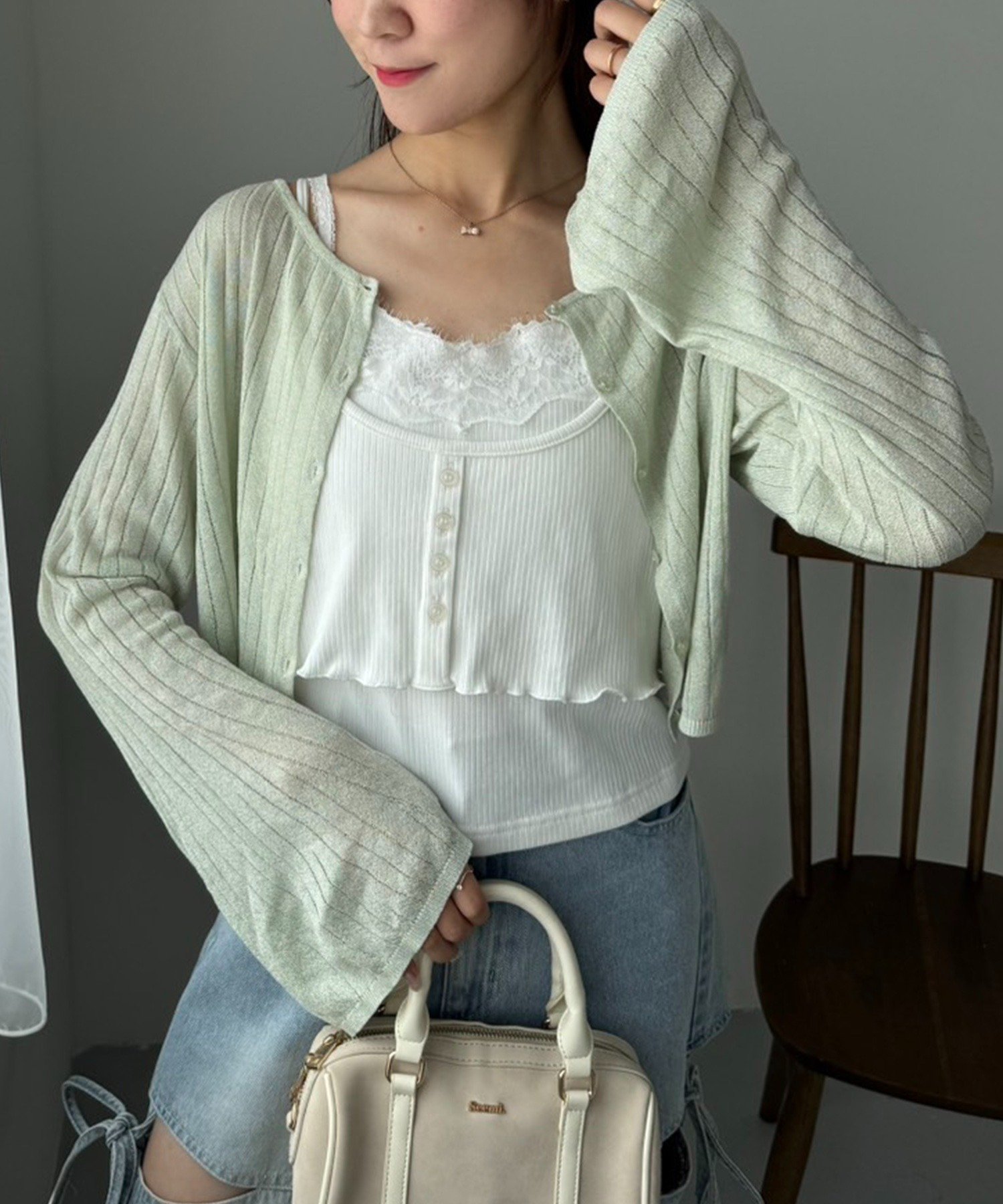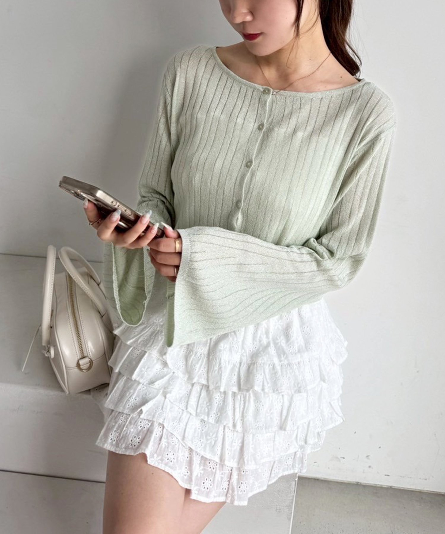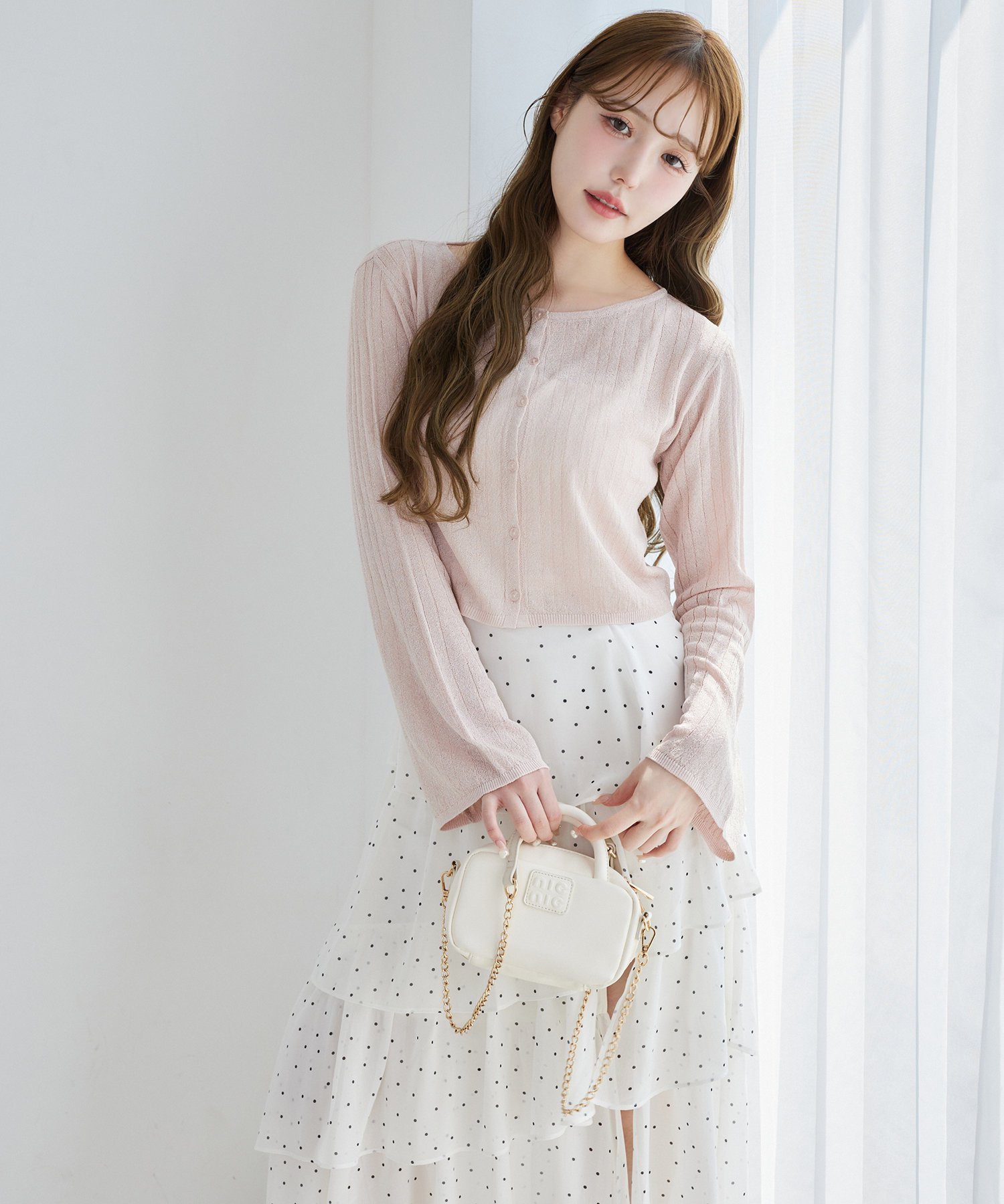 【SALE/10%OFF】one after another NICE CLAUP ラメ混シアーカーデ ワンアフターアナザー ナイスクラップ トップス ニット グレー ホワイト ピンク グリーン