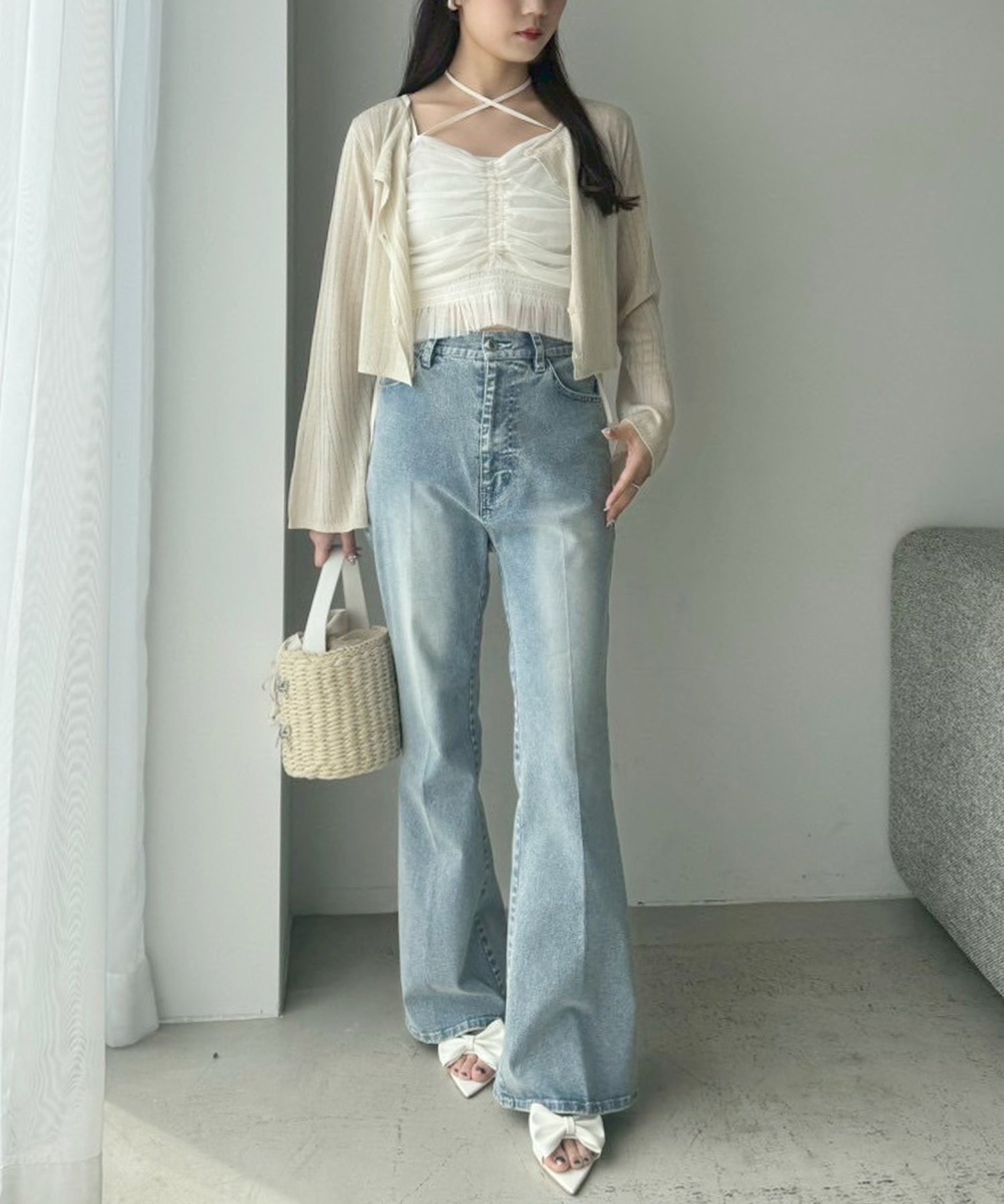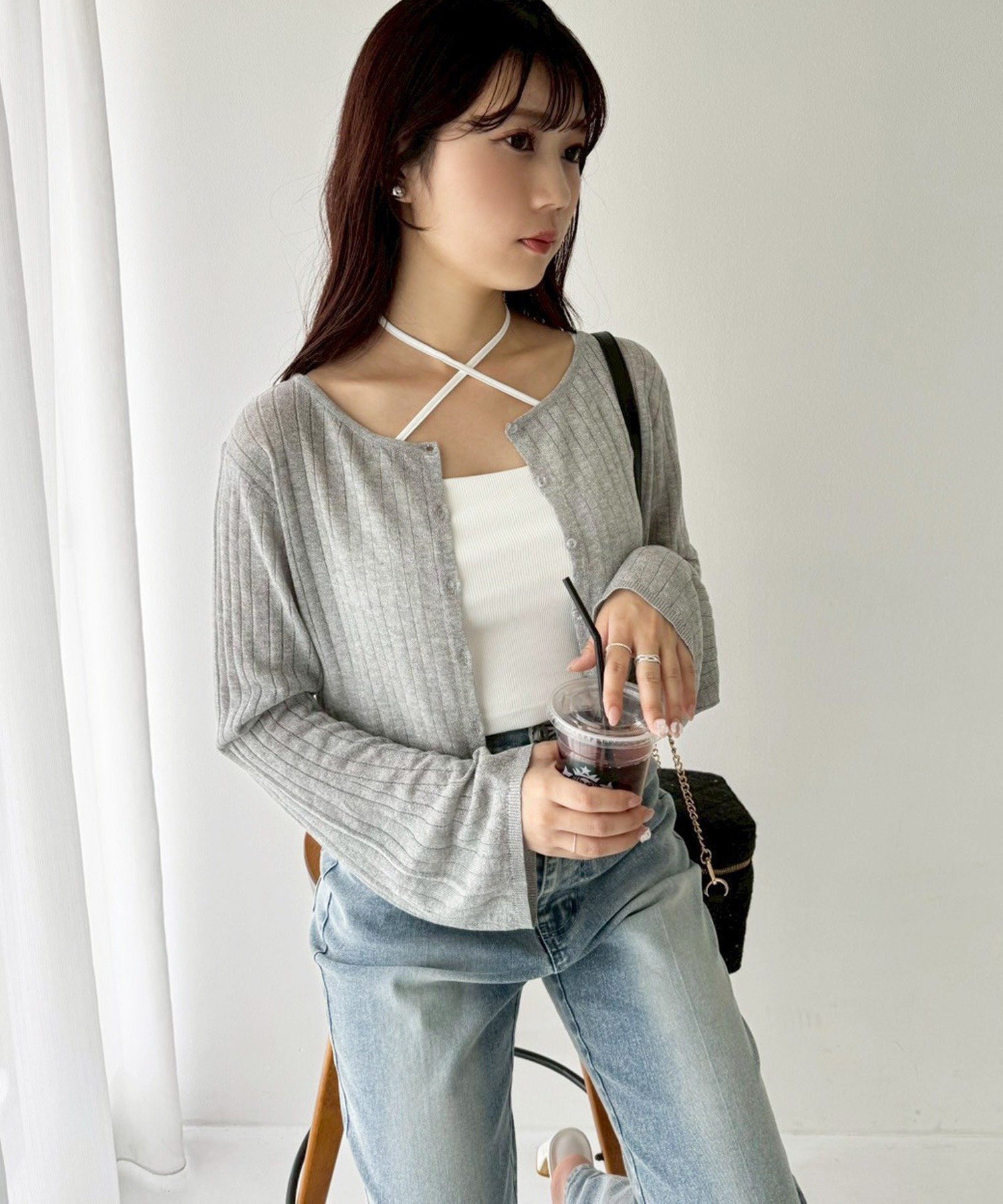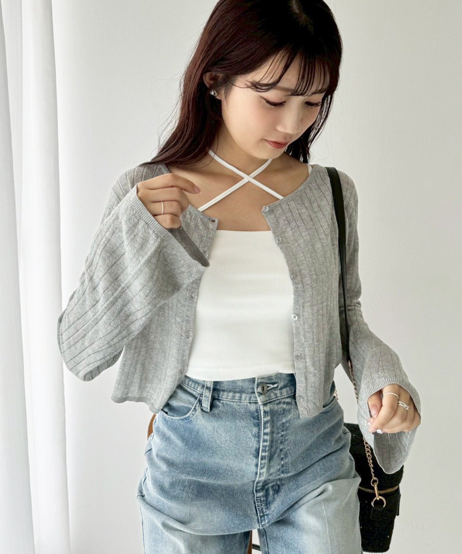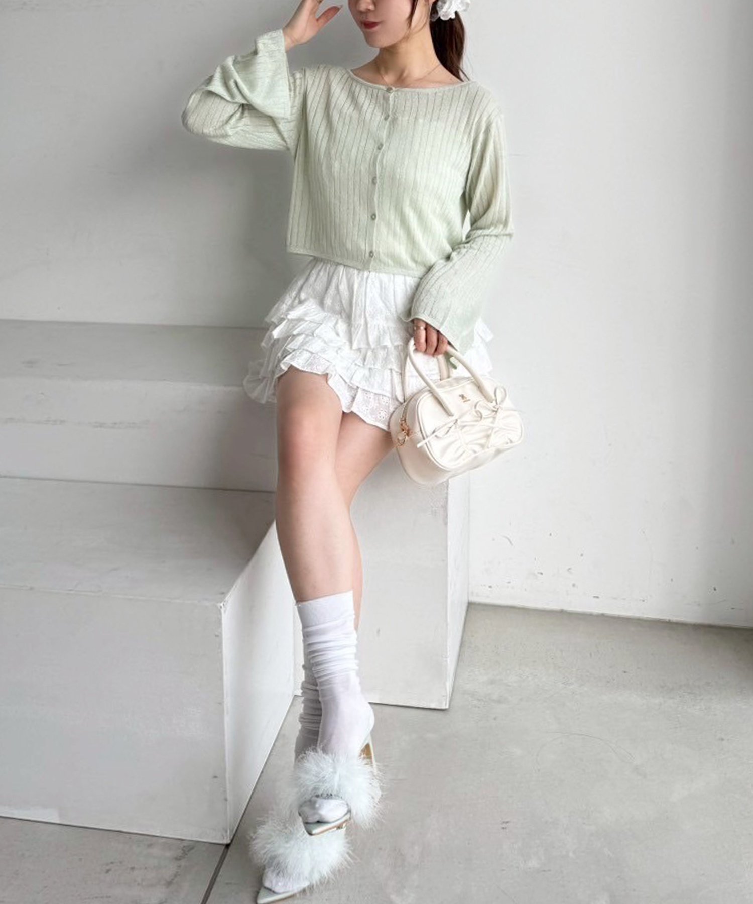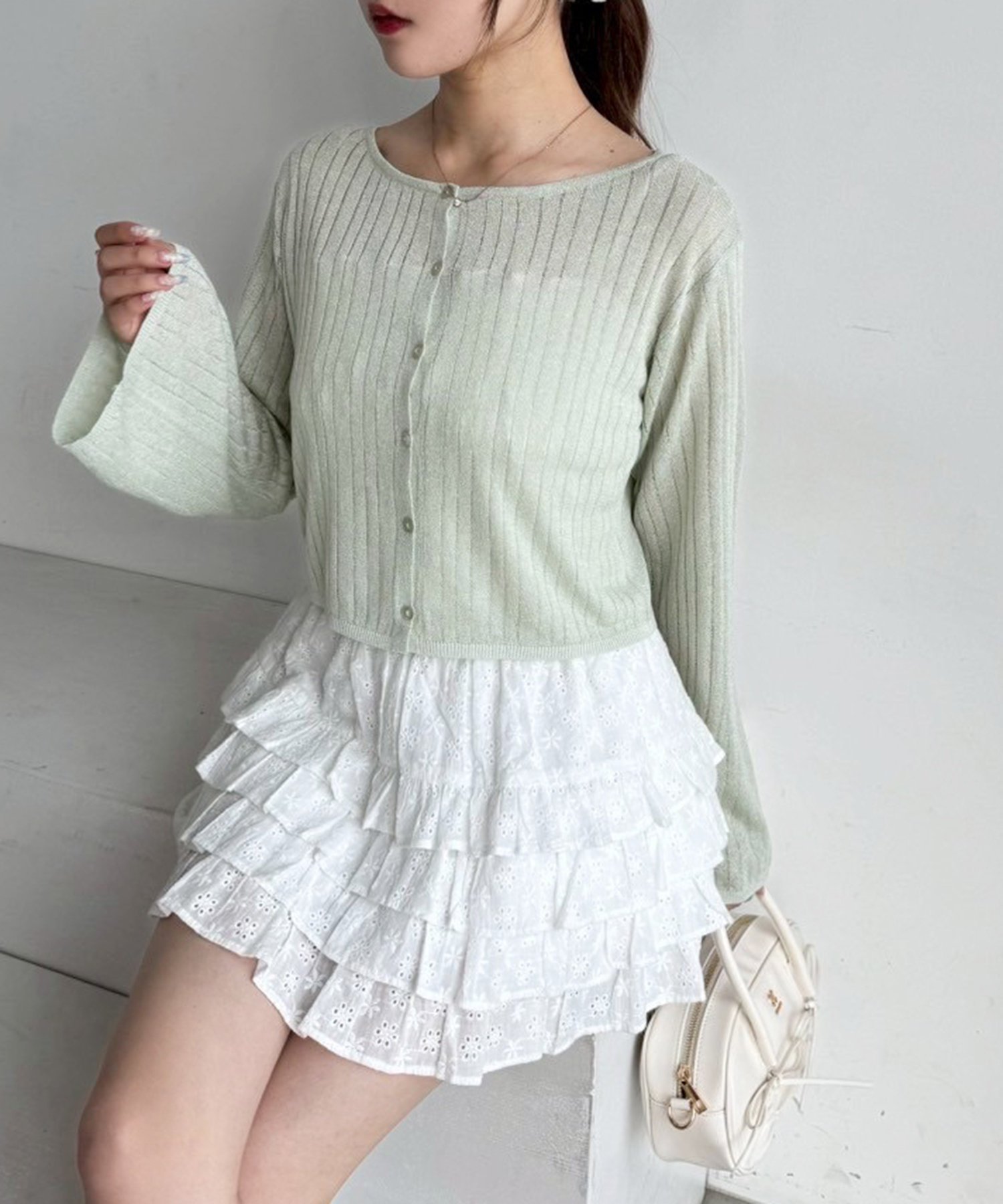 【SALE/10%OFF】one after another NICE CLAUP ラメ混シアーカーデ ワンアフターアナザー ナイスクラップ トップス ニット グレー ホワイト ピンク グリーン