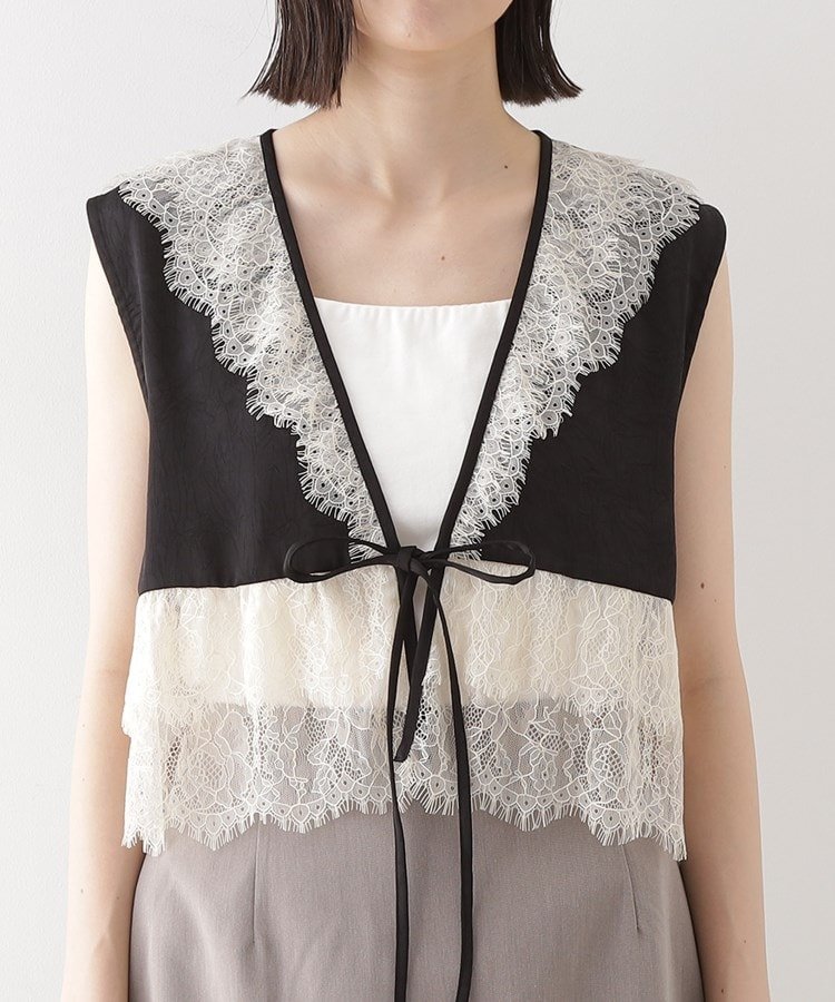 THE SHOP TK レースフリルサテンベスト【洗える】 ザ ショップ ティーケー トップス ベスト・ジレ ブラック【送料無料】