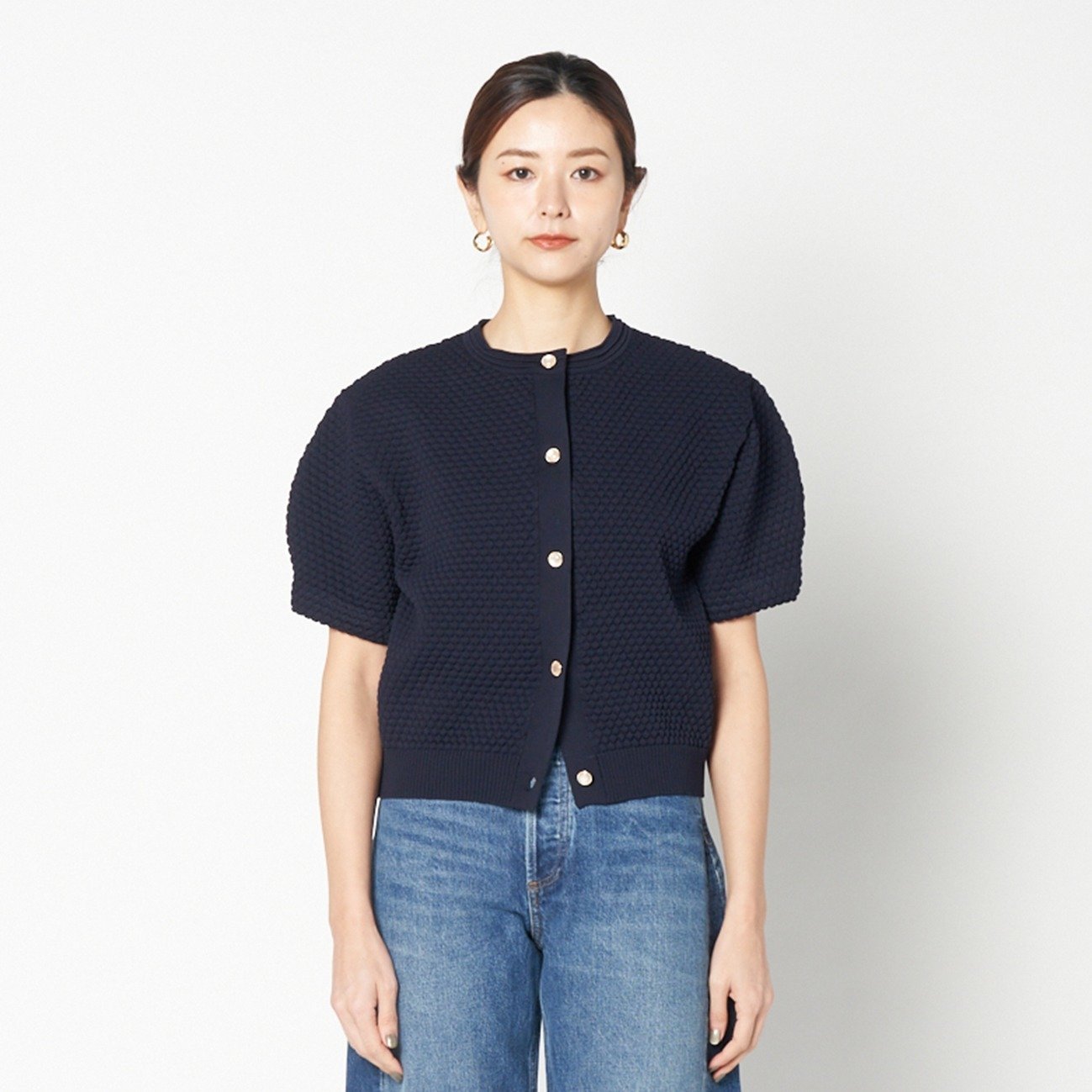 HELIOPOLE POPCORN KNIT BIJOU BUTTON CARDIGAN エリオポール トップス ニット ピンク ホワイト ネイビー【送料無料】
