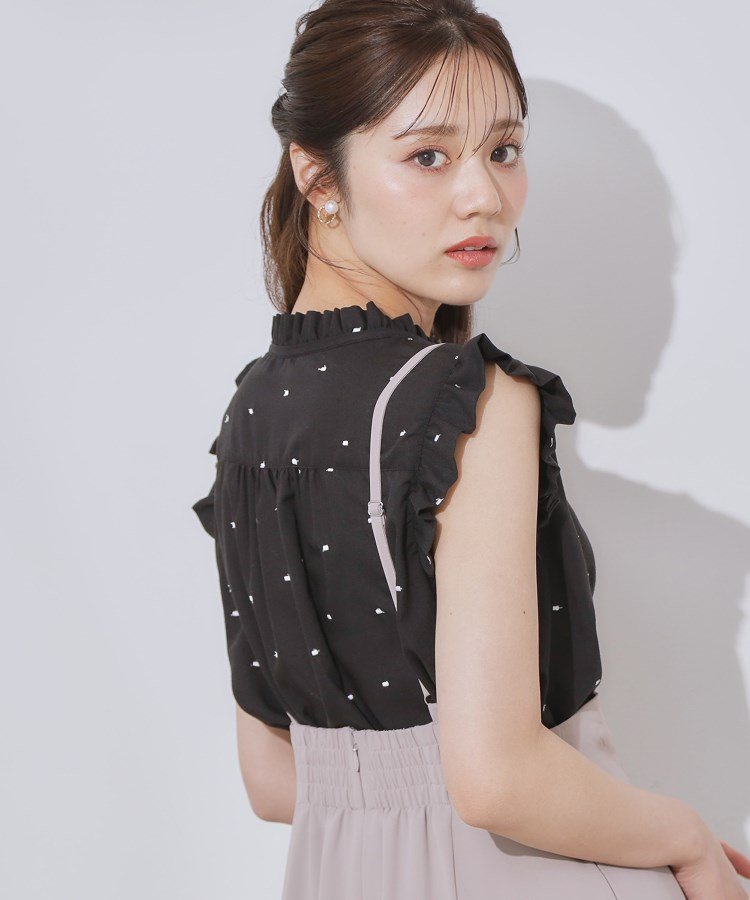 Couture Brooch 【マシンウォッシャブル】ドット刺繍リボンデザインブラウス クチュールブローチ トップス シャツ・ブラウス ブルー ブラック【送料無料】