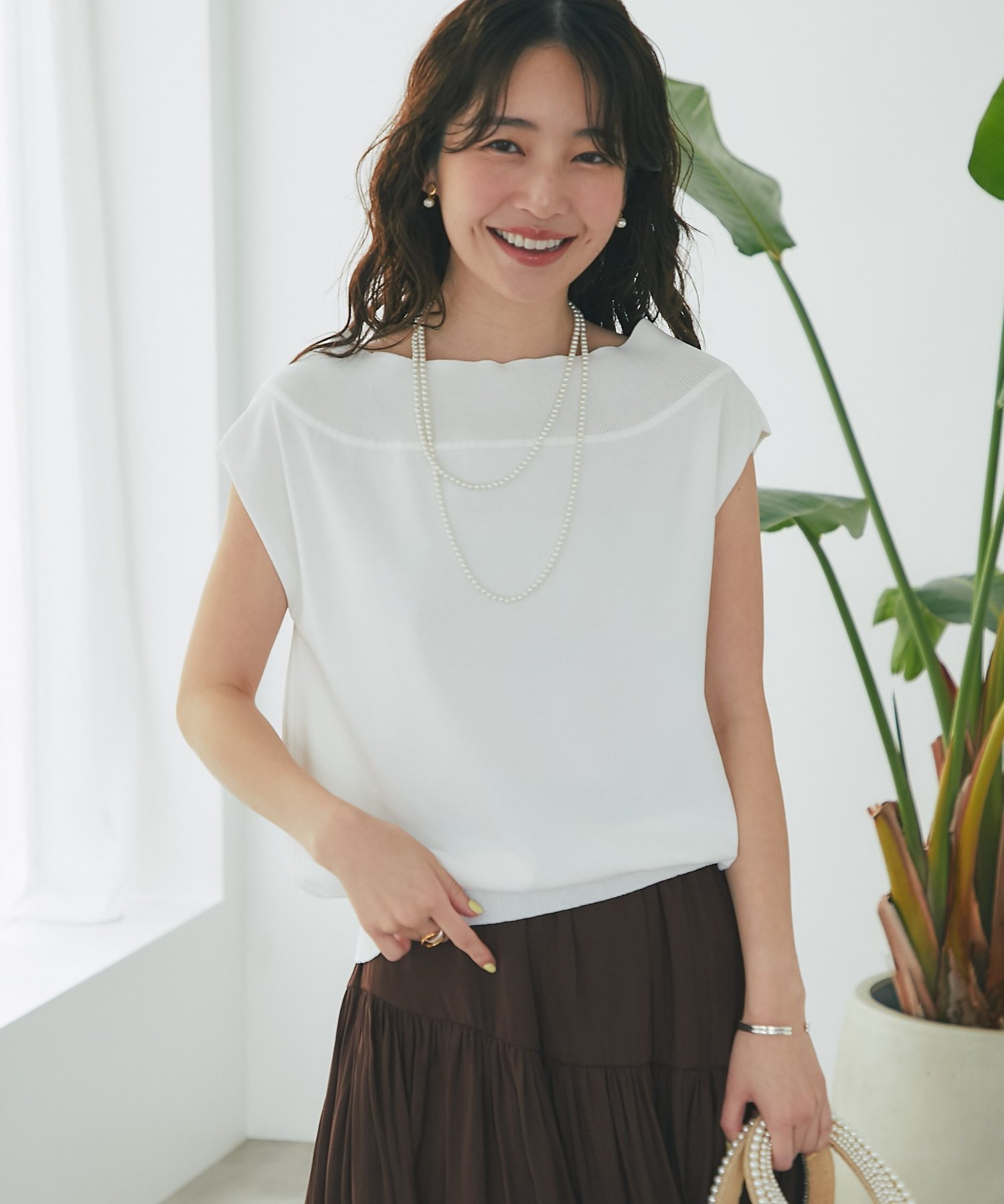 La boutique BonBon 【最強美人見え】クールタッチUVオフショルフレンチニット ラブティックボンボン トップス ニット ピンク ブラウン ホワイト グレー【送料無料】