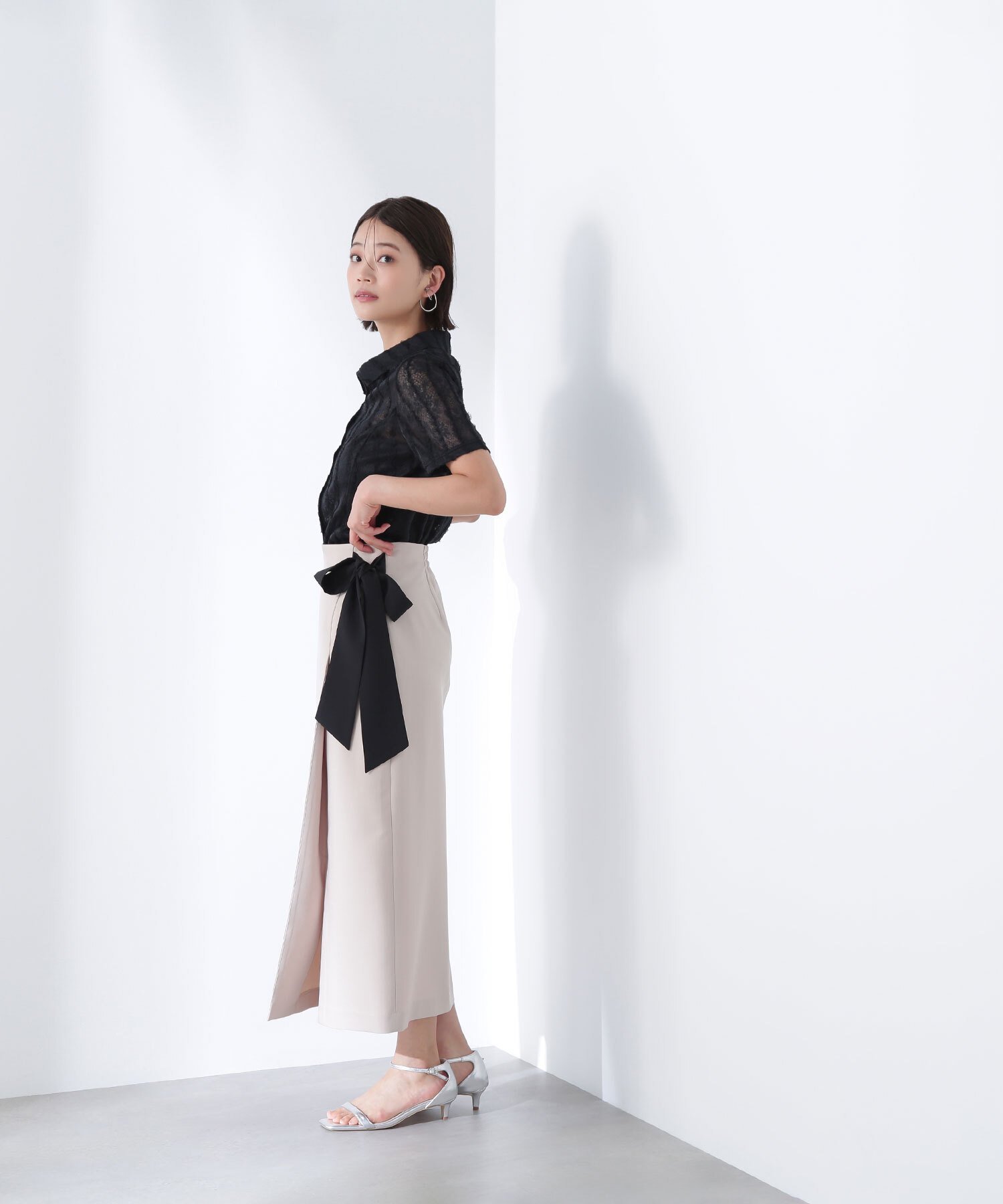 NATURAL BEAUTY BASIC バイカラーリボンナロースカート ナチュラルビューティベーシック スカート その他のスカート ブラック【送料無料】