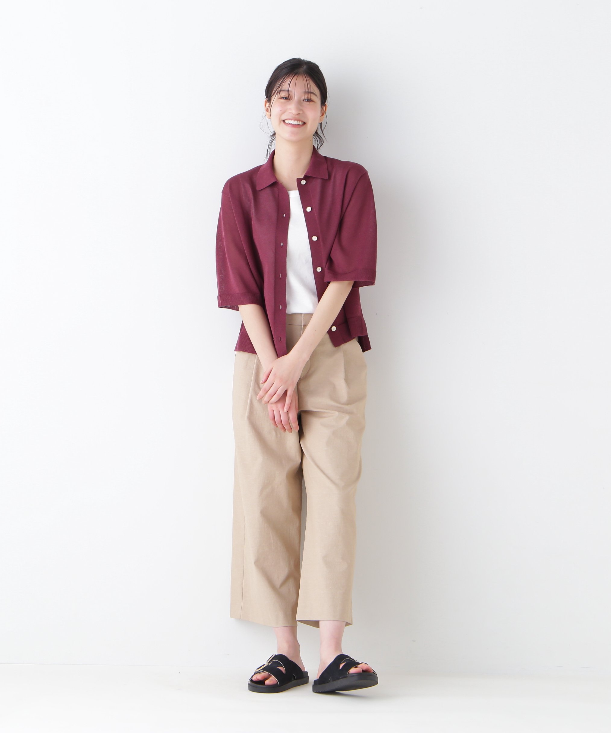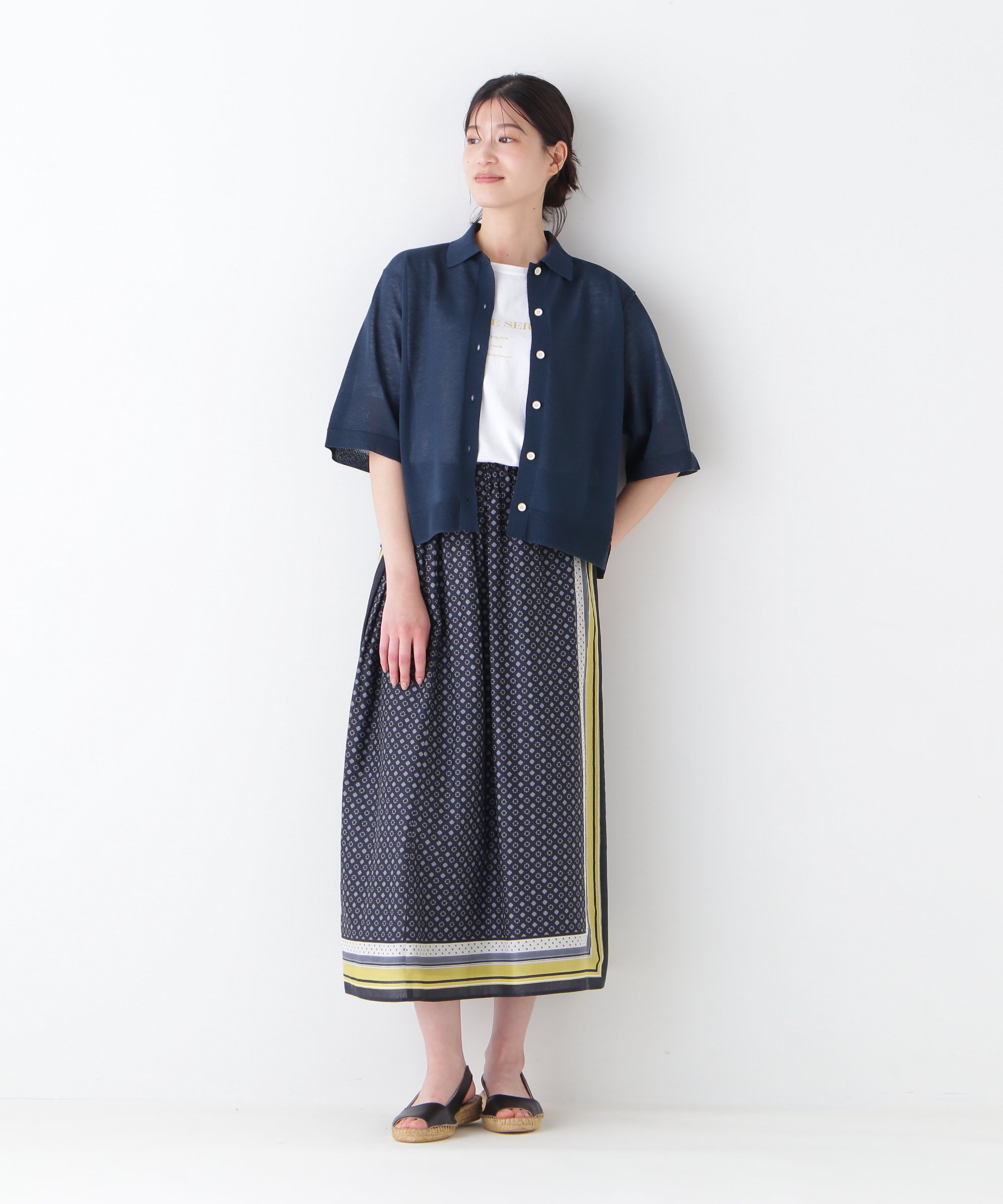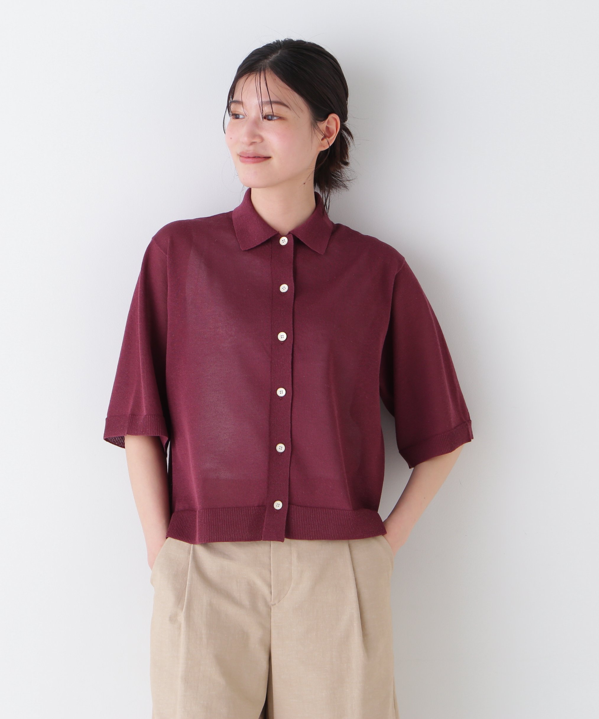 human woman ◆シアーハイゲージ半袖カーディガン ヒューマン ウーマン トップス ニット ブルー イエロー ブラウン【送料無料】