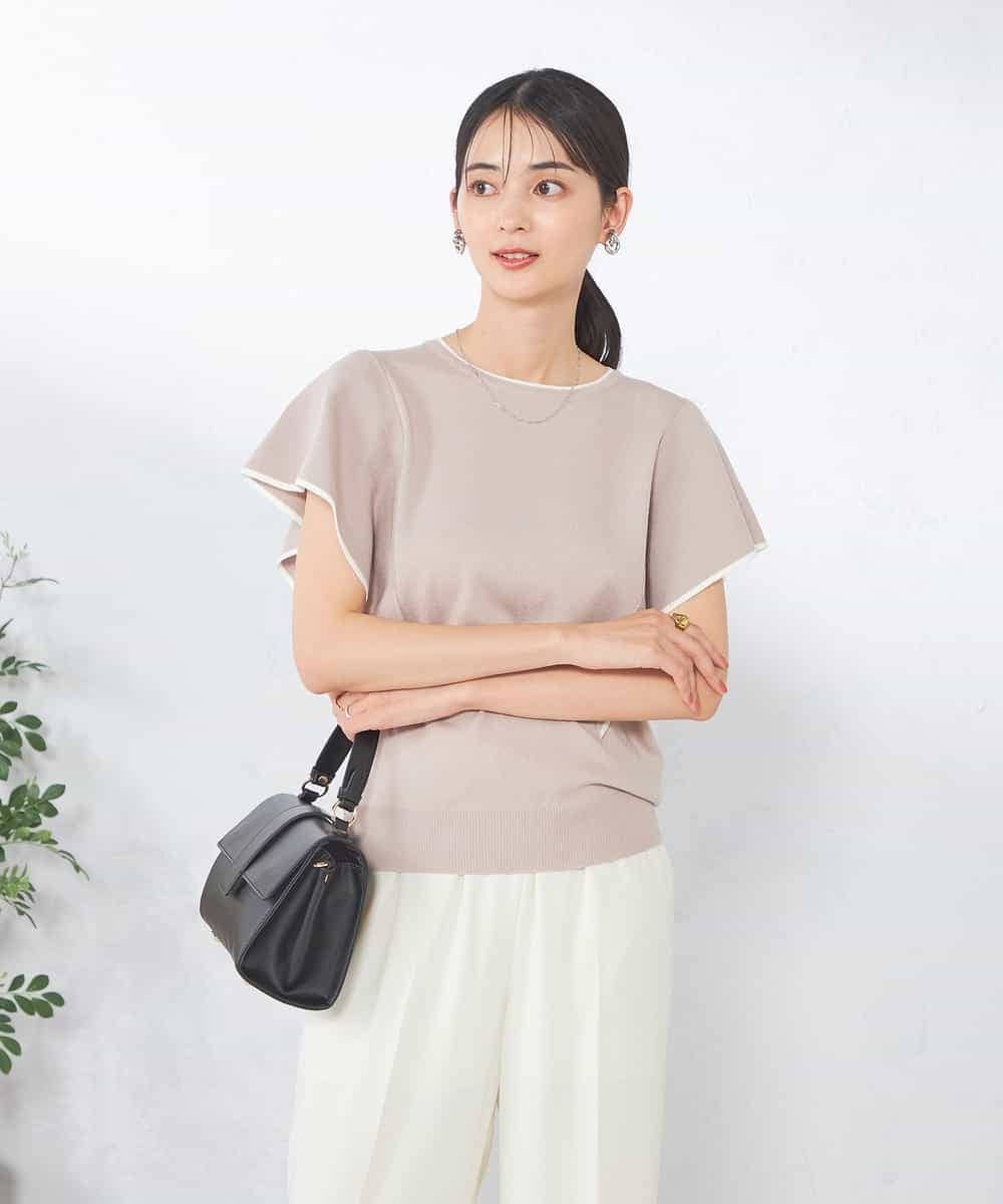 a.v.v フレアスリーブ配色ニット アー・ヴェ・ヴェ トップス ニット ブラック グレー【送料無料】
