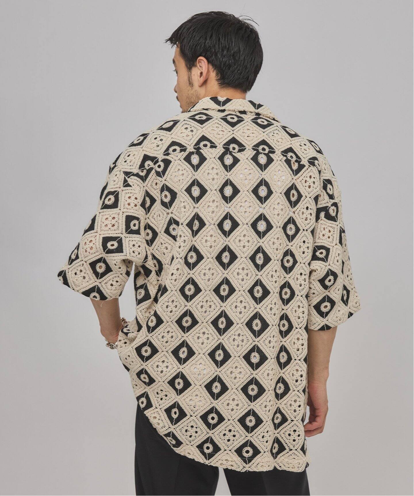 EDIFICE クロシェ オープンカラー ショートスリーブ シャツ エディフィス トップス シャツ・ブラウス ブラック ブルー【送料無料】