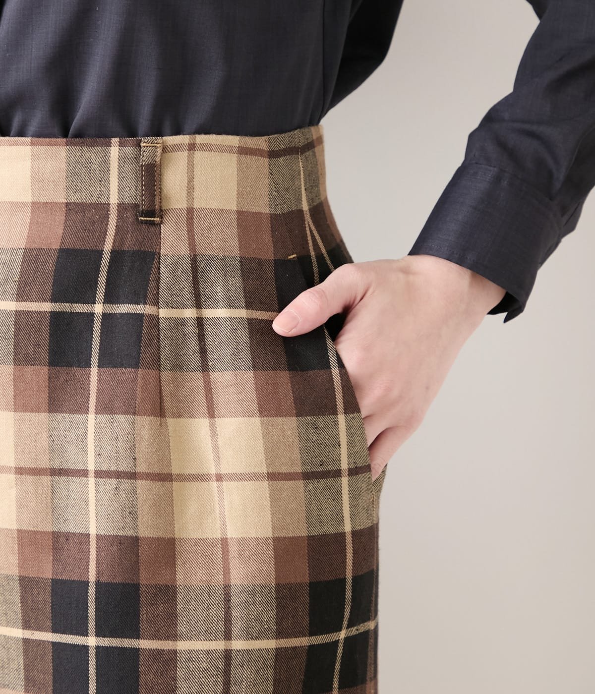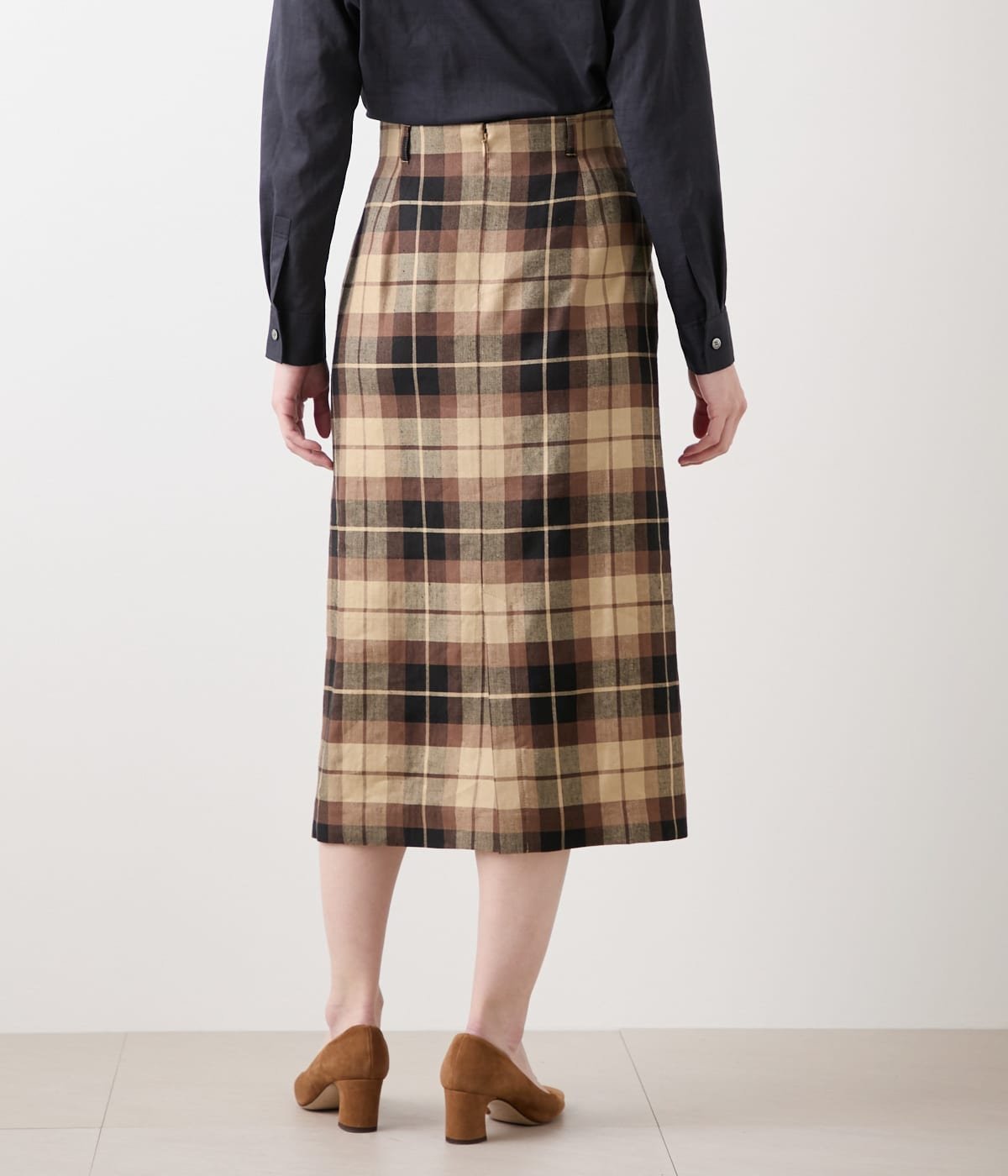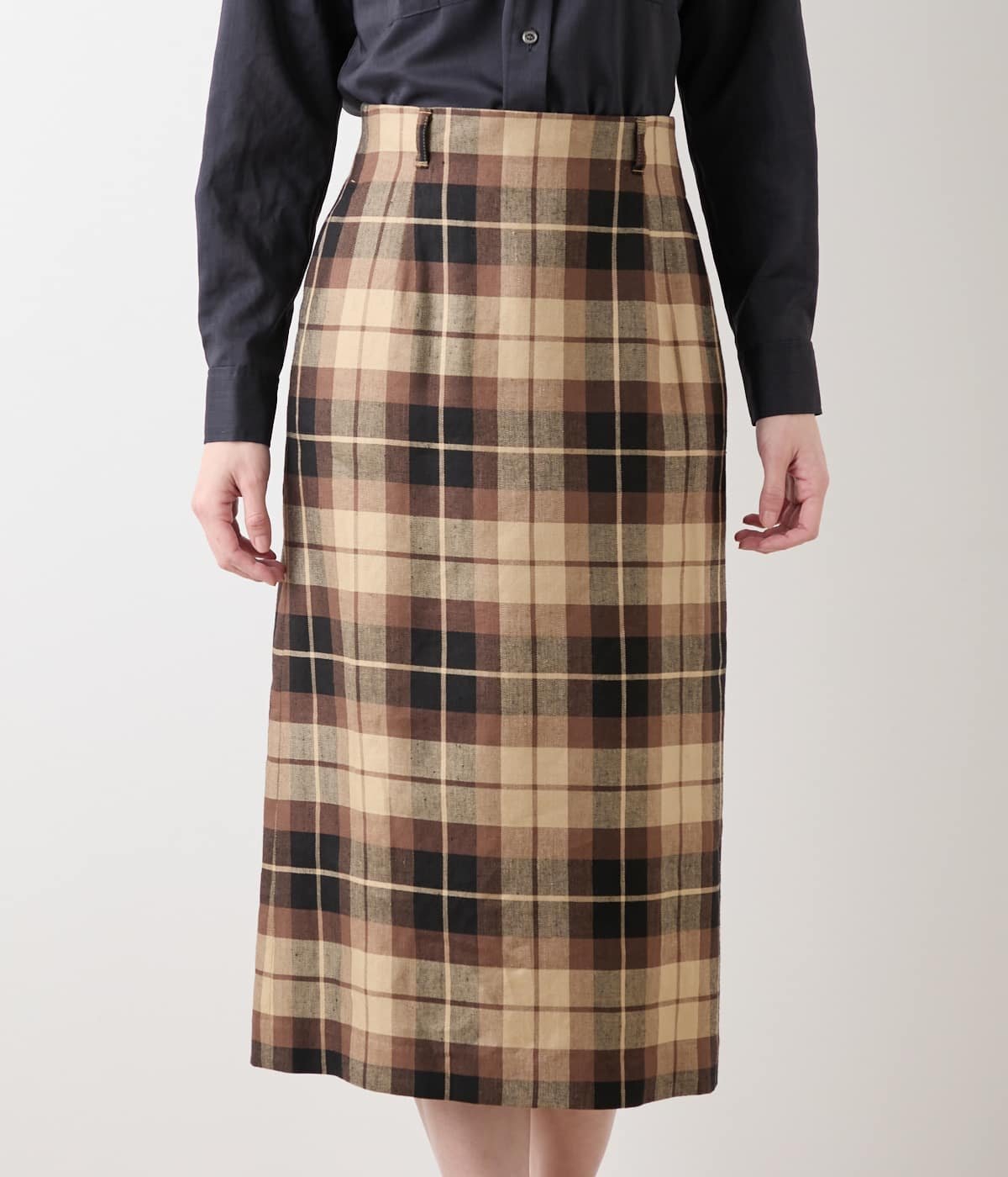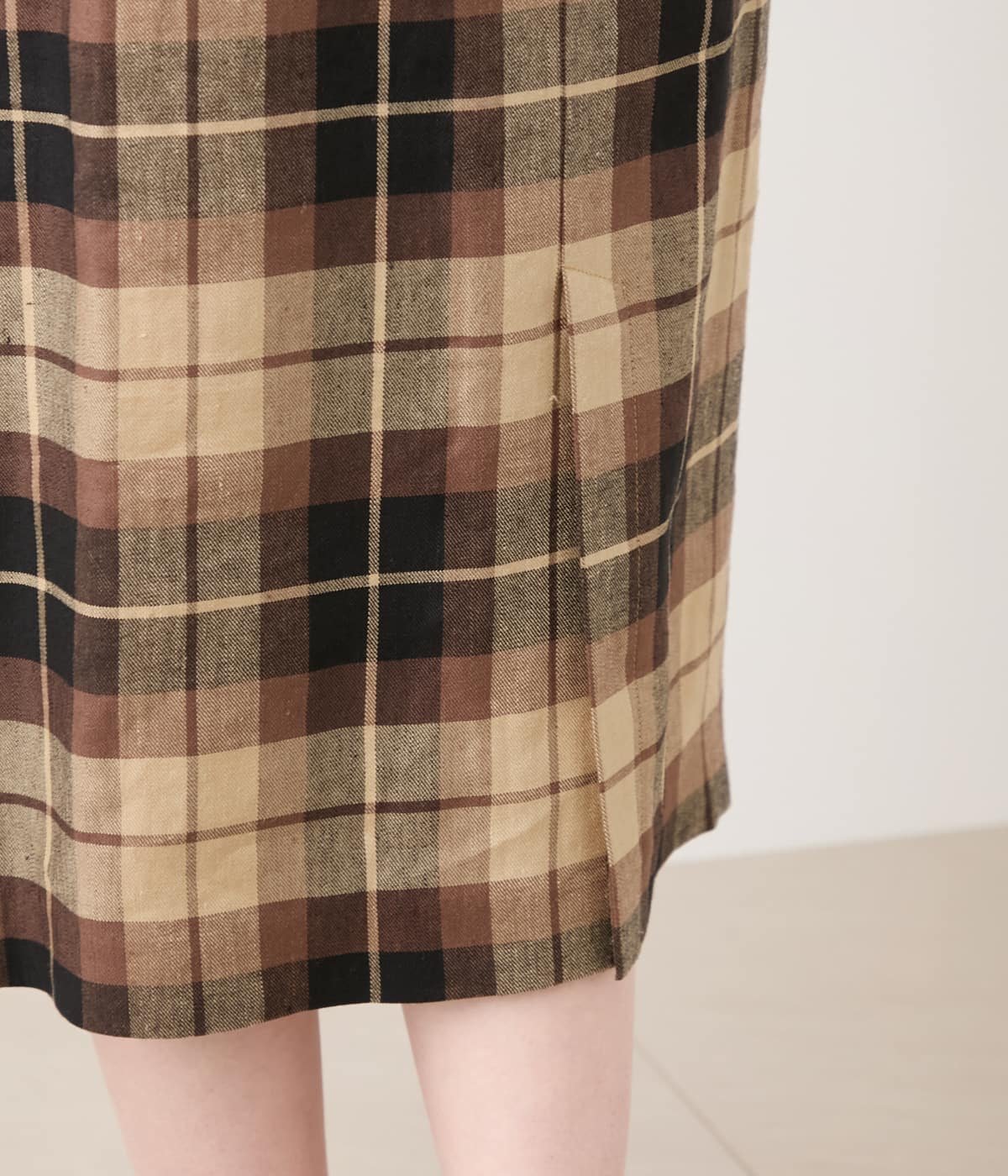 NEWYORKER WOMEN リネンヴィスコースチェック ストレートスカート ニューヨーカー スカート その他のスカート ブラウン【送料無料】