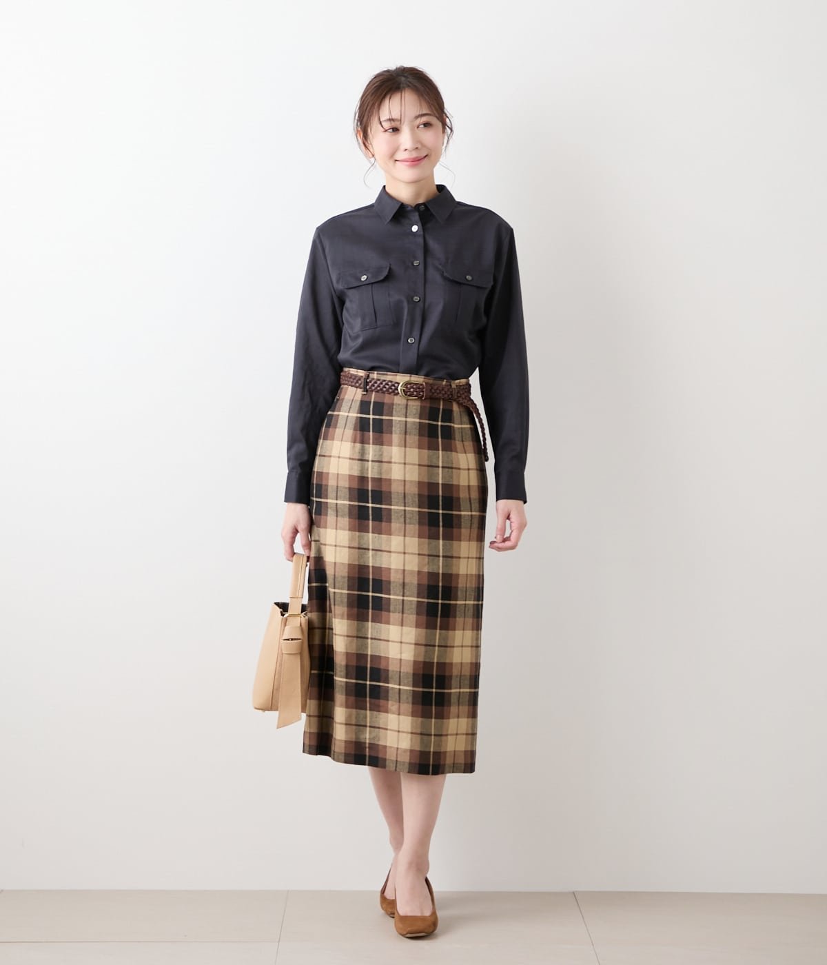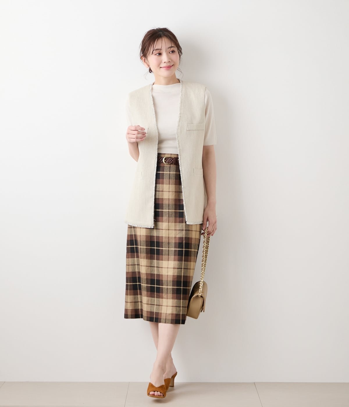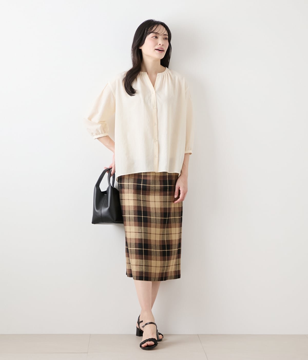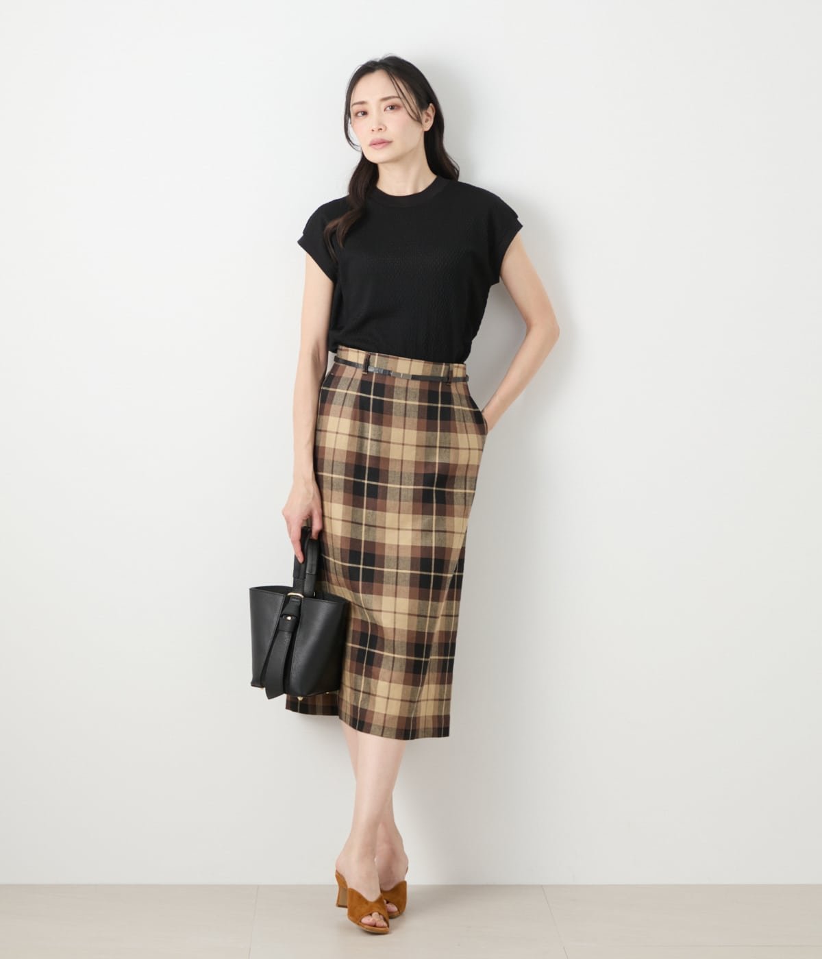NEWYORKER WOMEN リネンヴィスコースチェック ストレートスカート ニューヨーカー スカート その他のスカート ブラウン【送料無料】