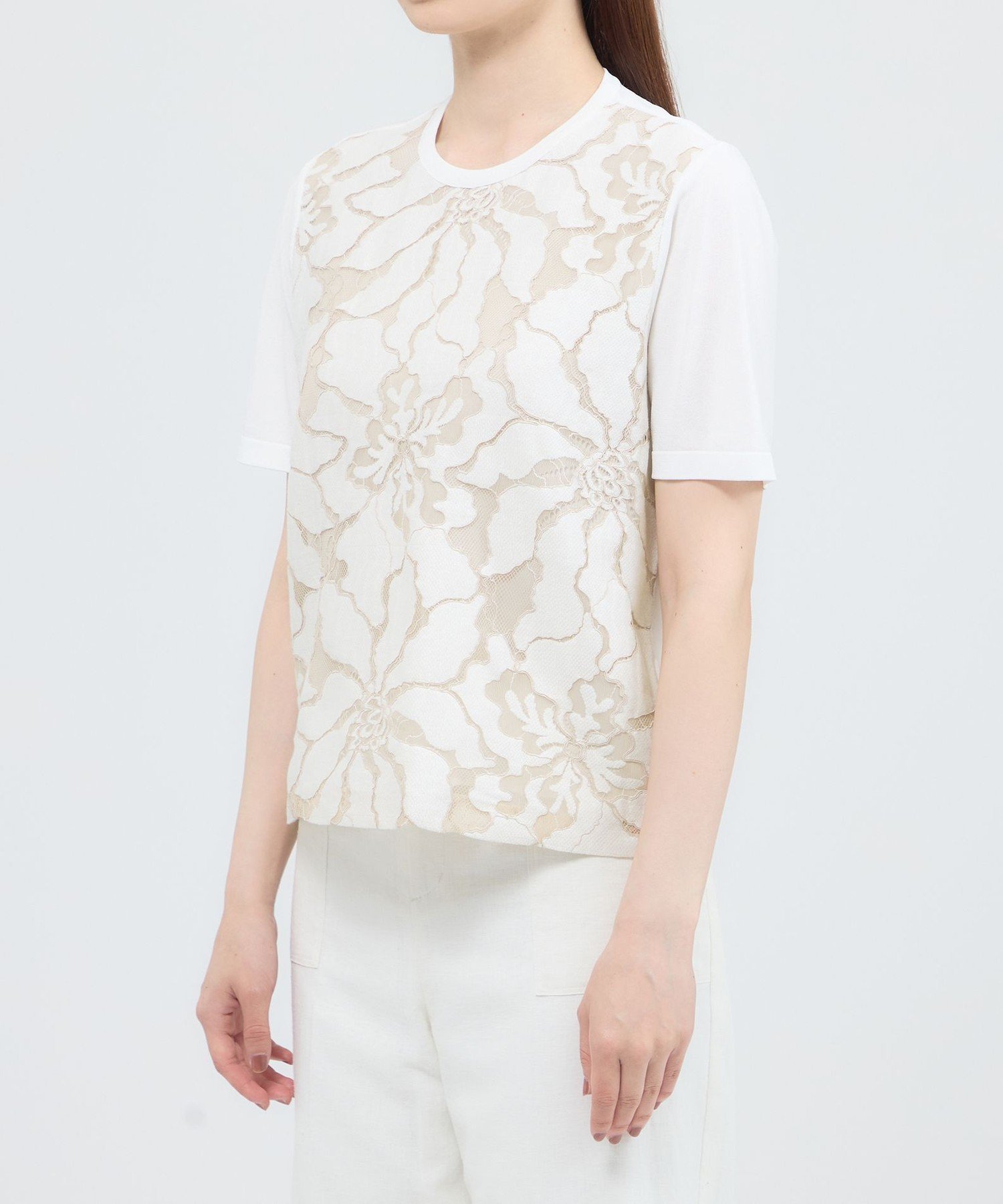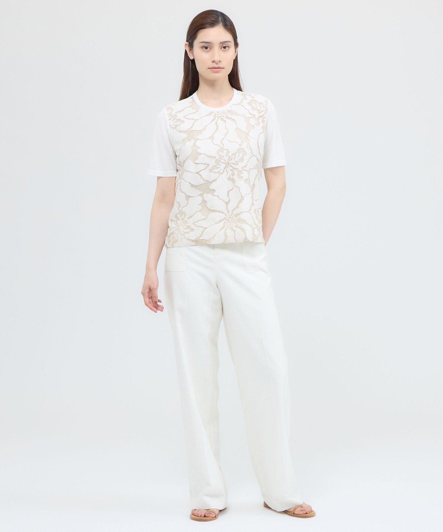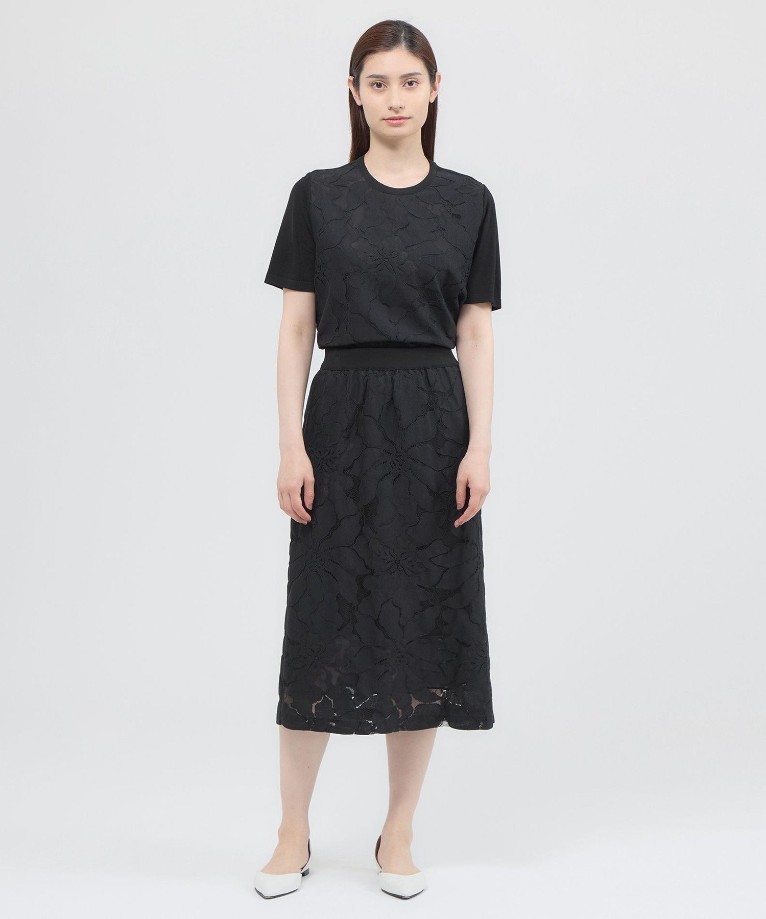 Paul Stuart 【ウォッシャブル】フラワーコードレース プルオーバー ポール・スチュアート トップス ニット ブラック ホワイト【送料無料】