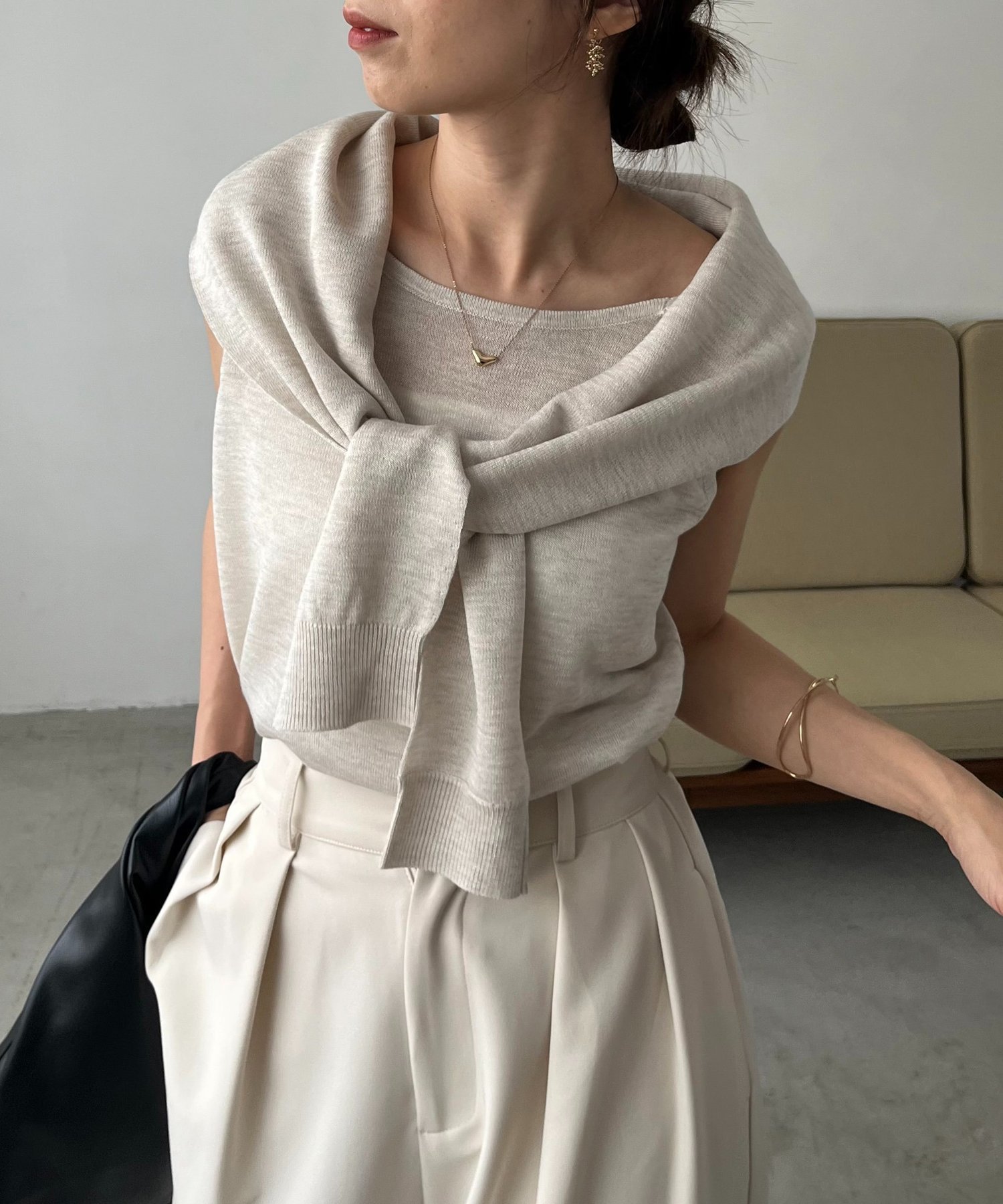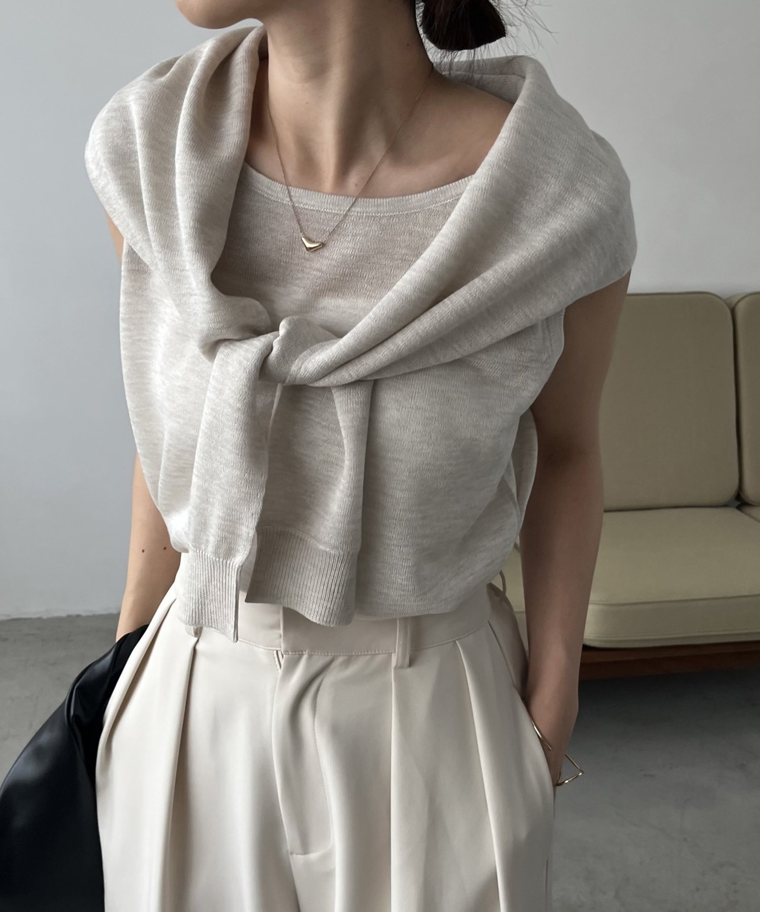 CAPRICIEUX LE'MAGE 【一枚でお洒落見え】肩掛けデザインニット カプリシュ レマージュ トップス ニット ベージュ ピンク ブラック【送料無料】