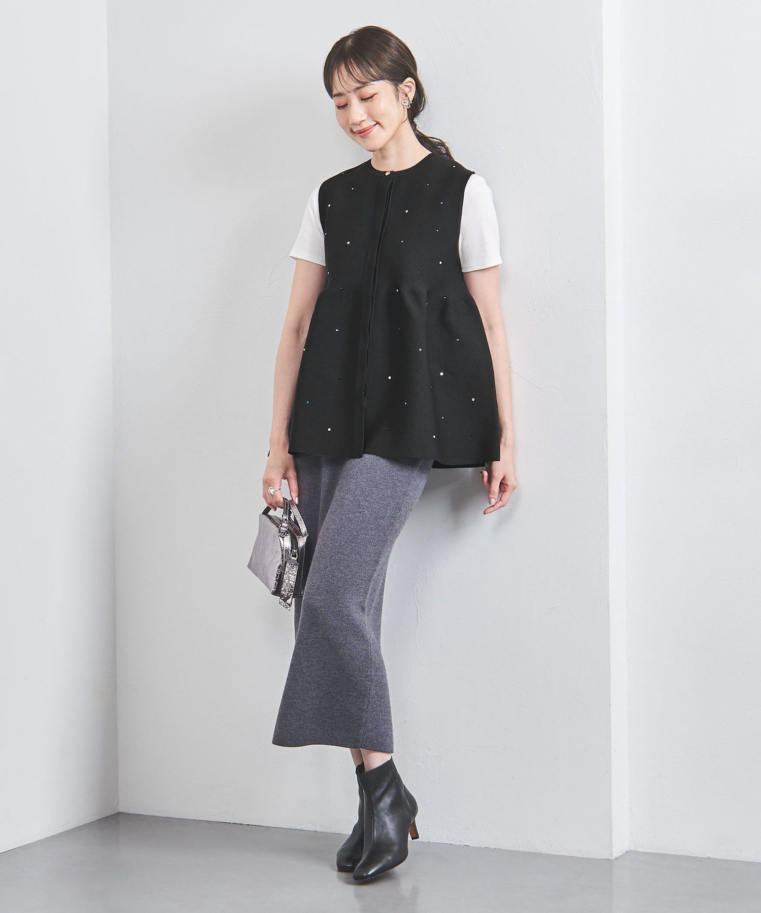【SALE/30%OFF】UNITED ARROWS マルチビジュー ニットベスト ユナイテッドアローズ アウトレット トップス ニット ベージュ ブラック【送料無料】
