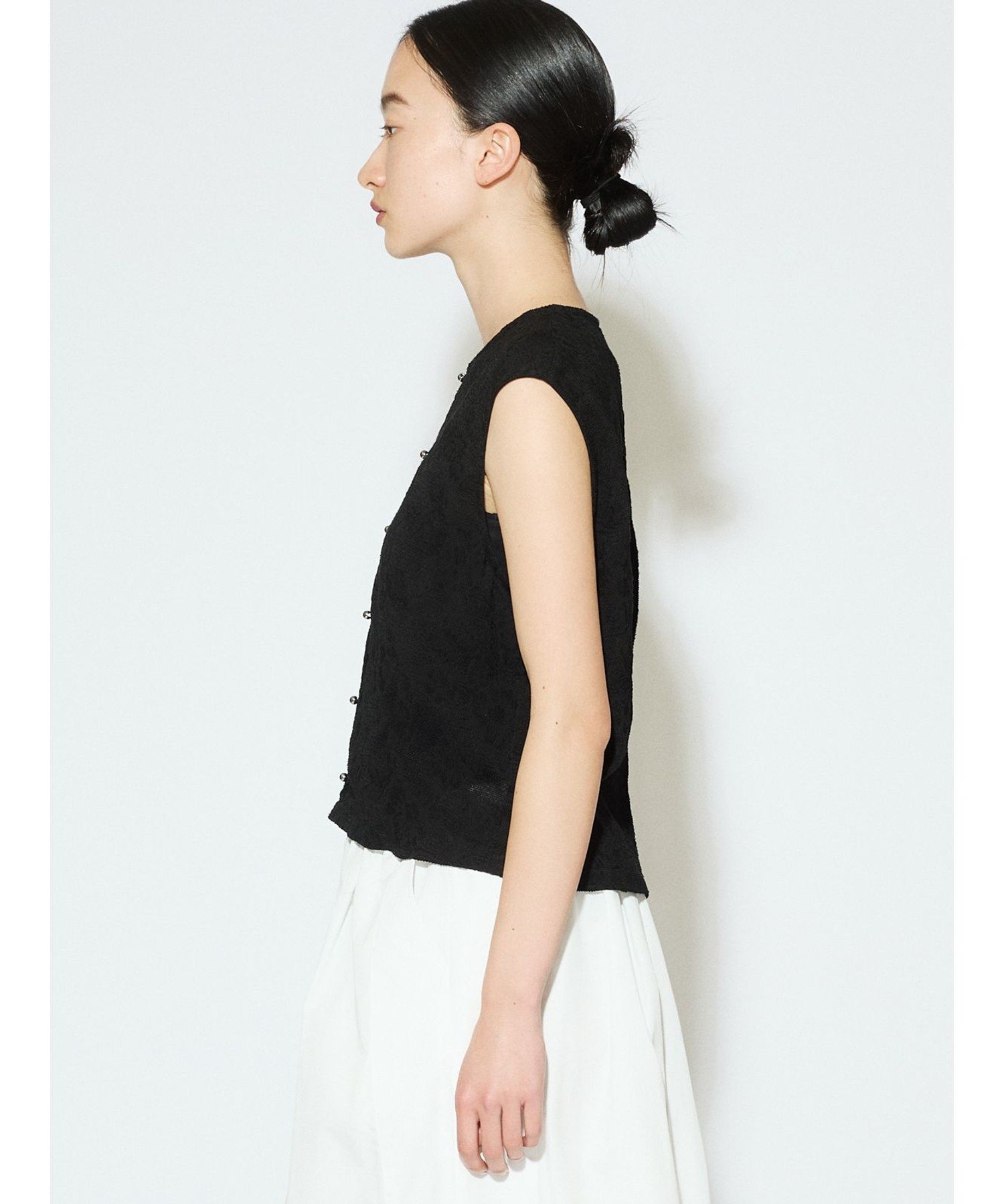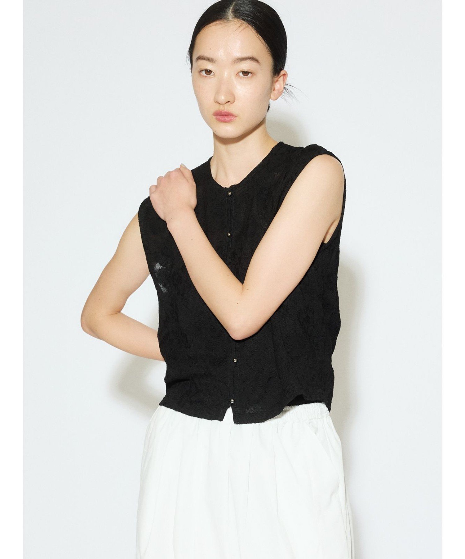 MIDIUMISOLID MIDIUMISOLID for Ladies カットジャカードレースベスト マーコート トップス ベスト・ジレ ホワイト ブラック【送料無料】