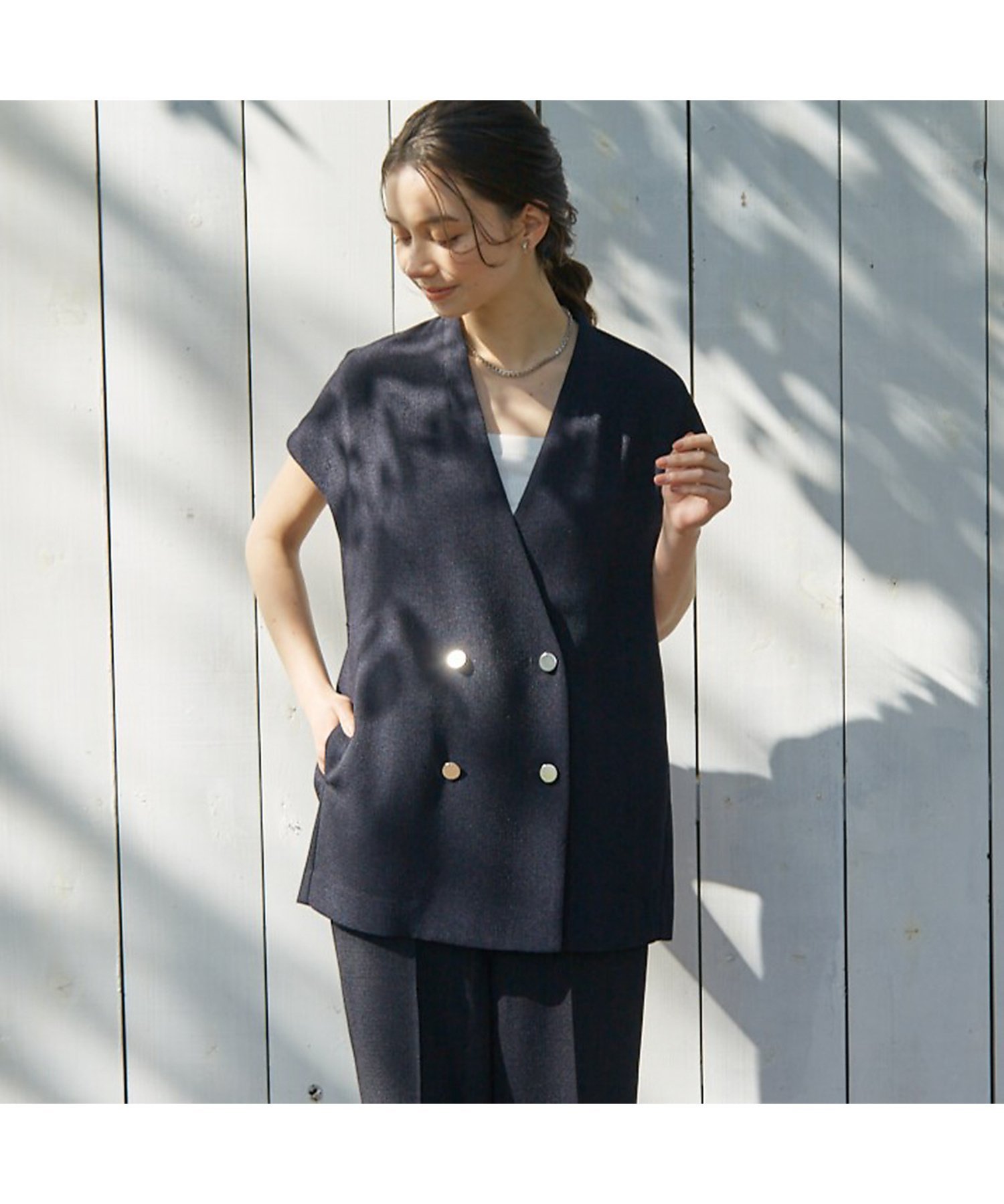 abahouse mavie 【2点/セットアップ】ライトツィードフレンチ ジャケット&パンツセット アバハウス マヴィ ジャケット・アウター ノーカラージャケット ネイビー グレー【送料無料】