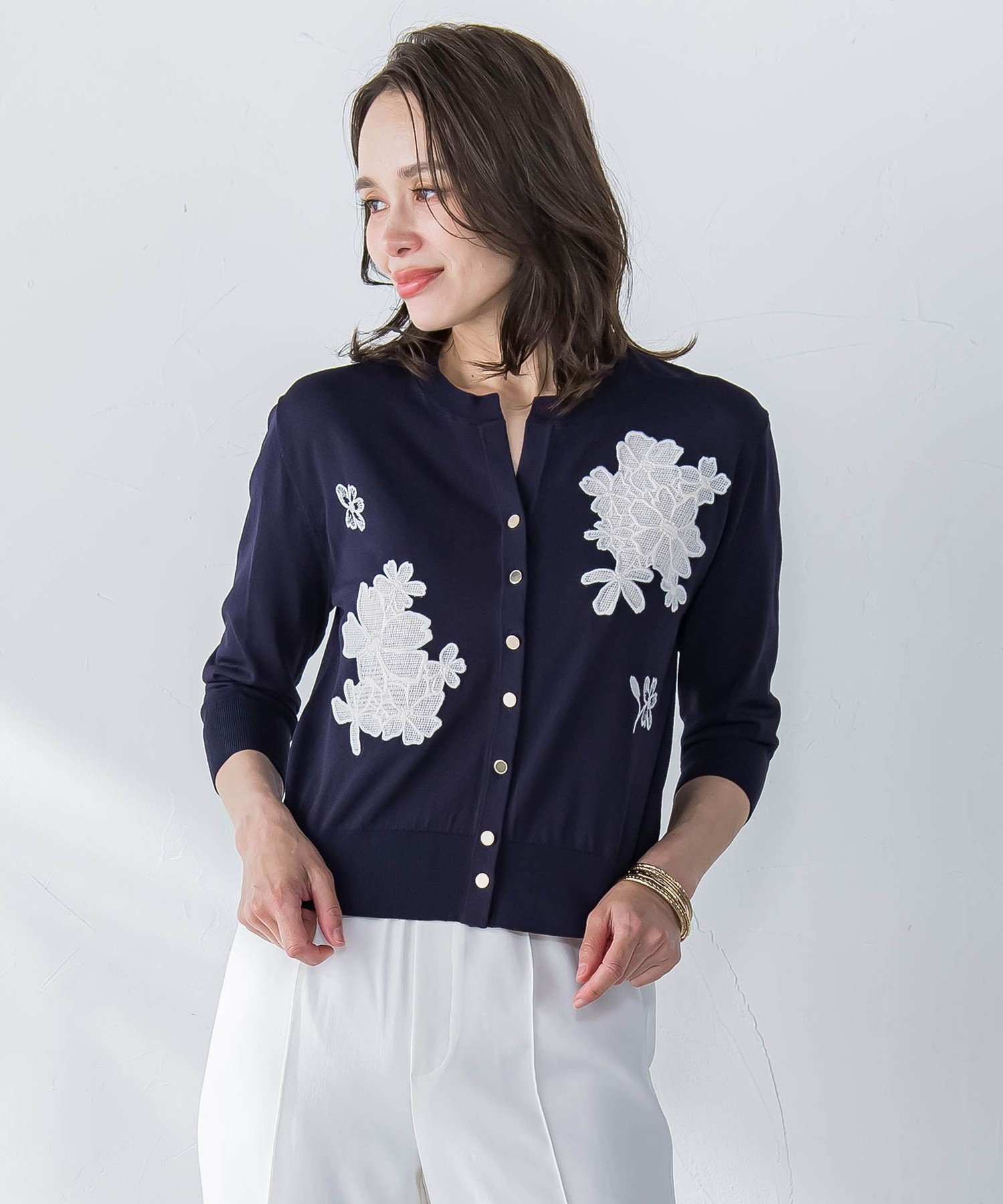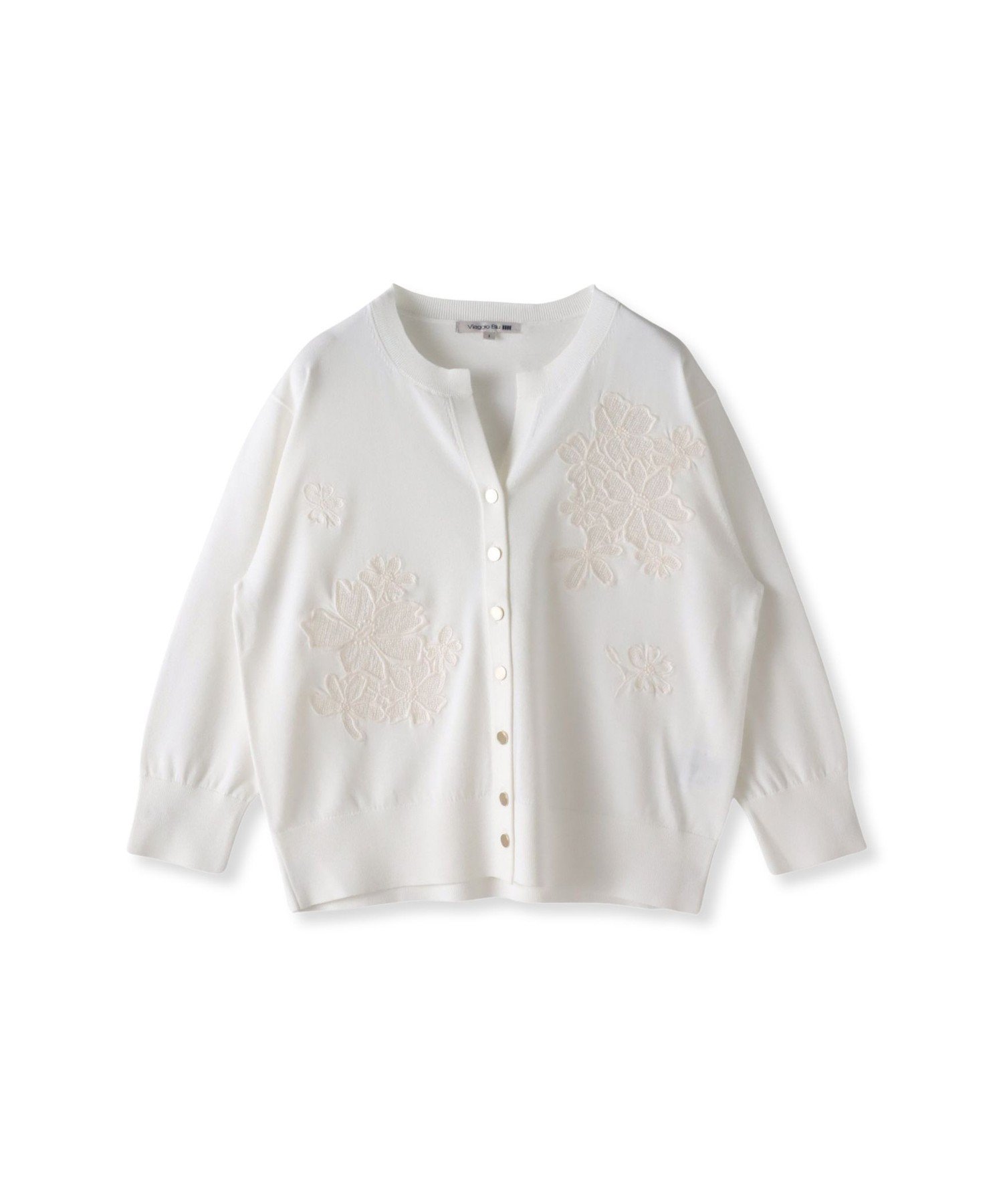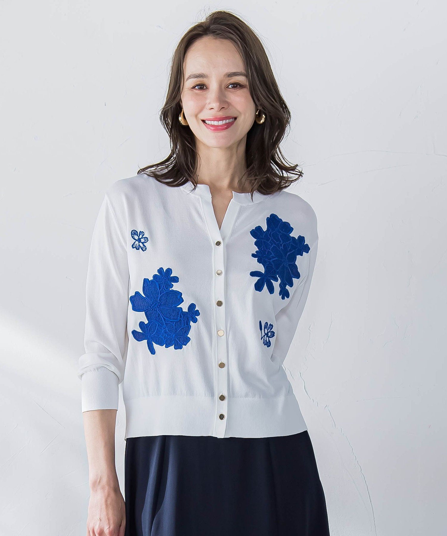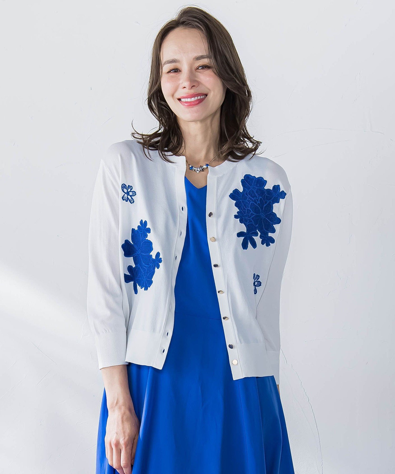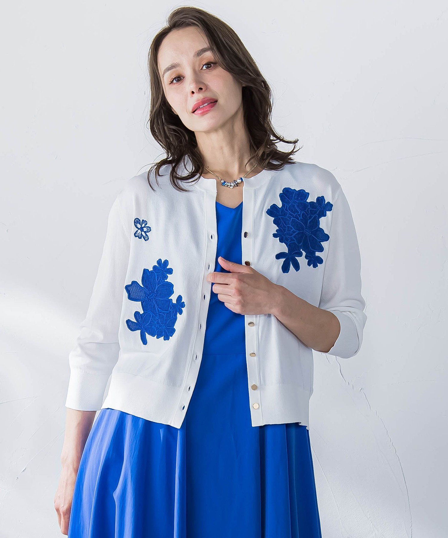 Viaggio Blu フラワー刺繍カーディガン≪手洗い可能≫ ビアッジョブルー トップス ニット ブルー ホワイト ネイビー【送料無料】