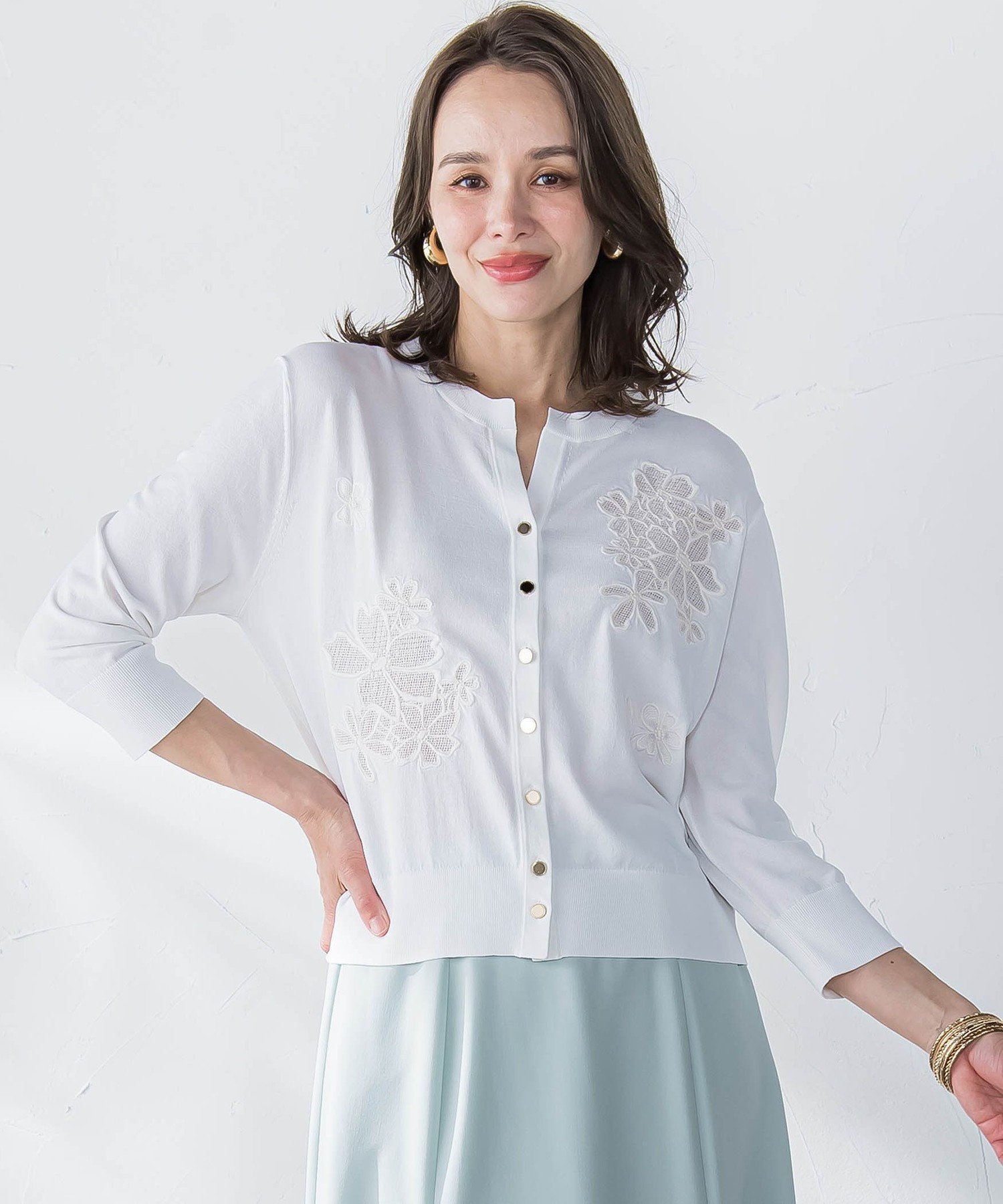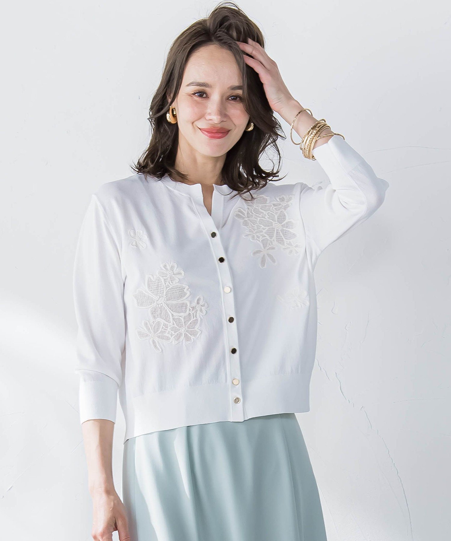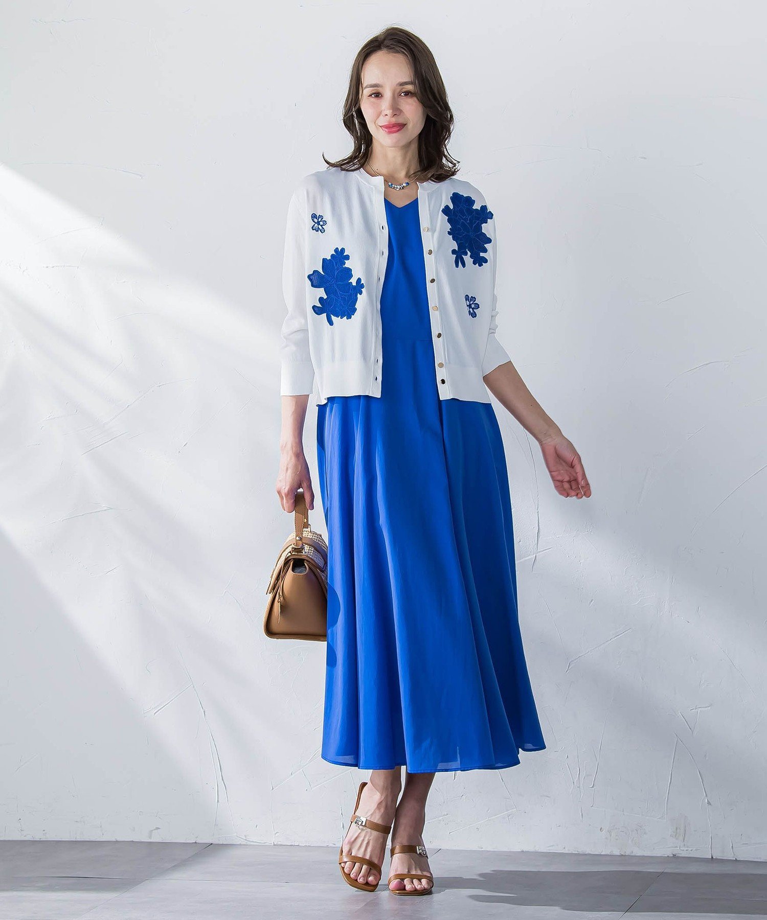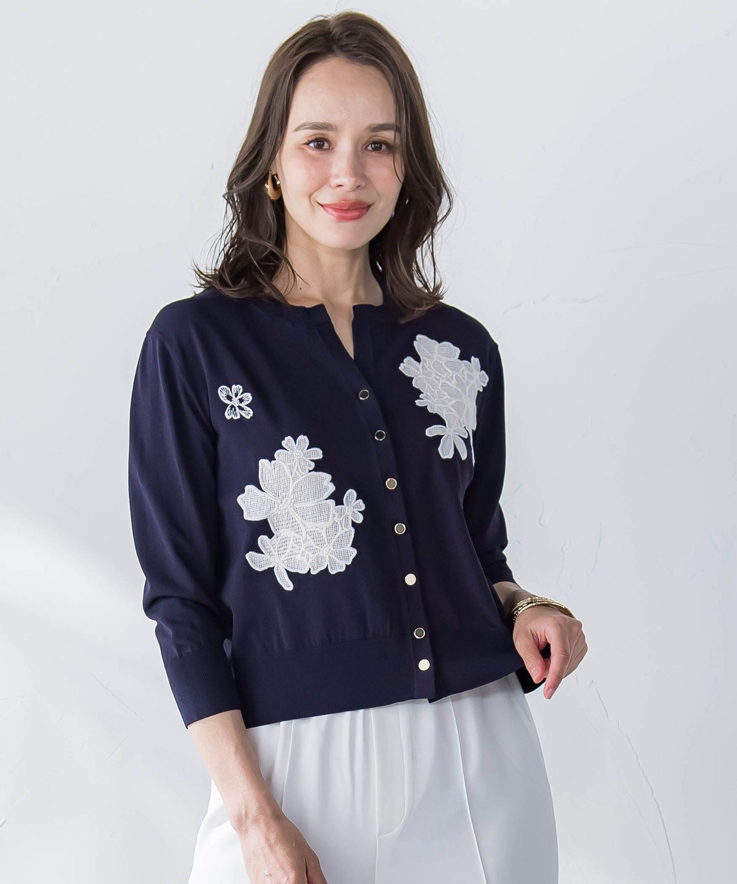 Viaggio Blu フラワー刺繍カーディガン≪手洗い可能≫ ビアッジョブルー トップス ニット ブルー ホワイト ネイビー【送料無料】