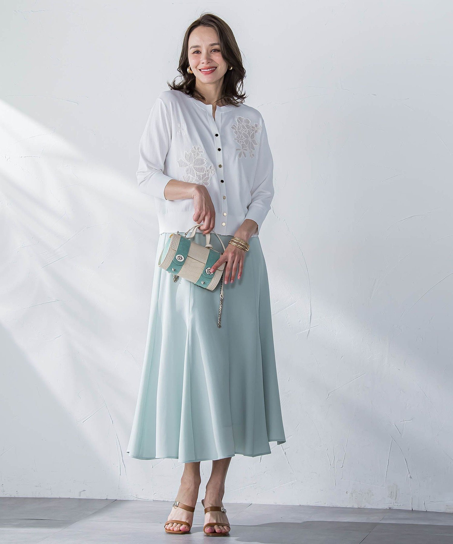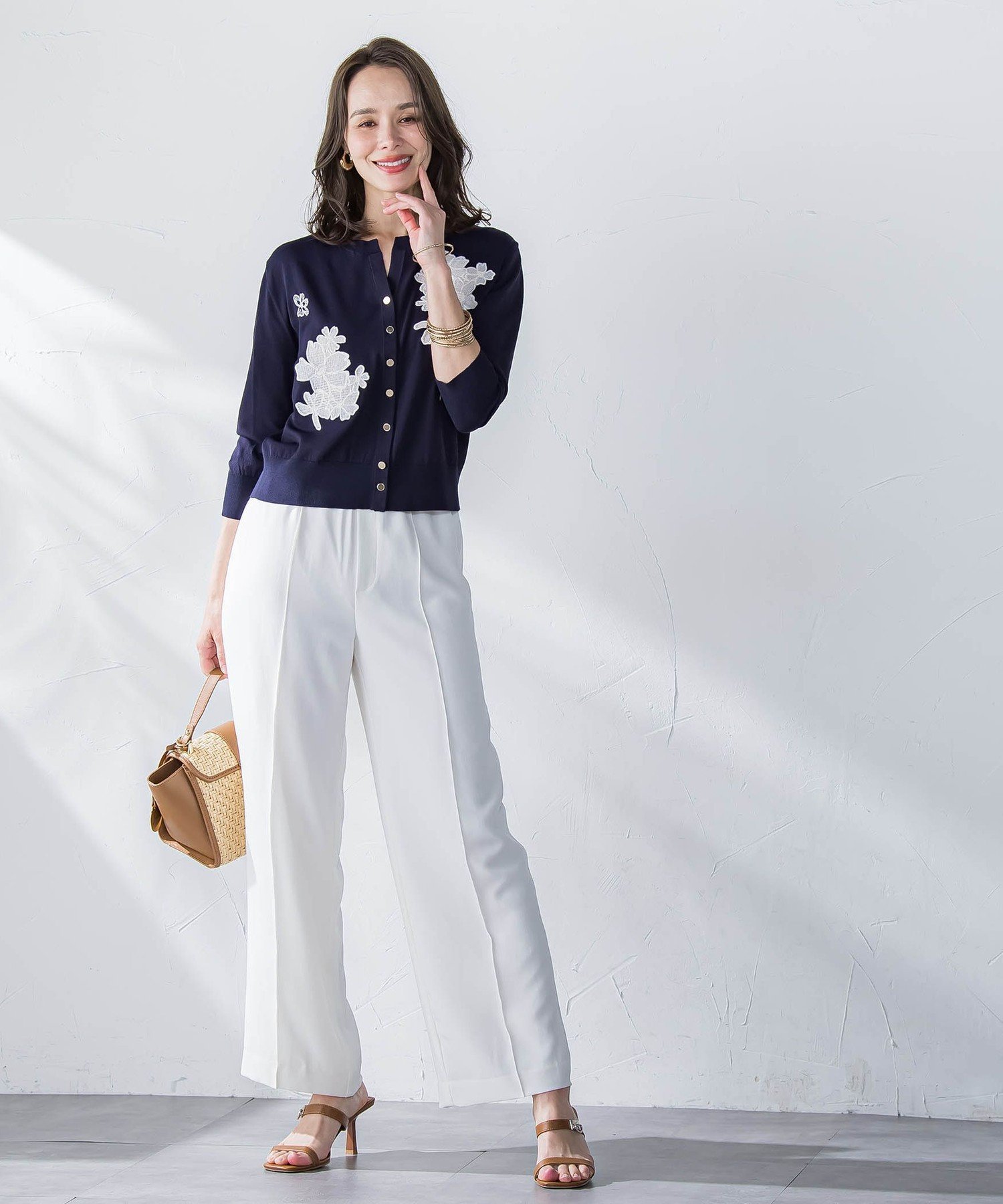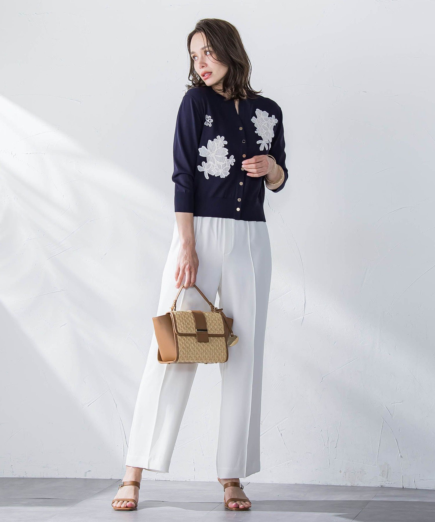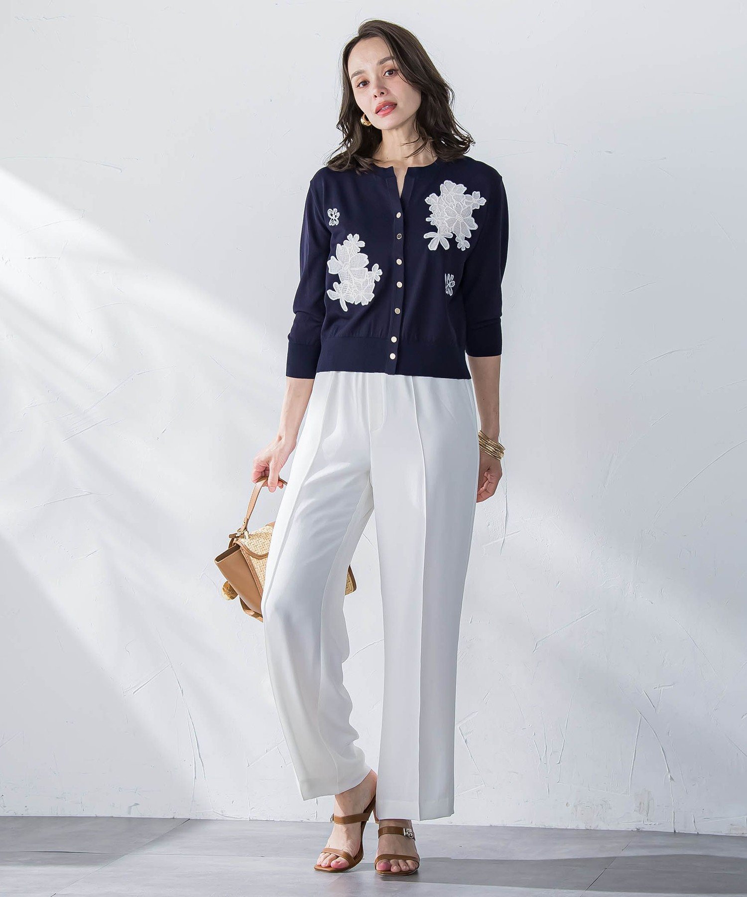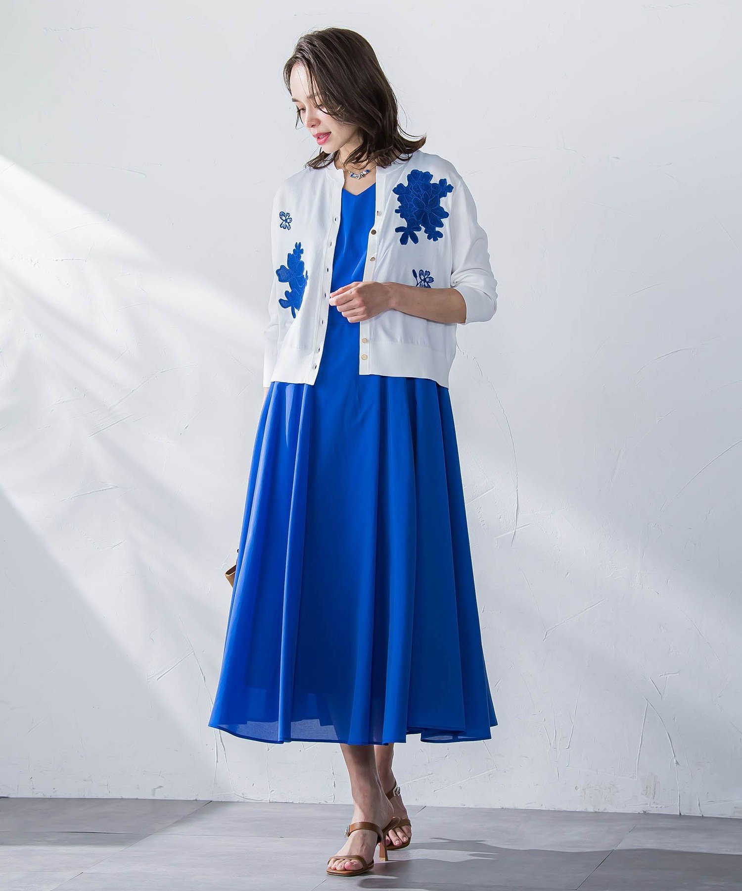 Viaggio Blu フラワー刺繍カーディガン≪手洗い可能≫ ビアッジョブルー トップス ニット ブルー ホワイト ネイビー【送料無料】