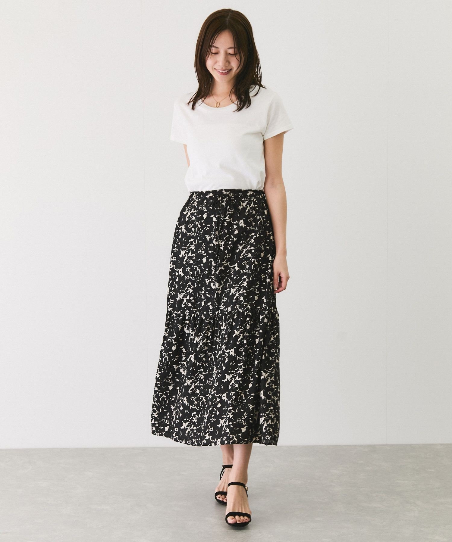 JAYRO 単色プリントティアードスカート ジャイロ スカート その他のスカート ベージュ ブラック【送料無料】