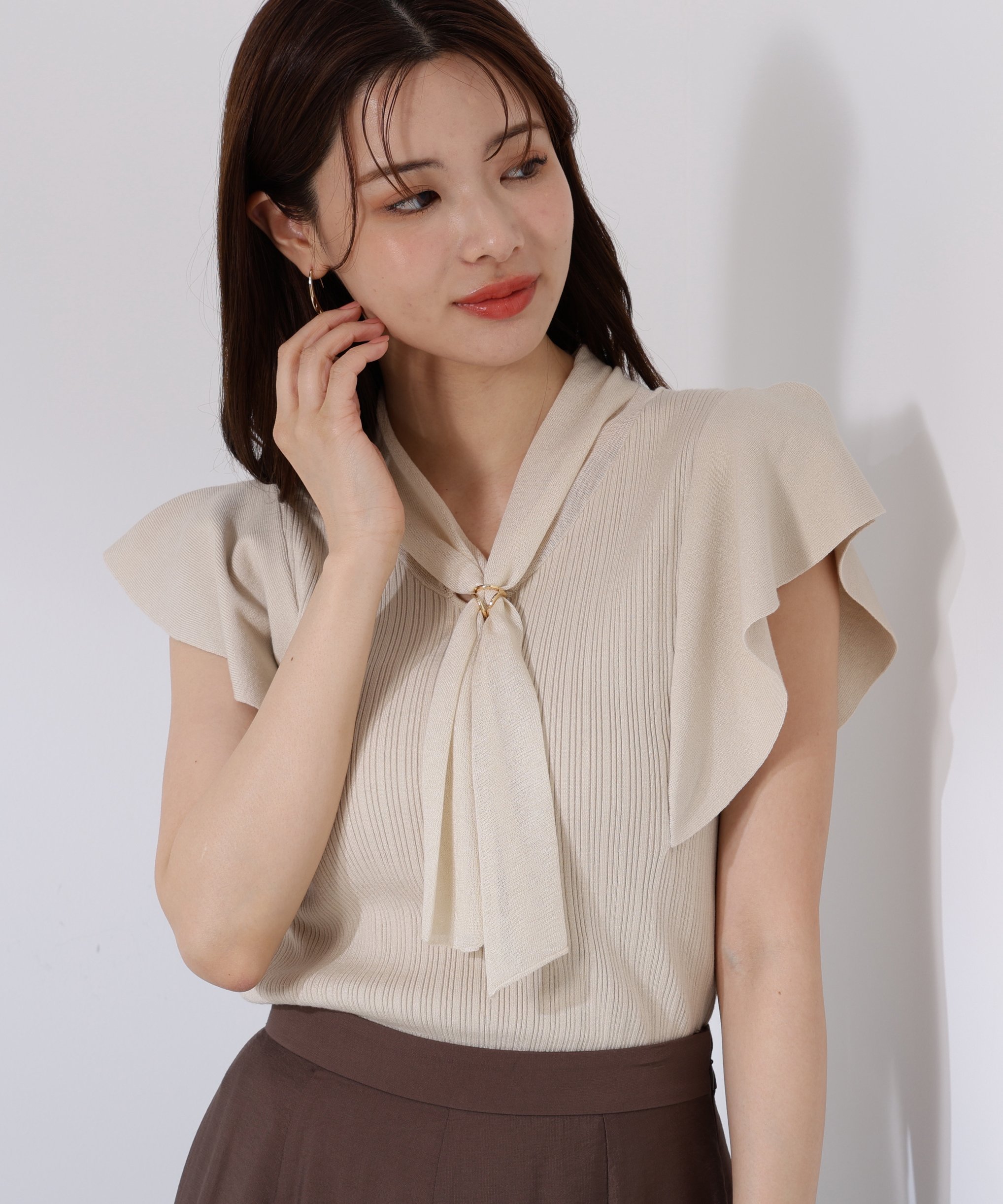 PROPORTION BODY DRESSING 2wayタイ付きニット プロポーションボディドレッシング トップス ニット ホワイト ブラウン ブルー ブラック【送料無料】