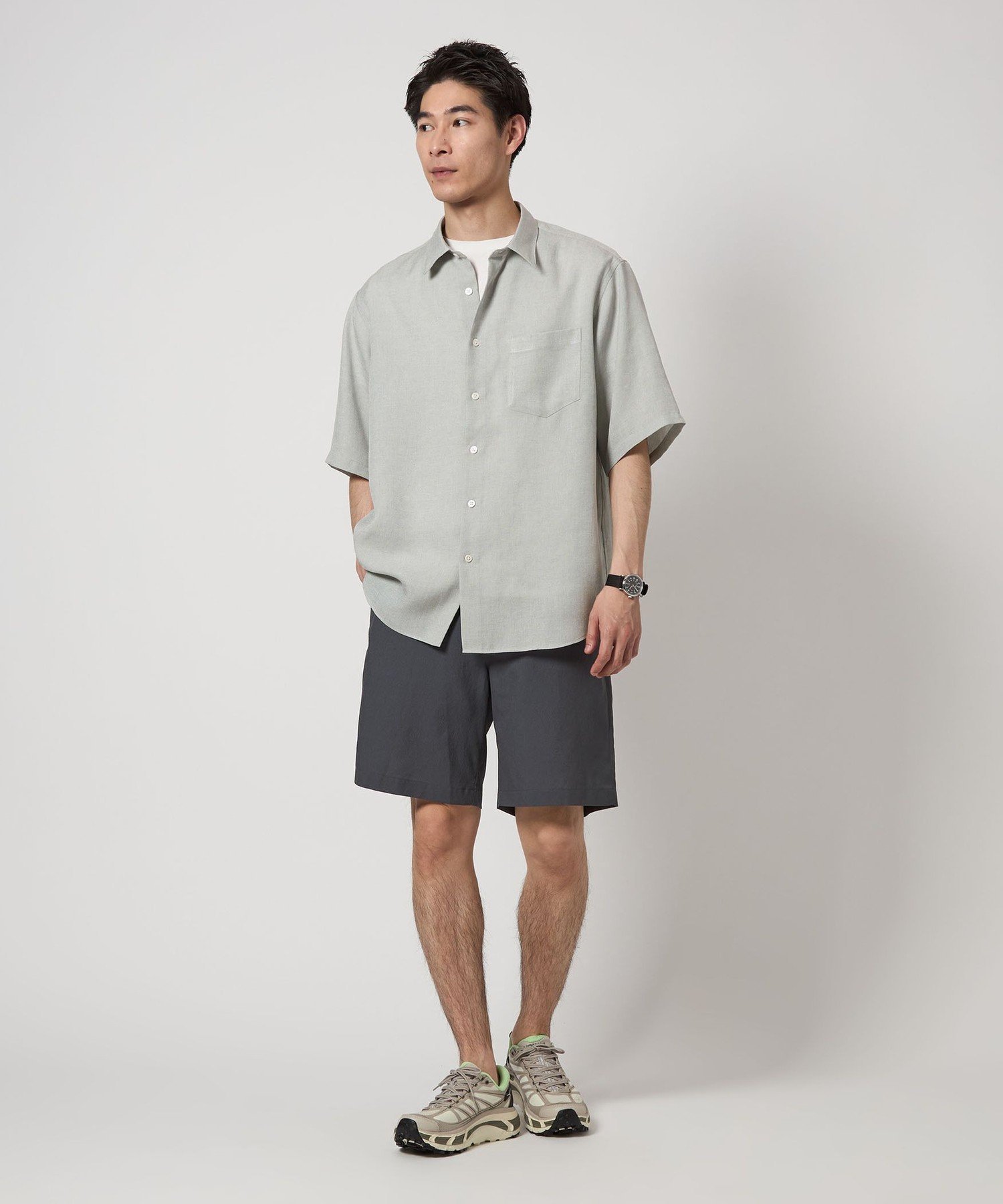 UNITED ARROWS green label relaxing トリアセテート ポリエステル ジャストルーズ シャツ ユナイテッドアローズ グリーンレーベルリラクシング トップス シャツ・ブラウス グレー ブラウン グリーン【送料無料】