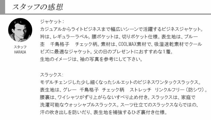 セットアップ 上下サイズ組み合わせ自由 テーラードジャケット 紺 ブルー杢 千鳥格子 クールマックス & グレー 千鳥格子 チェック ストレッチ リンクルフリー スラックス 春夏 秋 ジャケスラ ジャケパン 洗える パンツウォッシャブル 1M7901-32 1YDC01-33