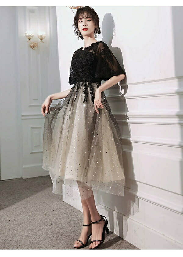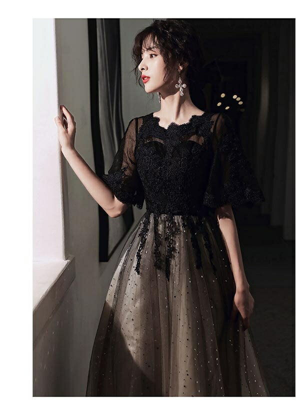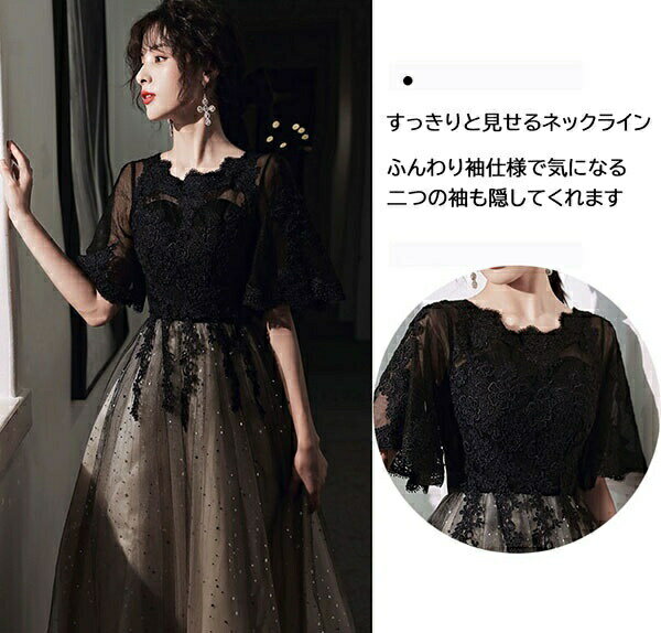新入荷 パーティードレス ロングドレス 演奏会 袖あり ドレス 五分袖 ラウンドネック バイカラー 透け感 成人式 同窓会 大人 ピアノ 発表会 Aライン 結婚式 ステージドレス 二次会 母親 ウエディング ハワイ ワンピース 上品 20代 30代 40代 dw261zezed4