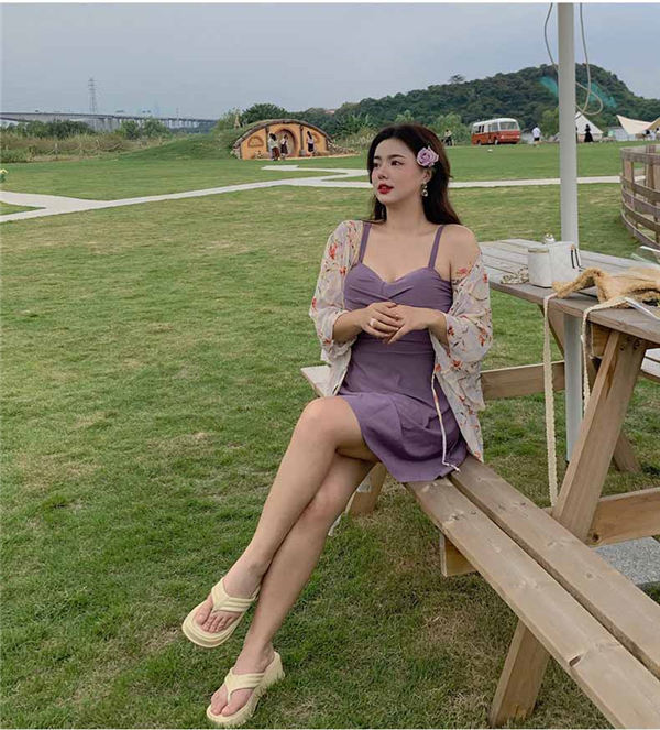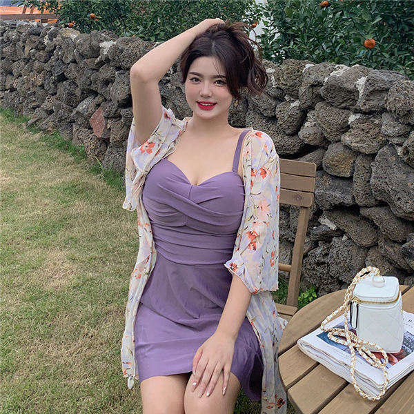 水着 大きいサイズ ぽっちゃり水着 レディース 体型カバー 大きいサイズ水着 ぽっちゃり ワンピース 花柄 スモック付 ママ 紫 プラスサイズ ワイヤー入り 露出控えめ 9号 11号 13号 15号 17号 19号 女性ぽっちゃり df559c0c0l9