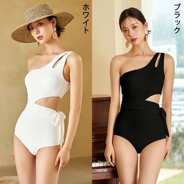 ワンショルダー 水着 カットアウト ローレグ レオタード レディース 韓国 ガール 可愛い 痩せ見え 体型カバー ぽっちゃり ビーチ プール 海 水泳 セクシー オトナ女子 かわいい 黒 ブラック ホワイト df196n1n1w9