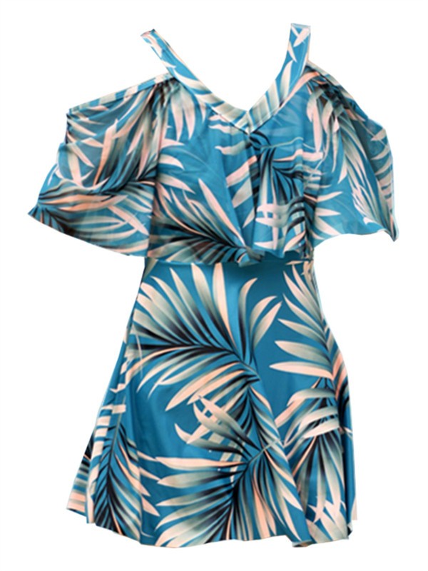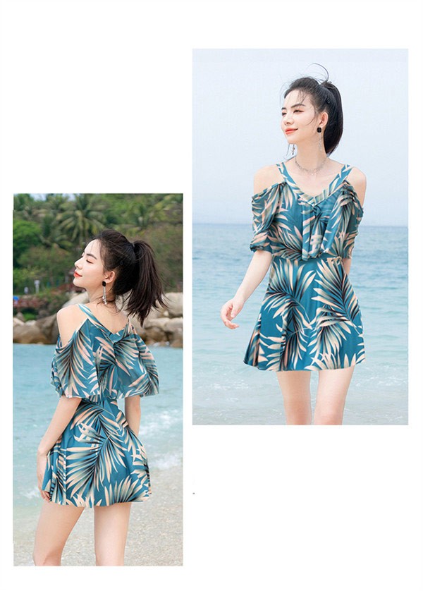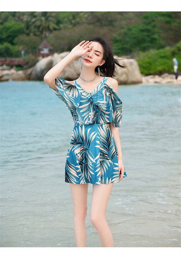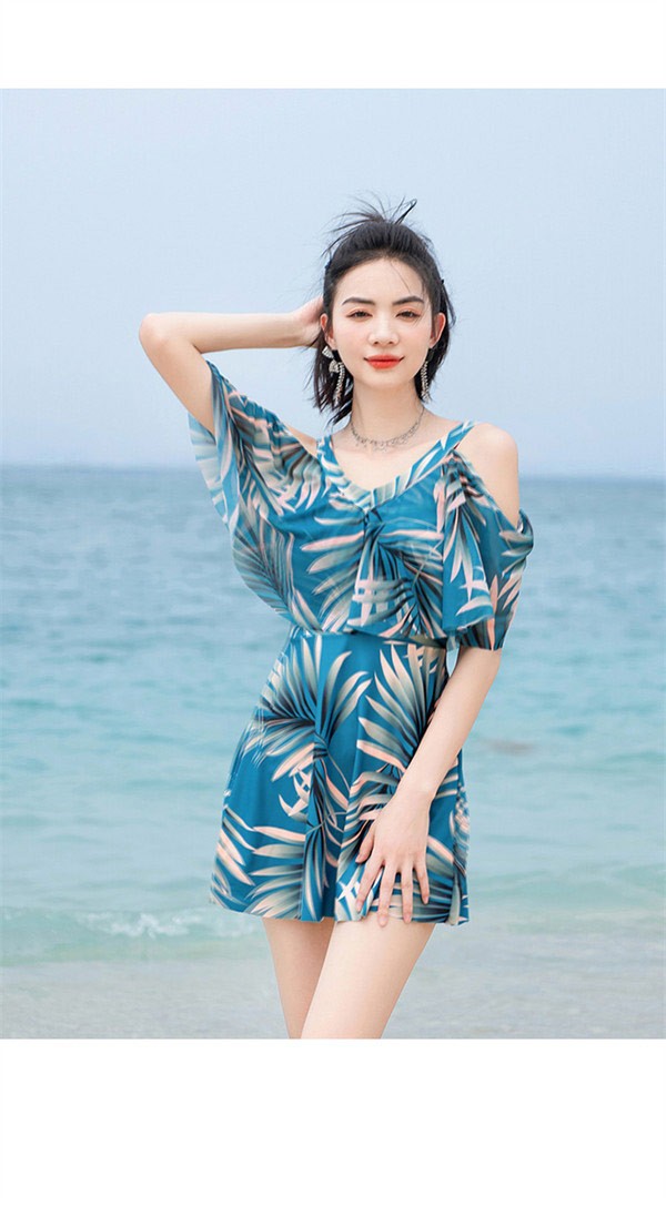 ワンピース水着 セクシー レディース 水着 半袖 体型カバー 2点セット 可愛い 痩せ見え リゾート 温泉 ビーチ プール 海 水泳 セパレート オトナ女子 かわいい おしゃれ 韓国風 ブルー df003c6c6zs