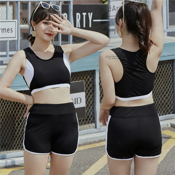 フィットネス水着 セパレート レディース 体型カバー 長袖 3点セット 多用途運動服 上下セット 速乾性 紫外線カット かわいい 小胸 盛れる 日焼け対策 パット入り 競泳練習用水着 大きいサイズ ブラック 黒 3L 4L 5L