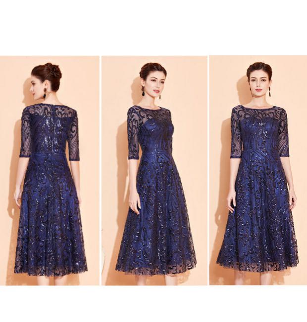 演奏会 ドレス 大人 ピアノ 発表会 演奏会用ドレス 演奏会ドレス パーティードレス イブニングドレス ミディ丈ドレス カラオケドレス ネイビー ワインレッド 結婚式・2次会・お呼ばれ・食事会 七分袖 ネイビー 5XLミセス 合唱 披露宴