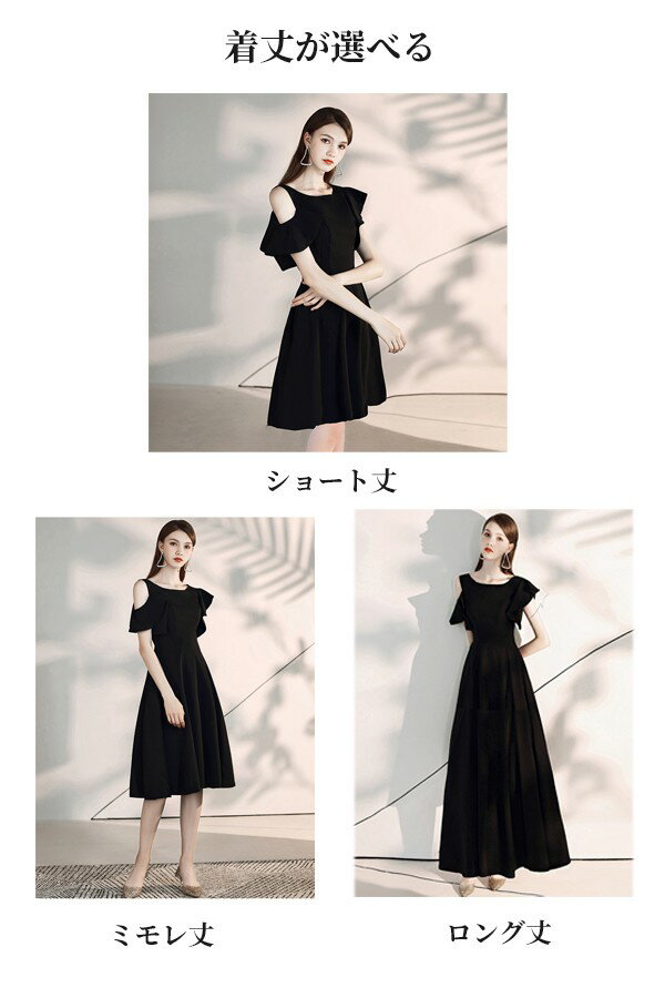 ロングドレス 演奏会 ドレス 大人 ピアノ 発表会 演奏会用ドレス 演奏会ドレス パーティードレス 着丈選択可 黒 ショート丈 肩出し ミモレ丈ドレス 結婚式 ワンピース フォーマルドレス イブニングドレス 20代 30代 40代 大きめ 成人式 同窓会 お呼ばれ ブラック