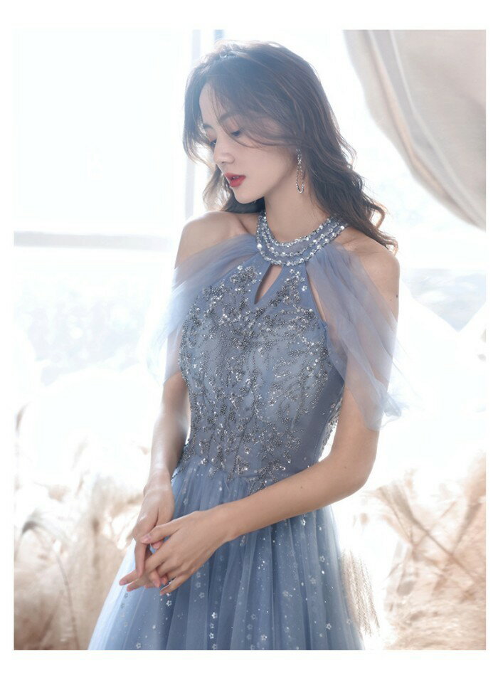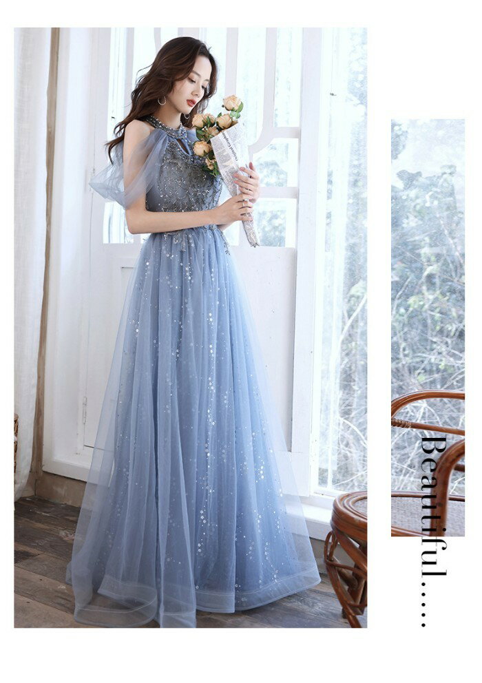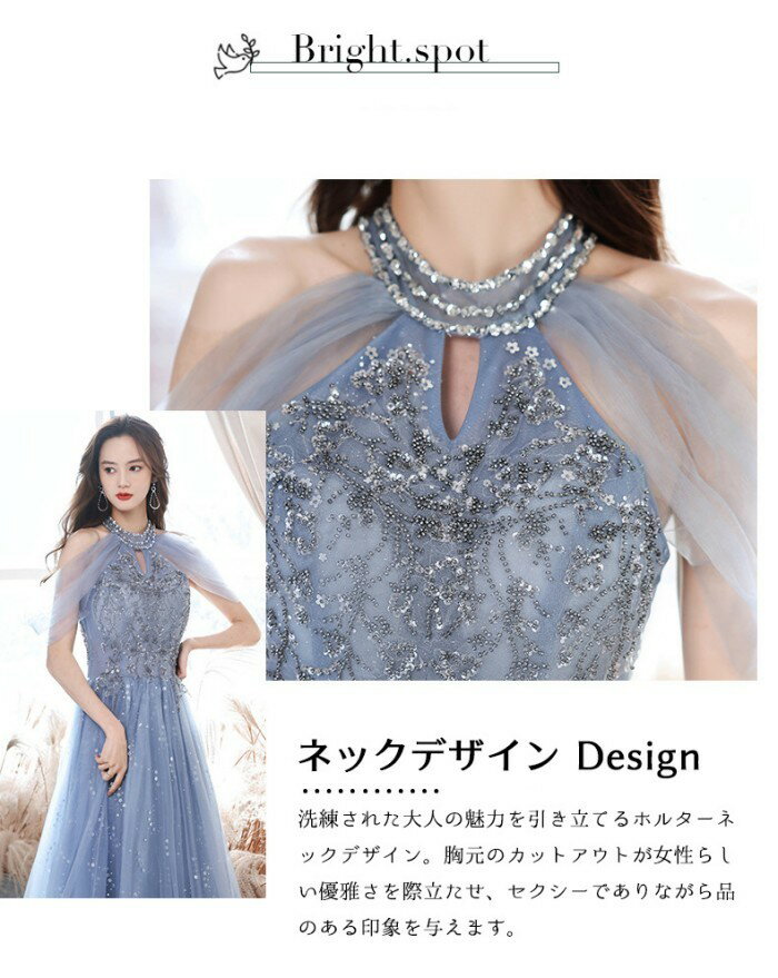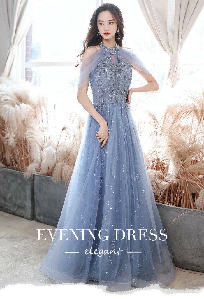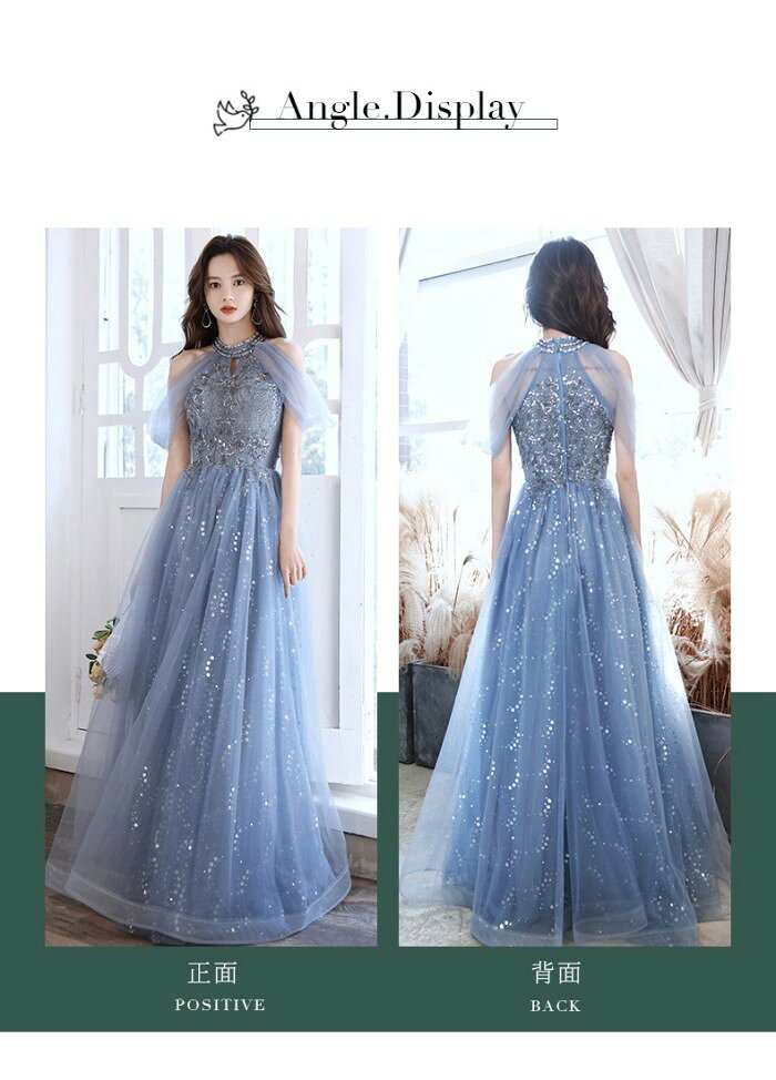 ロングドレス 演奏会 ドレス 大人 ピアノ 発表会 演奏会用ドレス 演奏会ドレス パーティードレス ピアノ発表会 ライトブルー 浅い青 結婚式 ノースリーブ ファスナー ホルターネック ウェディングドレス ウエディング Aライン イベント XS S M L XL 2XL dc032x1x1x0