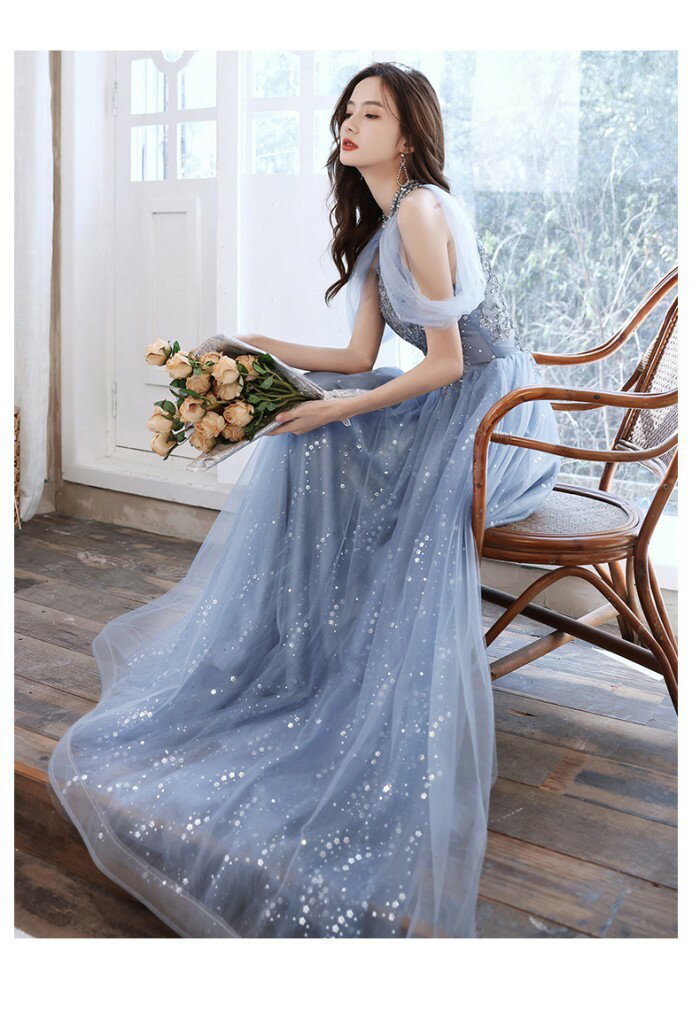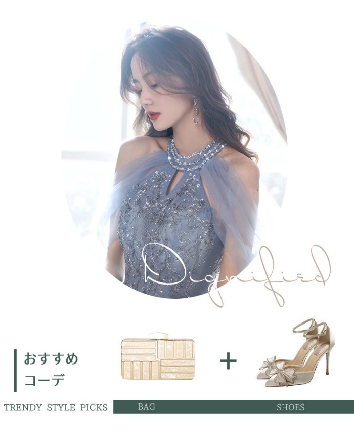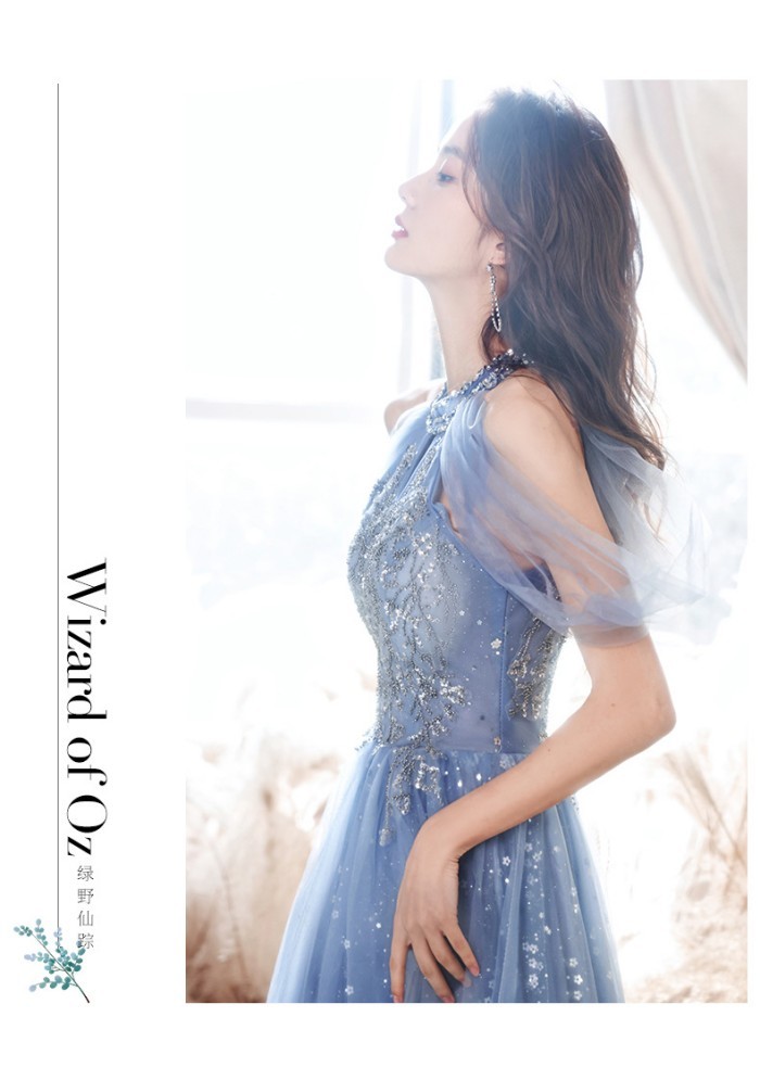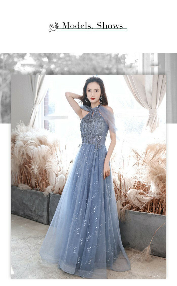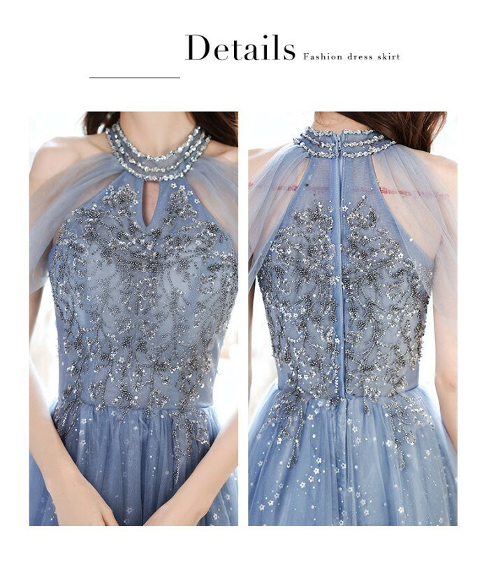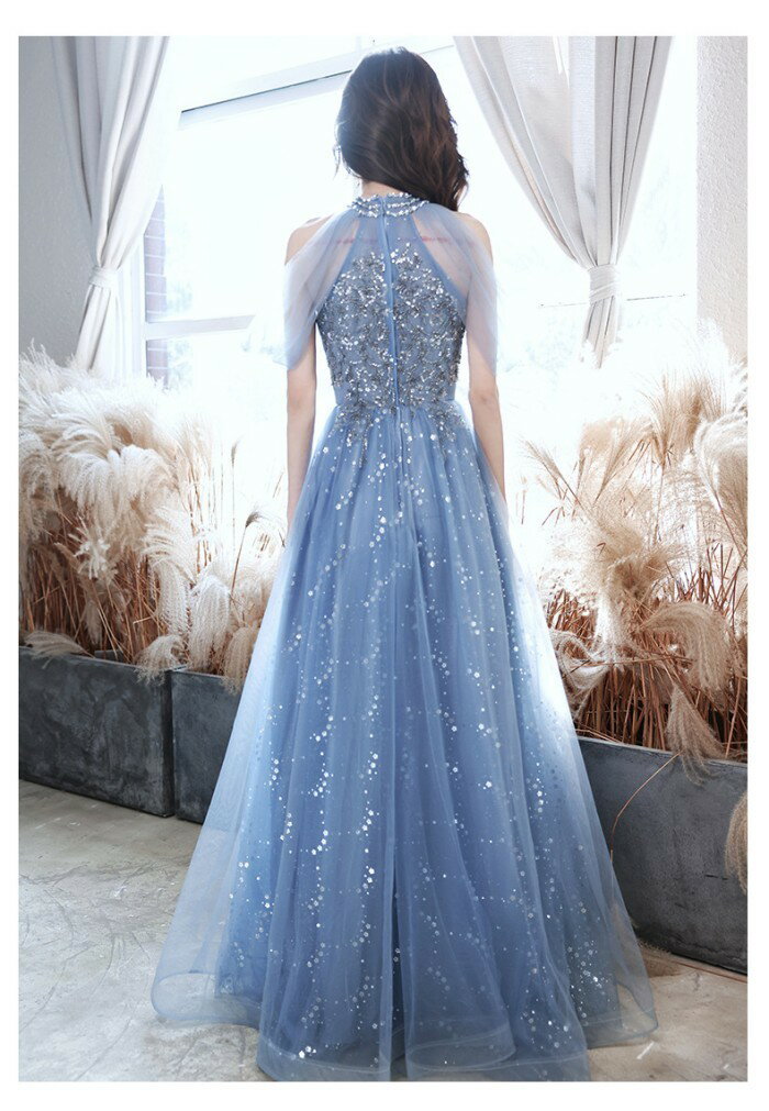 ロングドレス 演奏会 ドレス 大人 ピアノ 発表会 演奏会用ドレス 演奏会ドレス パーティードレス ピアノ発表会 ライトブルー 浅い青 結婚式 ノースリーブ ファスナー ホルターネック ウェディングドレス ウエディング Aライン イベント XS S M L XL 2XL dc032x1x1x0