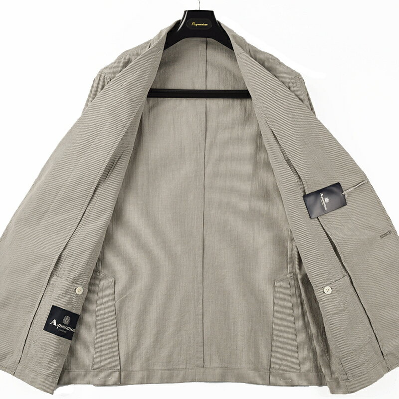 ◆Aquascutum アクアスキュータム◆70%OFF 春夏モデル 定価 93,500円 日本製 綿麻 ストライプジャケット ベージュ(大きいサイズ・キングサイズ・ビッグサイズ) メンズジャケット ビジネス カジュアル おしゃれ